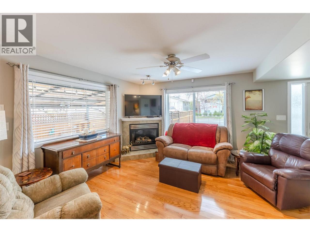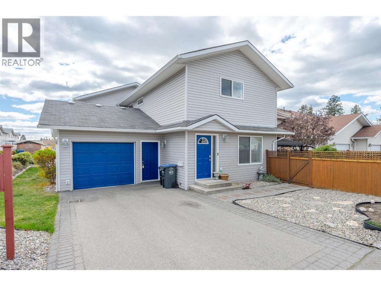 Spacious open concept, 2 bedroom, 3 bathroom, with den townhouse in central location. The main living areas are hardwood floors and vinyl plank upstairs in the bedrooms. Kitchen open to the dining and living room with gas fireplace and patio doors out onto a beautiful space. Fully fenced yard with stamped concrete patio, gas BBQ. Bedrooms and office room or hobby space on the upper floor, generous master suite, 3 piece bath and walk-in closet, 2nd bedroom, main bath (4pc), Open finished basement perfect for a family room. Large single-plus garage, A/C , Central to all shopping, , hospital, highway access, schools, downtown Penticton and popular north end waterfront. Dogs and cats allowed and no age restrictions. (id:6769)