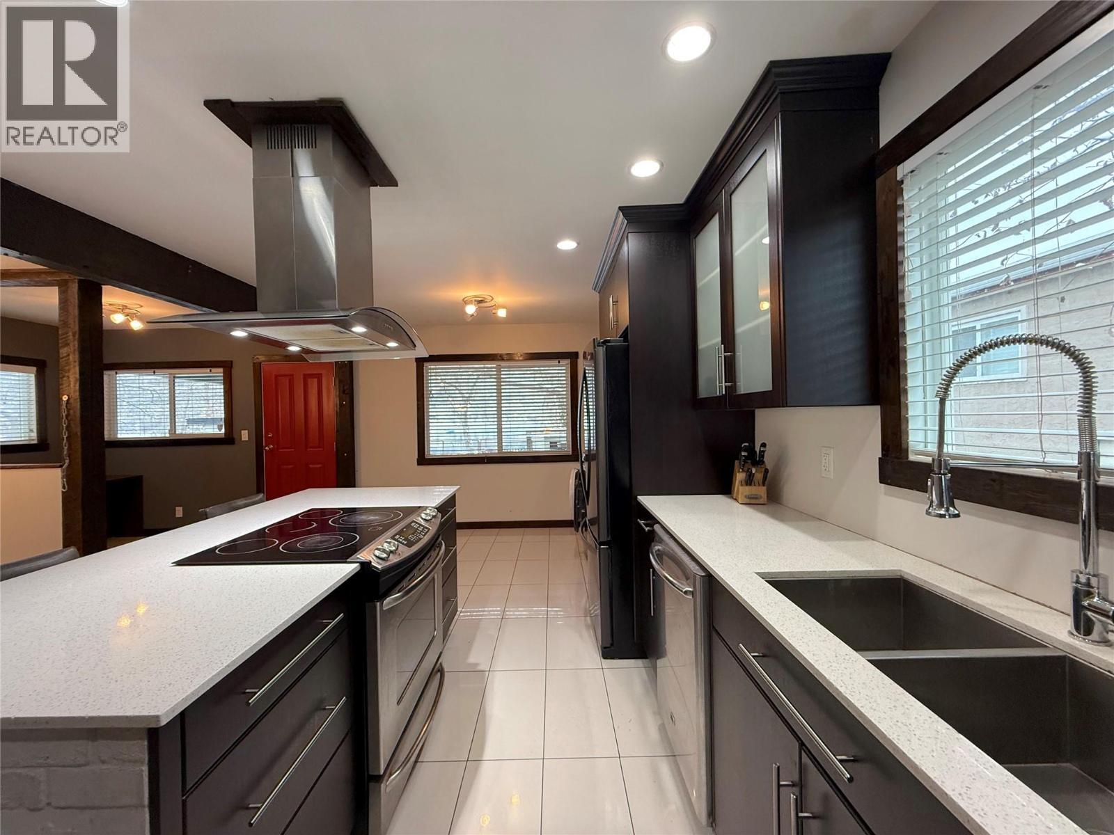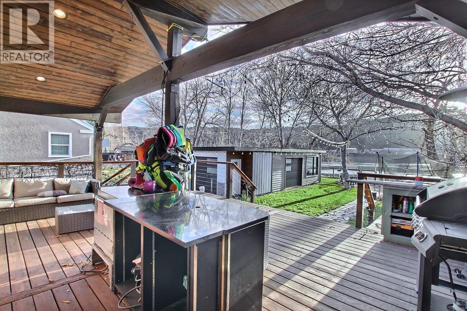 This riverfront property is located just minutes from downtown on trendy Royal Ave. With both front and back decks providing additional living space, the main floor plays host to nearly 1800sf. Inside, there are 3 bedrooms on the main floor with an updated kitchen featuring stainless steel appliances, under-mount sink with garburator, quartz counter tops, brick island, open concept floor plan with a 20x20 deck (10x20 covered with T&G vaulted ceilings). Loads of character with the barn wood feature wall, barn door, original brick work along with the post & beams. The renovated 1 bedroom basement suite includes sound proof insulations, hardwood floors, custom bench seating, paint, electrical & large open concept layout, updated 4pc bathroom with heated tile and urinal for the boys! Other features & highlights include underground sprinklers, updated heat pump, furnace, hot water tank, new dryer, electrical panel upgrade to 200 amp service, all new plumbing & electrical. 14 x 36 detached shop, updated exterior paint, gable ends and gutters, dock, wired for a hot tub. Separate laundry up / down. Previously renting for 6K per month, this is a great income property or family home. measurements approx. buyer to verify if important. (id:6769)