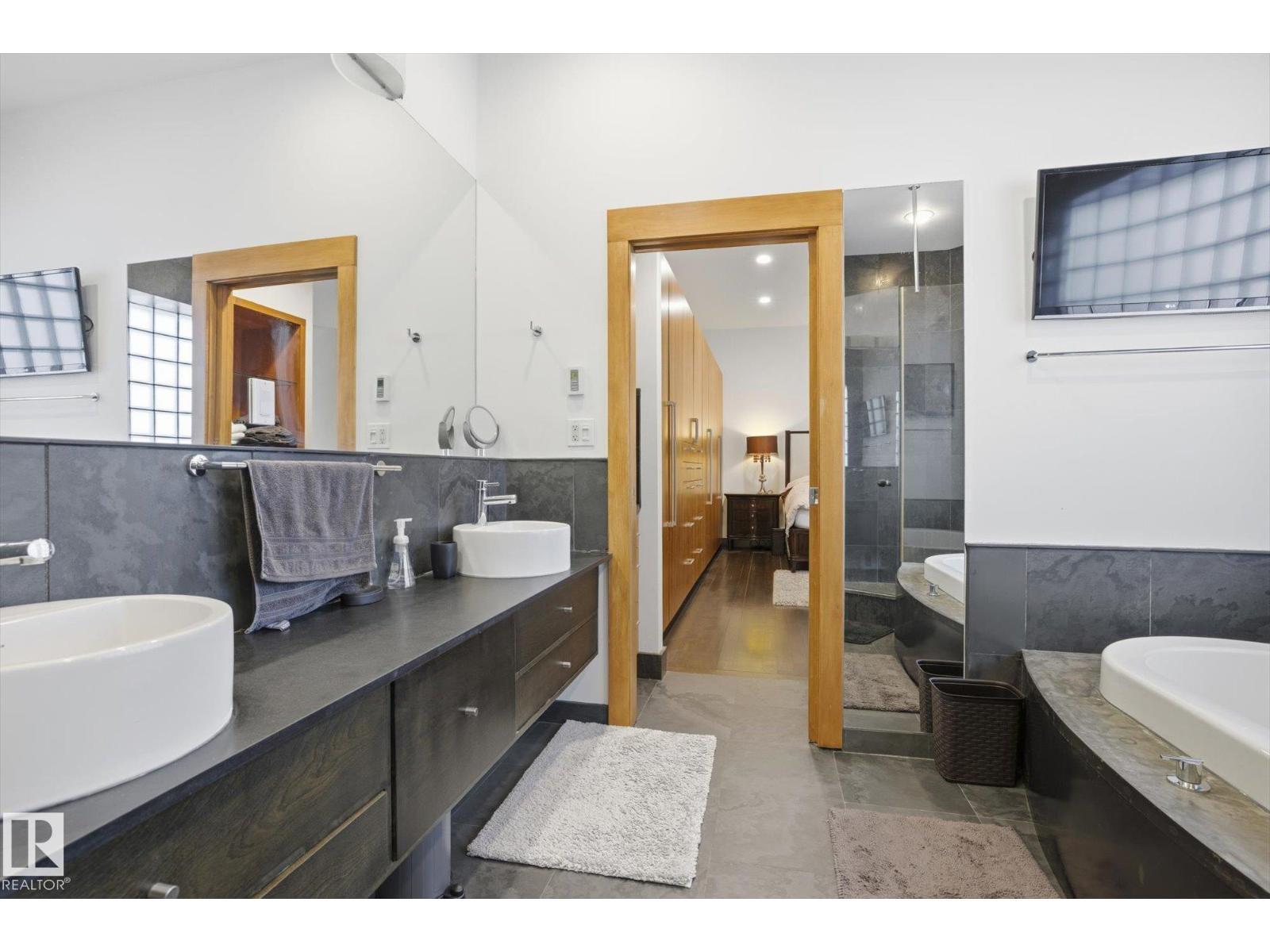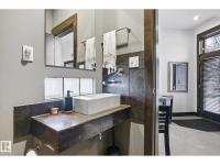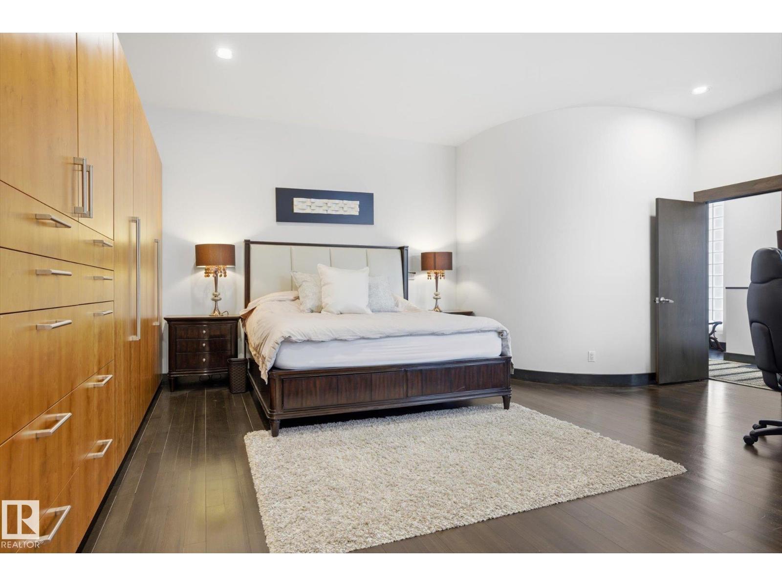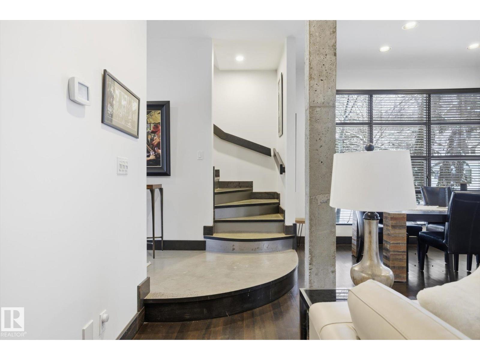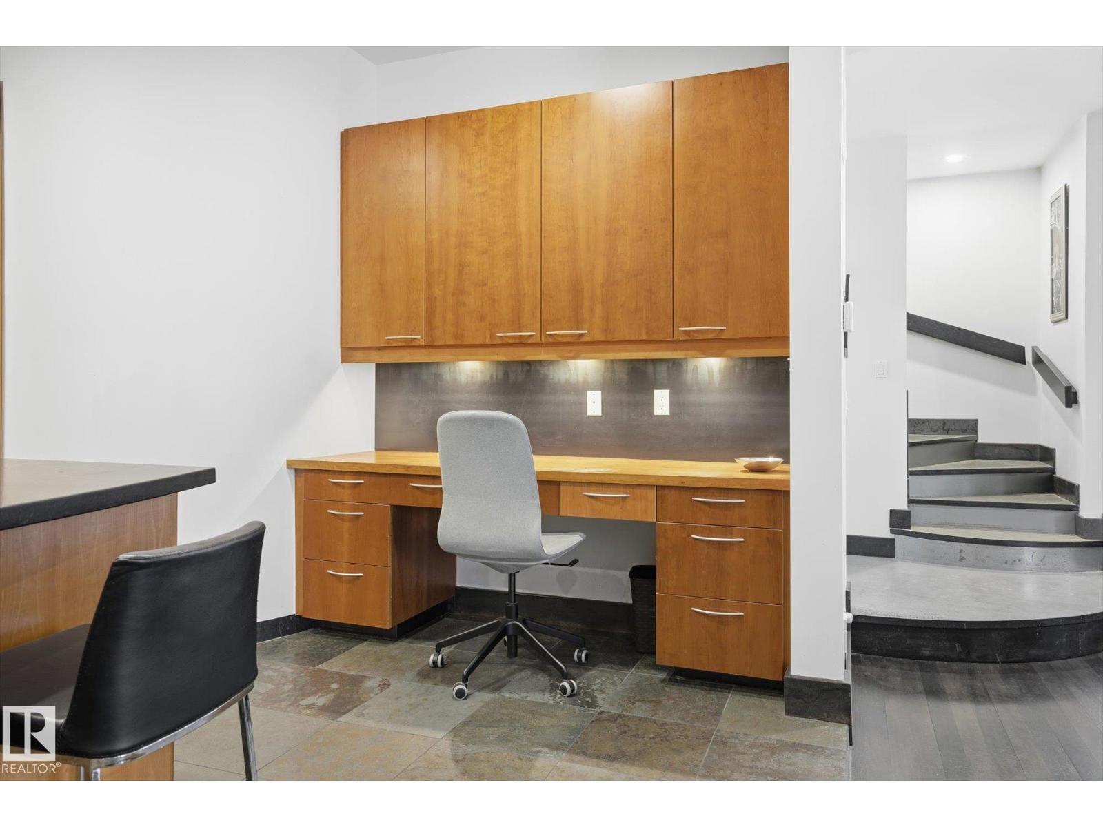 Modern, Architecturally designed two-storey home, ideally located within steps to Mill Creek Ravine. This impeccably built residence offers 2 bedrooms and 2.5 baths, with 10' ceilings on the main level and striking concrete and steel accents throughout. Features include triple-glazed windows, in-floor heating, custom cabinetry, central A/C, and luxurious finishes. The main floor showcases an open-concept w. light-filled spaces. The chef’s kitchen has custom cabinetry, granite countertops, a massive island, and top-of-the-line appliances, including a built-in Miele coffee machine. The great room features a f/p and patio doors opening to the yard, complemented by a large dining area and stunning south- and east-facing windows. The upper level is an executive retreat, highlighted by an expansive primary bedroom with custom cabinetry, a fireplace, and a spa-inspired ensuite. Garden doors lead to a private rooftop. Bsmt. w. bedroom, full bathroom. Under-drive dble garage w. heated driveway. (id:6769)