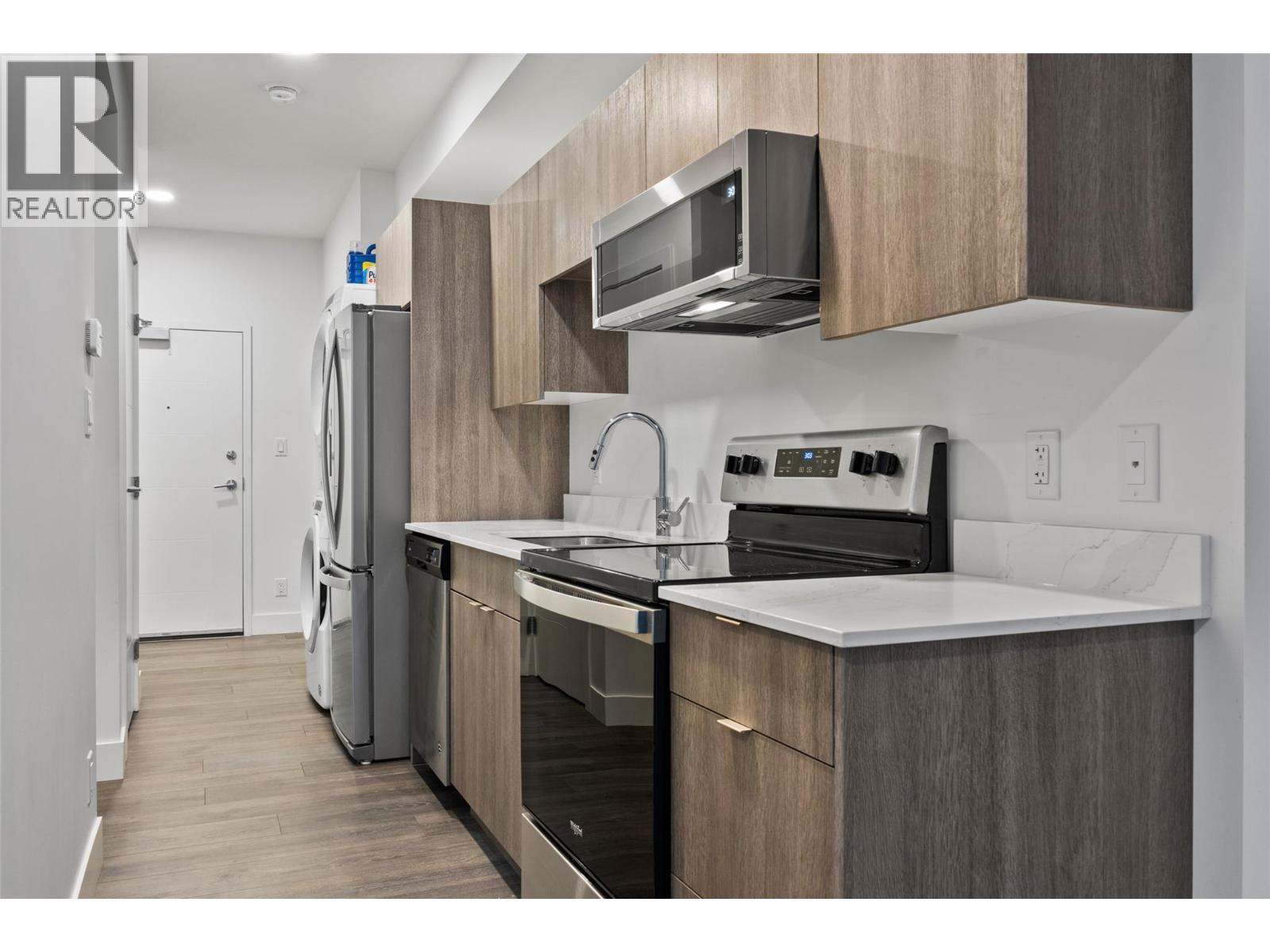 Welcome to The Lightwell, a modern concrete building in the heart of downtown Kamloops. This stylish 1 bedroom, 1 bathroom condo offers 506 sq ft of thoughtfully designed living space with contemporary finishes throughout. The open-concept layout features a sleek kitchen with stainless steel appliances, modern cabinetry, and efficient use of space—perfect for urban living. Large windows and a private balcony overlook the building’s lightwell, providing natural light and a quiet, sheltered outlook. Additional features include in-suite laundry, a convenient same-floor storage unit & 1 secure underground parking stall. Residents also enjoy access to a common rooftop patio, ideal for relaxing or entertaining while taking in the city atmosphere. Located steps from restaurants, shopping, transit, and entertainment, this condo is an excellent opportunity for first-time buyers, professionals, or investors seeking downtown living at its best. (id:6769)