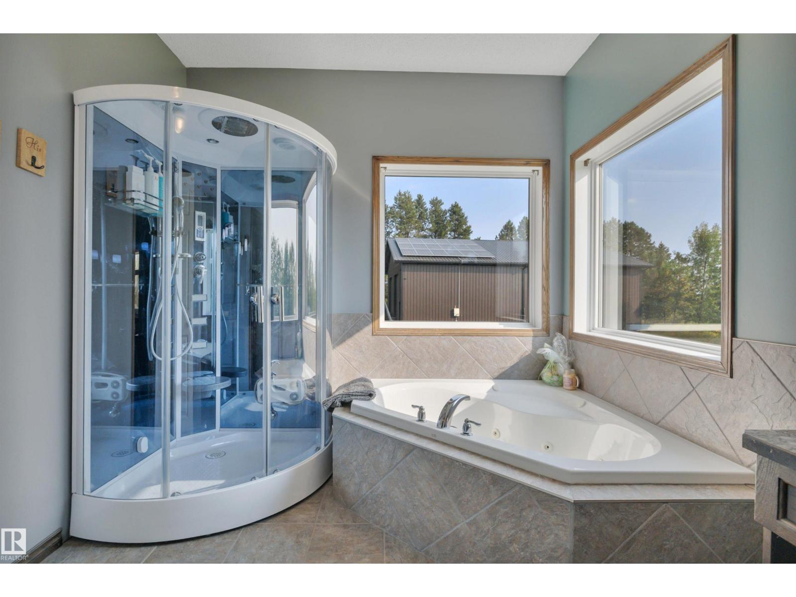 BEAUTIFULLY PRESENTED! 50' x 60' SHOP! TREED & PRIVATE! This 1773 sq ft 5 bed + 2 den, 3 bathroom raised bungalow on 4.13 acres out of subdivision is turnkey & only minutes to town! Feat: new shop w/ 14'x14' doors & solar panels, A/C, in floor basement heating, 9' ceilings, covered sunroom / deck, powered shed, custom grain bin bar & firepit space, & more! Your entryway leads into the large living room w/ chic woodgrain feature wall & gas fireplace; perfect spot for family visiting. Massive farmhouse kitchen w/ granite countertops, massive fridge / freezer combo, new oven, & spacious eat in dining. 3 bedrooms up, including the primary bed w/ walk in closet & 4 pce bath. Main floor laundry & 4 pce bath. The basement is fully finished, w/ rec room w/ pool table & wet bar, theatre room for movie night, 2 massive bedrooms, 3 pce bath w/ infared sauna. 2 dens, & tons of storage room! The yard is incredible! Fully treed perimeter, landscaped; pride of ownership is evident. A must see property! (id:6769)