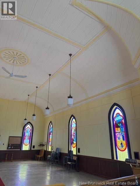 A staple in our community , this beautiful church building was built around 1953 & has been veey well maintained throughout the years. From it's beautful extererior appearance to it's amzing interior this building is sure to impress you. The main floor offers incredible high ceilings , large open space boasting beautiful flowing ceilings to it's 11 large impressive gleaming stained glass windows. The lower level offers an open room to host events or meetings aswell plus it has a full kitchen with serving windows. There are 2 washrooms on this lower level. 200 amp curcuit breakers & is heated with an air to air heat pump. This building is wheelchair accessable . This property is a corner lot in a beautiful neighbourhood & has a paved parking lot with 10 parking spaces & lots of public parking along the street. New well put in just a few years ago. Zoning is community use. (id:6769)