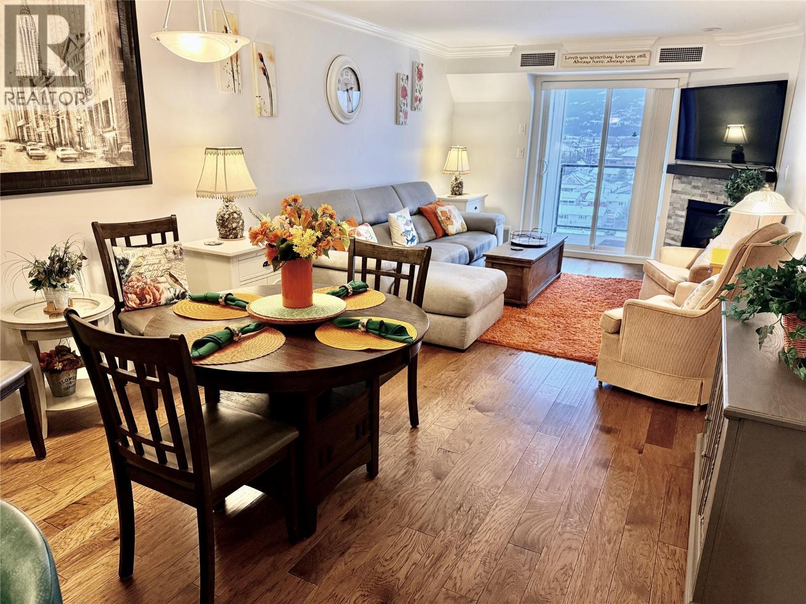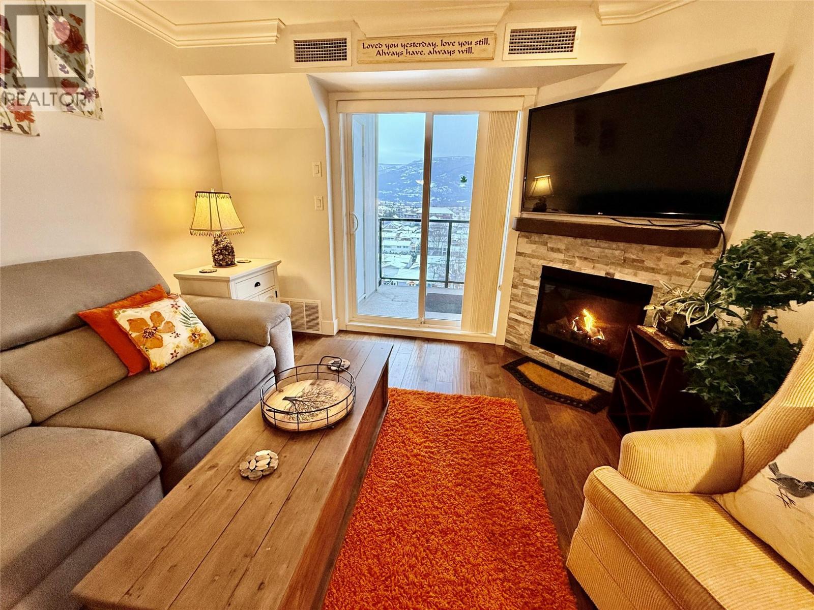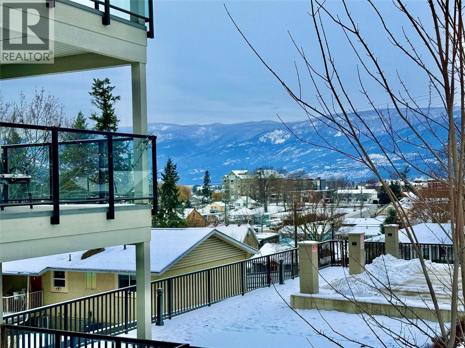 *WELCOME TO IMPERIAL HEIGHTS* one of Salmon Arm's most desirable 55+ strata complexes. This impressive top floor unit is quiet and move-in ready, featuring panoramic views of Mount Ida, Fly Hills, and downtown Salmon Arm - imagine watching the sunset from your deck each evening. This home checks all the boxes for convenient and secure living, with close proximity to downtown and several parks and trails. Quality finishings are featured throughout, including full height quartz countertops, hickory hardwood flooring, crown mouldings, stainless steel appliances and newer bedroom carpeting. Both the primary and second bedrooms are spacious enough for king/queen beds and have west facing mountain views. Secure underground parking with available guest and extra parking on site; the property is also fully landscaped with heated concrete sidewalk and front entrance for resident convenience and safety. Pets allowed with restrictions. **Please click Multimedia icon under listing photos for virtual 3D tour** (id:6769)