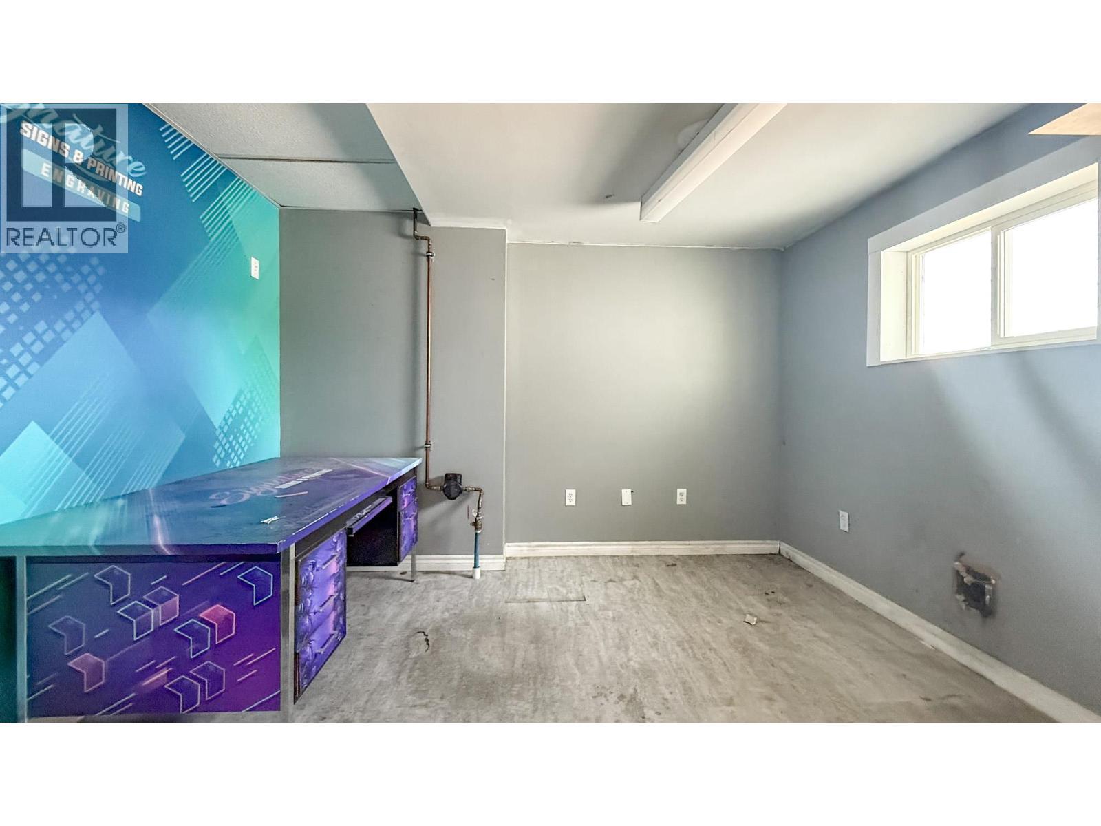 High-profile, commercial end-cap of approximately 1,942 SF available for lease at the foot of Overlanders Bridge in Kamloops. Single storey unit that is ideal for service commercial uses. Unit configuration includes a small entry showroom, reception area, office space and warehouse/shopspace. Main entrance to the unit is to the north with some frontage along Victoria St W. Grade level overhead door located near the middle of the unit beside a secondary entrance into the warehouse space. Large parking area adjacent to the unit with 7 dedicated parking stalls. Outstanding opportunity for highly visible fascia signage on the east side of the unit. Flexible C4 - Service Commercial zoning that allows a multitude of commercial uses. (id:6769)