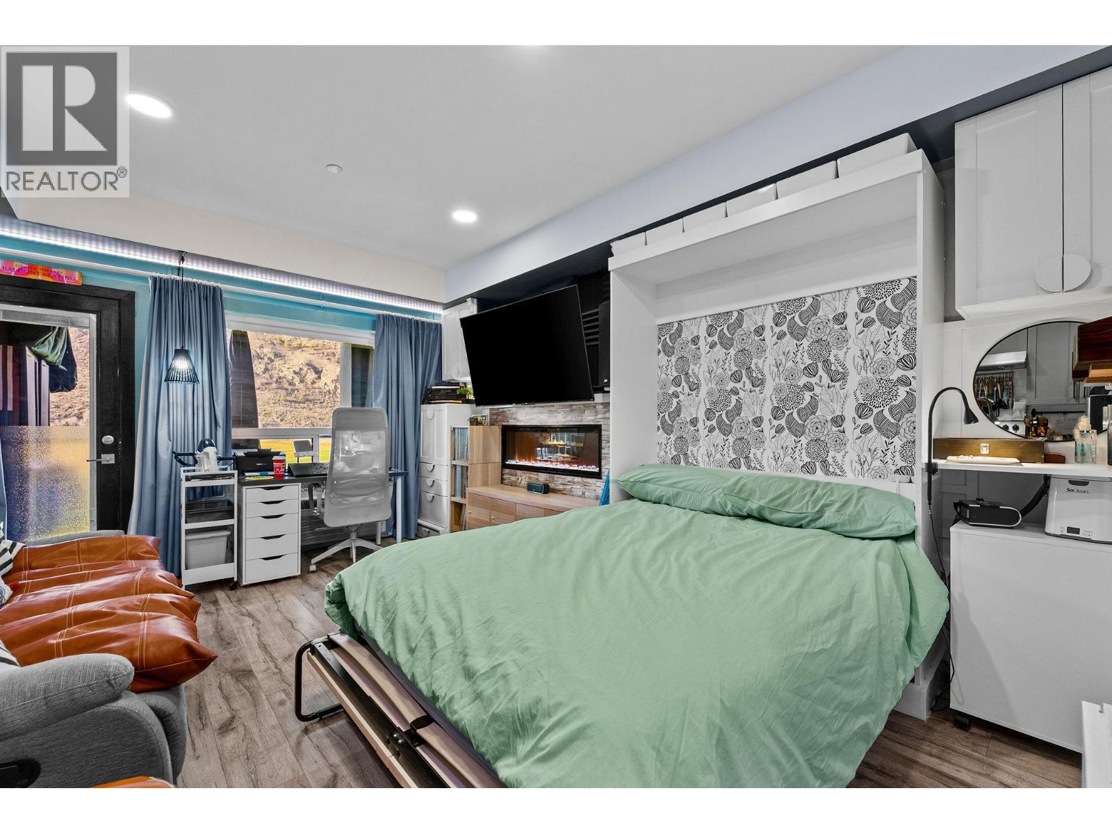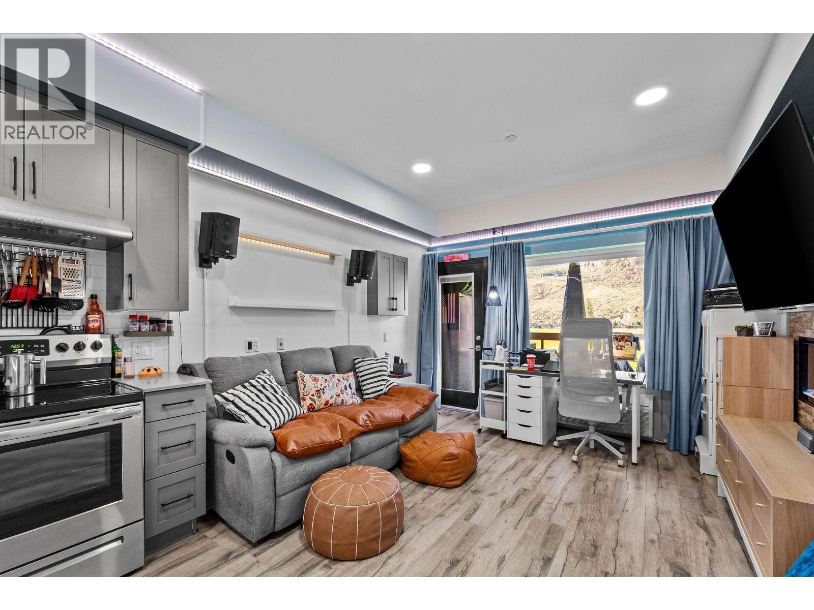 Freshly painted and featuring thousands of dollars in custom built-ins, including a top-of-the-line Murphy bed, this thoughtfully designed studio offers exceptional functionality and style. Welcome to Fairway10, the newest and most exciting condo development at The Dunes Golf Course, nestled in the tranquil community of Westsyde. This west-facing studio is the best-priced unit in the building, making it an outstanding opportunity for first-time buyers or a smart addition to an investment portfolio. Designed with both form and function in mind, the open floor plan maximizes every square foot without sacrificing comfort. A modern colour palette, stainless steel appliances, tiled backsplash, and a sleek fireplace creates a contemporary feel throughout the space. Step outside to the expansive covered deck, where you’ll enjoy privacy and inspiring, unobstructed views of the golf course and surrounding mountains—perfect for relaxing or entertaining. Additional features include two storage closets, in-suite laundry, air conditioning, window coverings, and one surface parking stall. The four-piece bathroom is finished with clean, modern details, completing the home’s polished and functional look. Fairway10 offers low-maintenance living with low strata fees and is both pet-friendly and rental-friendly, providing flexibility and peace of mind. (id:6769)