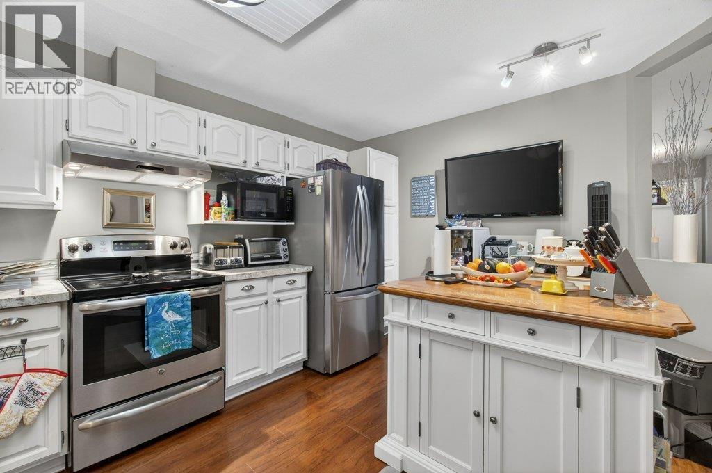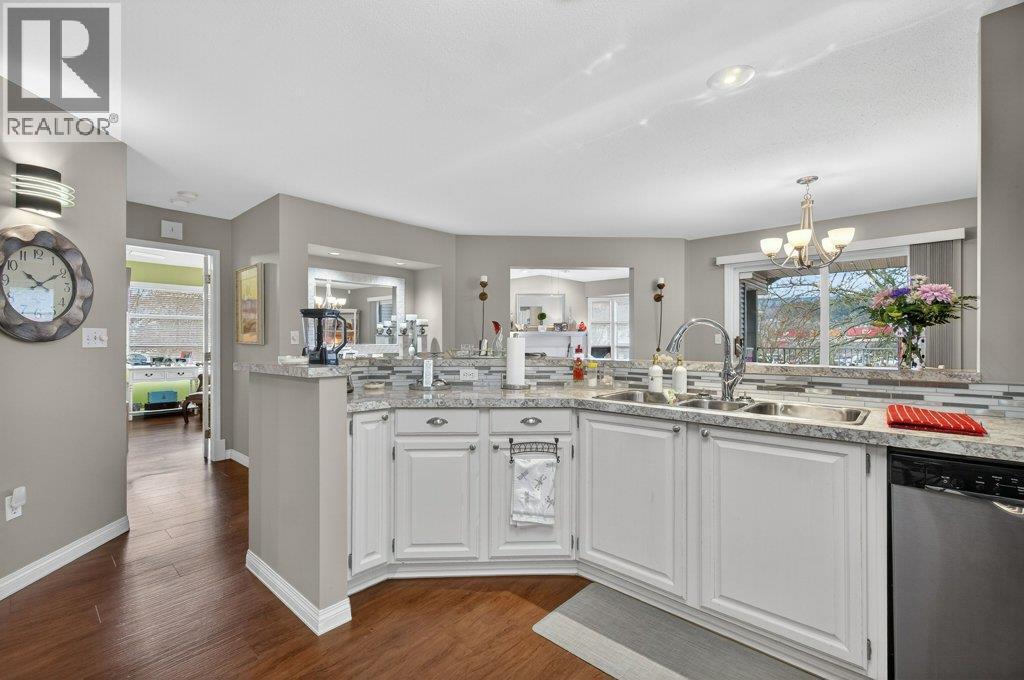 Welcome to Heron View, a quiet & well-maintained 55+ community offering a relaxed lifestyle in a central Salmon Arm location. This bright top-floor home offers 1,505 sq. ft. of thoughtfully designed living space with lake and mountain views. Vaulted ceilings, expansive windows, and a cozy fireplace create a warm and inviting living area, while the open dining space easily accommodates a full sized table and opens onto a balcony, perfect for enjoying morning sun and quiet surroundings. The home features 2 beds and 2 baths, including a spacious primary suite with walk-in closet, updated ensuite, & access to a second private balcony. This outdoor space offers the potential to be enclosed or converted into additional living space, such as expanding the primary bedroom - subject to strata approval. A standout feature is the double garage, providing excellent storage and workspace, along with additional storage room. Centrally located just minutes to the hospital, mall, shopping, dining, walking trails, & bird sanctuary, this move-in-ready home offers comfortable, low-maintenance living in a prime location. Features a spacious, updated kitchen, lots of cabinetry, updated appliances, sound-reducing vinyl plank flooring, In-suite laundry & central vacuum, updated hot water tank, baseboard heating & gas fireplace, security system,, chair lift available (optional inclusion) 2 balconies, one with storage closet, double garage with additional storage under stairs. (id:6769)