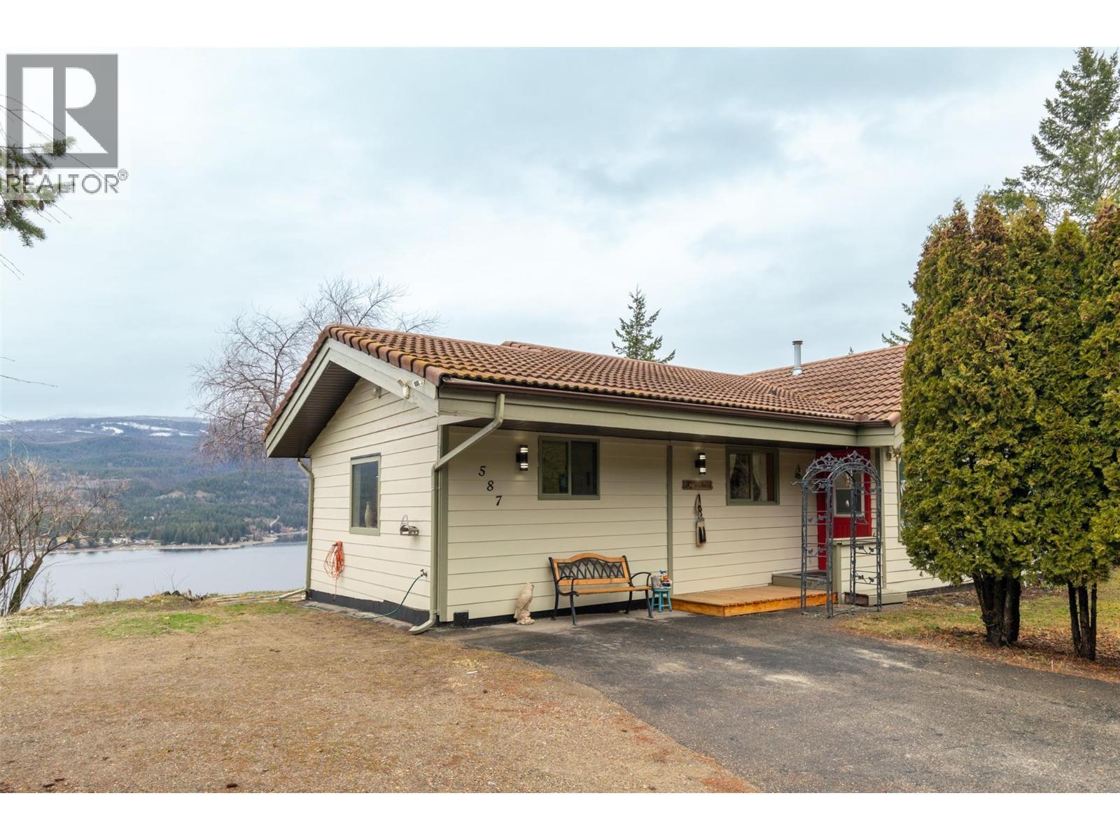 This is a great small acreage property that is move in ready, offering 2.43-acres that has spectacular views of the shimmering waters of the Shuswap Lake. Centrally located, just a short distance from Sorrento for your basic needs and less than an hour to Kamloops and a half hour to Salmon Arm. The owners just recently made Fire Smart improvements clearing many trees, that now allow for just about 180 degrees of beautiful unobstructed views of the lake. This unique property is across the highway from the water, giving it Foreshore Residential 2 zoning, allowing for a buoy and swim platform. Sit out and take in the sunsets from your Northwest exposed private deck overlooking the lake and mountains. Built in 1992, this custom one-level rancher is the perfect downsizer or starter home with 3 beds and 2 baths, an open-plan living and dining area. Room for a shop, flat parking, and plenty of room for a garden. Municipal water and natural gas with high efficiency forced air furnace adds to your comfort in this natural setting. Fruit trees and many unique plants adorn the property. Recent updates in 2024 include, fresh paint, kitchen counter tops, upgraded appliances and light fixtures, Vinyl Plank flooring in kitchen, dining room, 1 bedroom and both bathrooms, newly installed Pex plumbing, hot water tank, Hardie siding, deck and railings. Don't miss out on this wonderful opportunity to make this your new home. This place can be sold fully furnished if wanted. (id:6769)