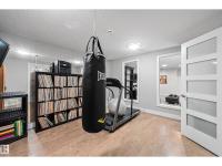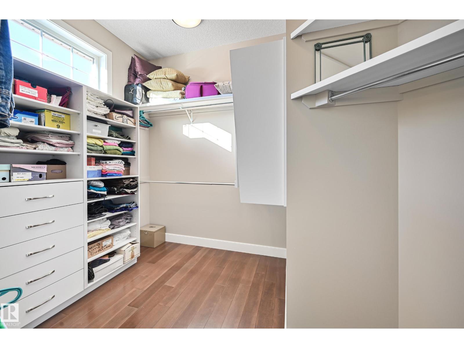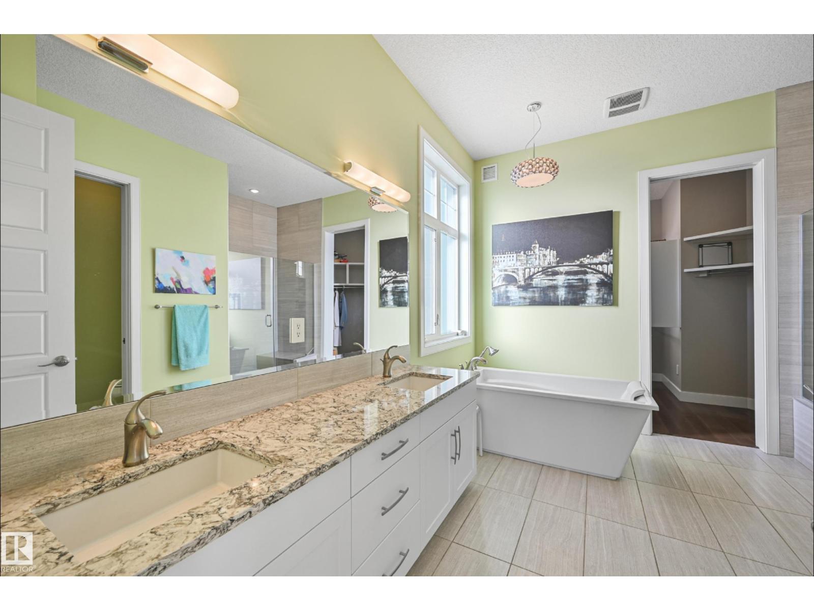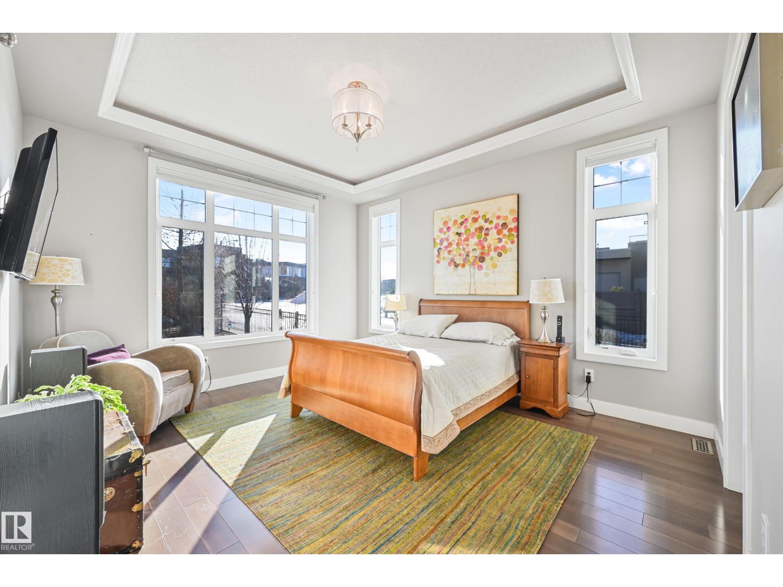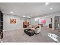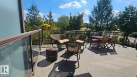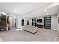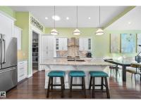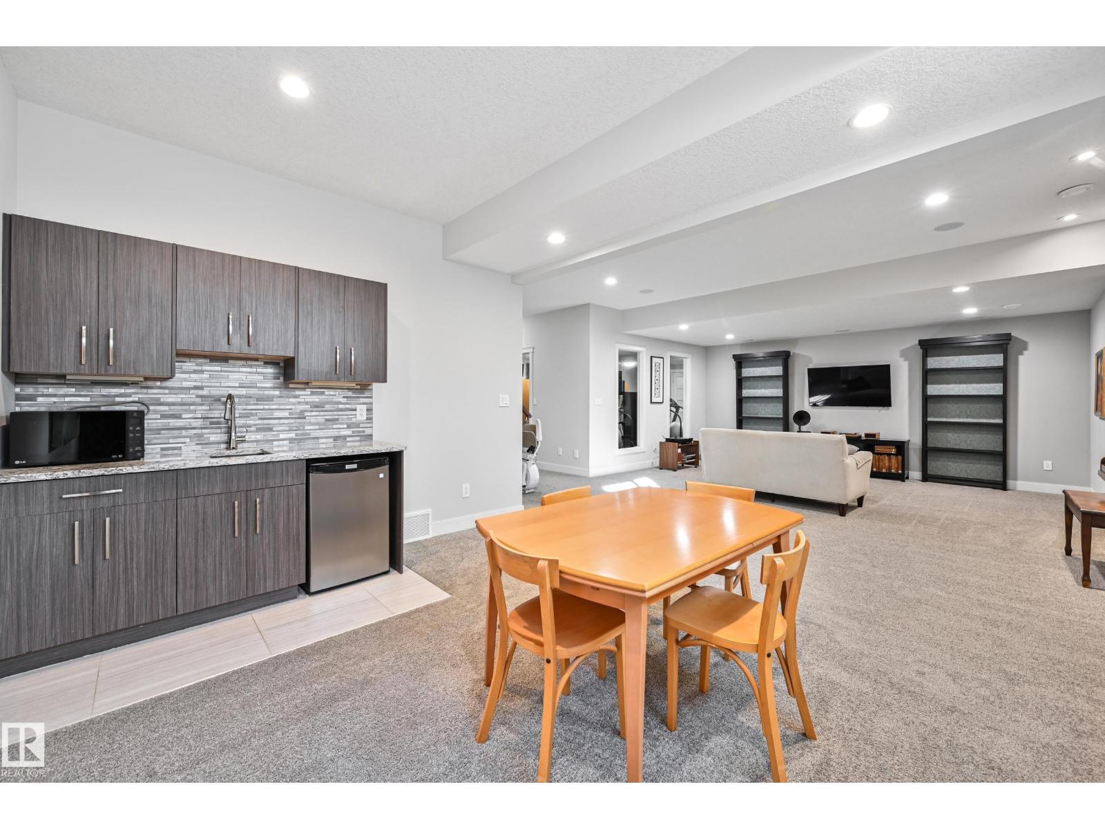 Highly sought after Cascades of Larch Park, backing ravine & fronting walking trails, ponds & park. Fully finished bungalow, offering approx 3300sf of living space w/3 living areas, 3 bedrooms +2 flex rooms. Gleaming hardwood greets you through an open floorplan & rays of natural light. This executive home features 9' ceilings, wainscoting, built-in speakers, upgraded mechanicals & in mint condition. Sunny west facing den is perfect for a home office/library. Great room highlights a stone surround fireplace & provides direct access to balcony/ravine views. Bright kitchen is equipped w/plenty of storage space, white maple shaker cabinets, S/S upgraded appliances, granite counters & walkthrough pantry. Spacious dining nook can accommodate extended dining. Large primary bedroom w/ample windows, 5pc ensuite & dressing room. Dual seating areas on recreation level, wet bar, gym/flex room, 2 bedrooms, 3pc bath is perfect for extended guest stays. Privately located, surrounded by nature & well maintained complex. (id:6769)