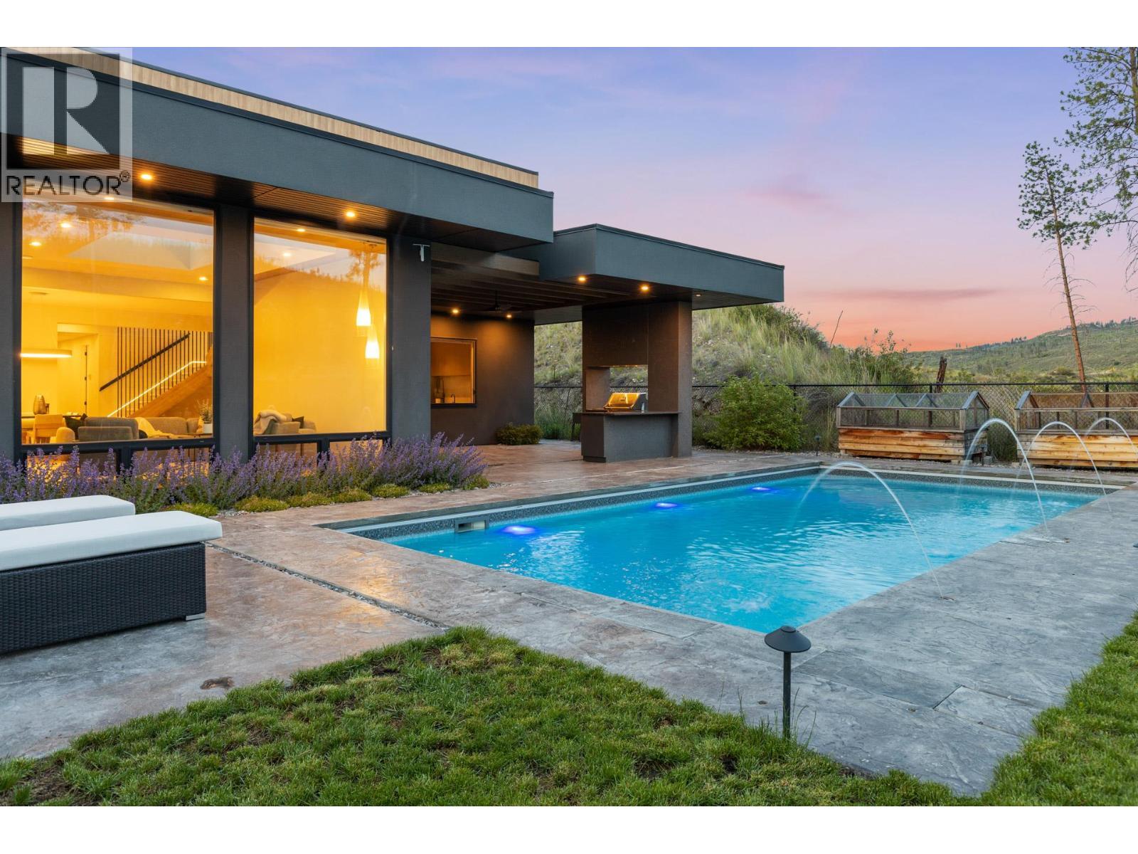 OPEN HOUSE SATURDAY 11AM-1PM. Welcome to 1297 Jack Smith Road in Kelowna’s Upper Mission at The Ponds! Custom built in 2021, this modern, contemporary 2 storey home backs onto nature and offers luxury living without GST. (This was previously the builders residence and is now VACANT.) The open-concept main floor features skylights, floor-to-ceiling windows, a sleek gas fireplace with LED accents, and a stylish kitchen with Dekton countertops, an induction cooktop, built-in oven, full sized fridge/freezer, optional live edge eating bar (can be removed) and pass-through window to the outdoor kitchen/BBQ area. The backyard is an entertainer's dream with a 16x32 saltwater pool, auto cover, and covered patio overlooking nature. Upstairs, the primary suite boasts a spa-like en-suite with a steam shower, soaker tub, heated towel rack, and walk-in closet. Three additional bedrooms, including one with an ensuite, provide plenty of space. Additional features include a heated garage with an 11-foot door, on-demand hot water, water softener, Factor sound system, security system, and solar panels. All this, just minutes from the new middle school and shopping center. This home is the perfect mix of style, comfort, and convenience! Click VIRTUAL TOUR link for a 3D walkthrough, all photos, video and downloadable floorplans. (id:6769)