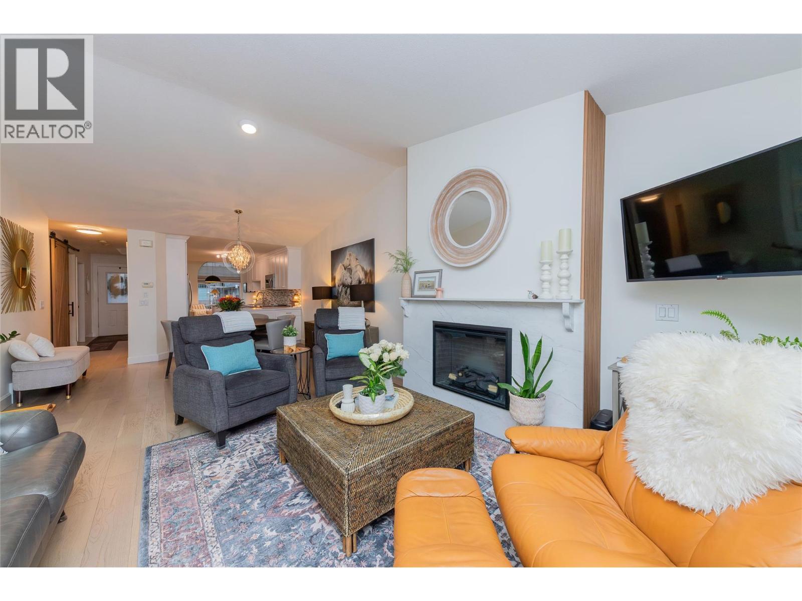 A special opportunity to seize! This fully updated, open-concept 3 bedroom + den, rancher-style townhouse, w/ fully finished basement feels like home. Located in well-maintained 55+ community offering excellent guest parking. The quality is in the finishing touches - from solid wood doors, custom feature walls, eng hw floors, custom tile and cabinetry - it must be seen to fully appreciate. The bright kitch has extra storage, backsplash, and s/s appliances, plus a convenient breakfast nook w/ large windows that create a warm atmosphere. The lvg room is highlighted by a quartz FP w/ wood feat wall and opens to a spacious patio w/ access to grassed area - perfect for enjoying without the upkeep. The main lvl is designed for easy living and incl laundry, 2 bdrms, incl primary suite w/ WI closet and ensuite. The stylish main bath and ensuite feat custom vanities and tile, and modern fixtures. Downstairs offers full ceiling height w/ a lrg fam room, 3rd bdrm, den or office, full bath, and storage - perfect for visiting family, hobbies, or flexible living space. Recent upgrades incl eng hw floors, paint and BB, wood interior doors and closet doors, and improved insul and plumbing throughout. Parking is effortless with a single garage feat built-in storage and epoxy coated floors, plus 2 add parking spots. This move-in-ready home offers a comfortable, low-maintenance lifestyle in a quiet, friendly community close to shops and amen - ideal those looking to downsize without compromise. (id:6769)