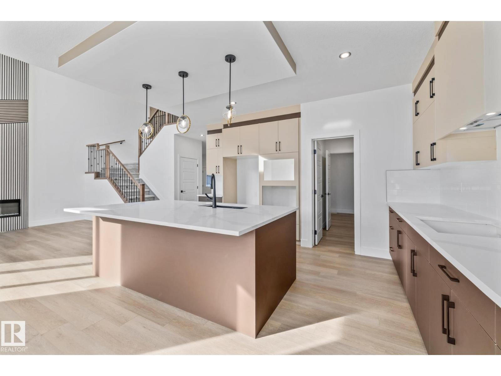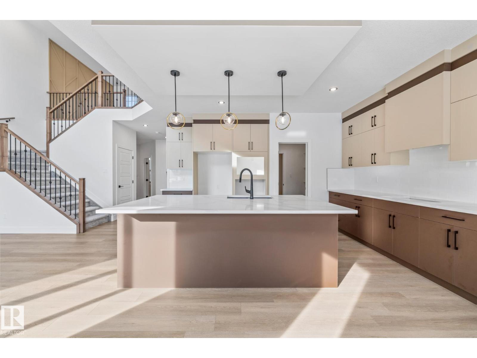 Welcome to a home where thoughtful design and everyday functionality come together beautifully. Enter directly from the garage into a well-appointed mudroom featuring built-in shelving for effortless organization. The walk-through pantry leads to an impressive chef’s kitchen with ample cabinetry and counter space, perfectly positioned to overlook the dining area and the breathtaking living room with 18’ ceilings and a stylish mantel complete with an electric fireplace. To the left on the upper level offers a spacious bonus room, two bedrooms, a shared bathroom with convenient access from both the bonus room and one bedroom, and an upstairs laundry area. Tucked away on the opposite side is the serene primary suite, complete with a private ensuite and a large closet featuring custom built-in shelving. Adding to the appeal is a side entrance and an attached triple-car garage with an RV bay. Located in Fort Saskatchewan, this property is just minutes from many amenities! (id:6769)