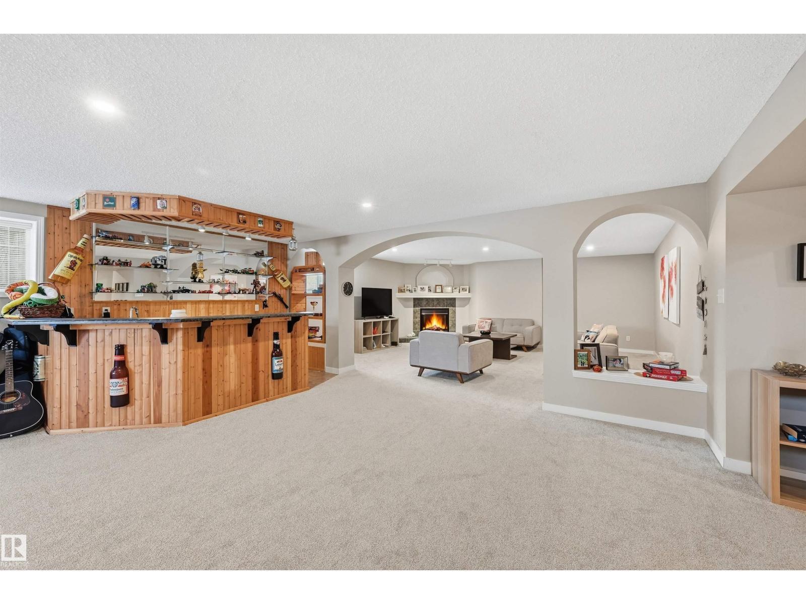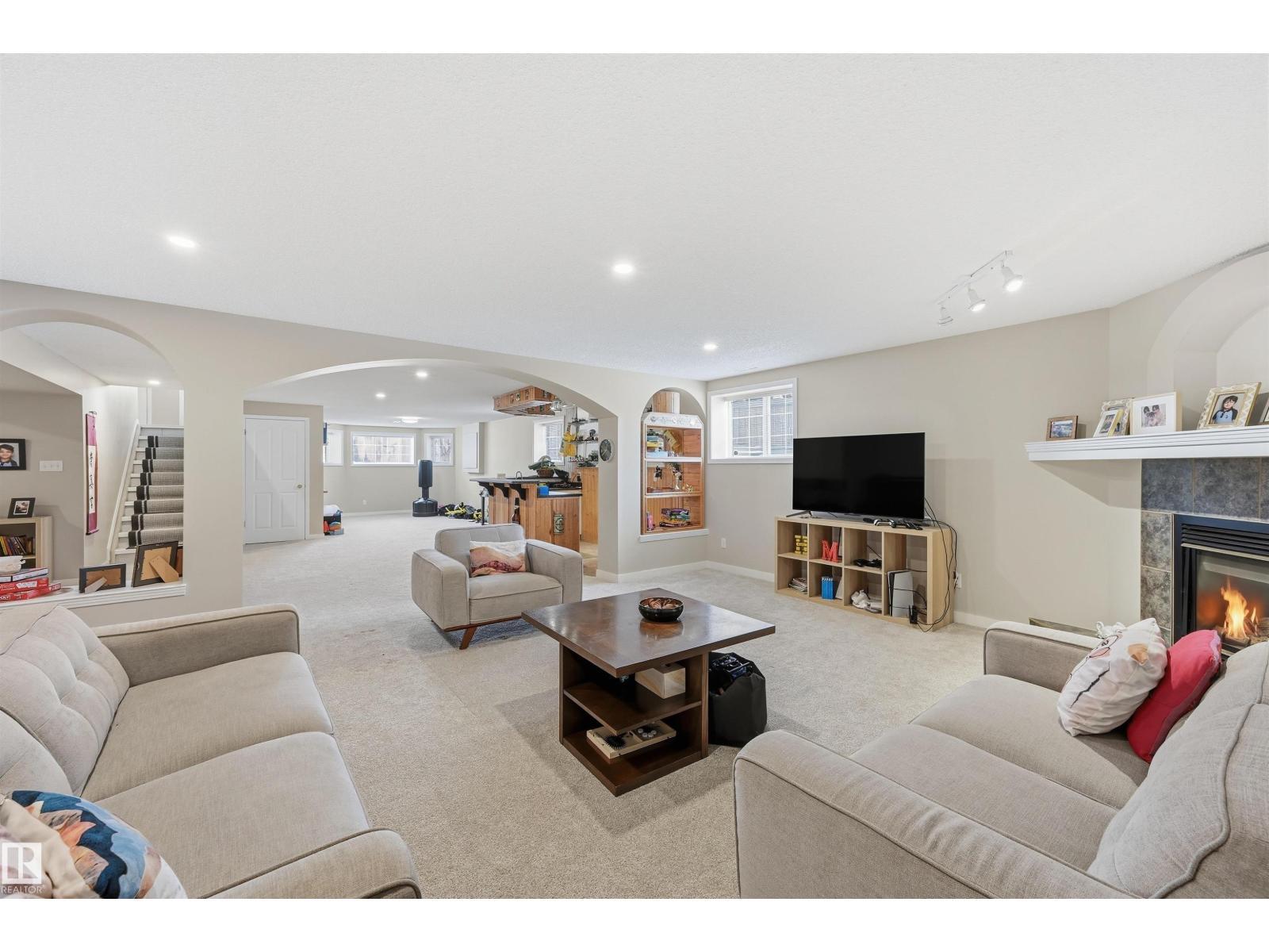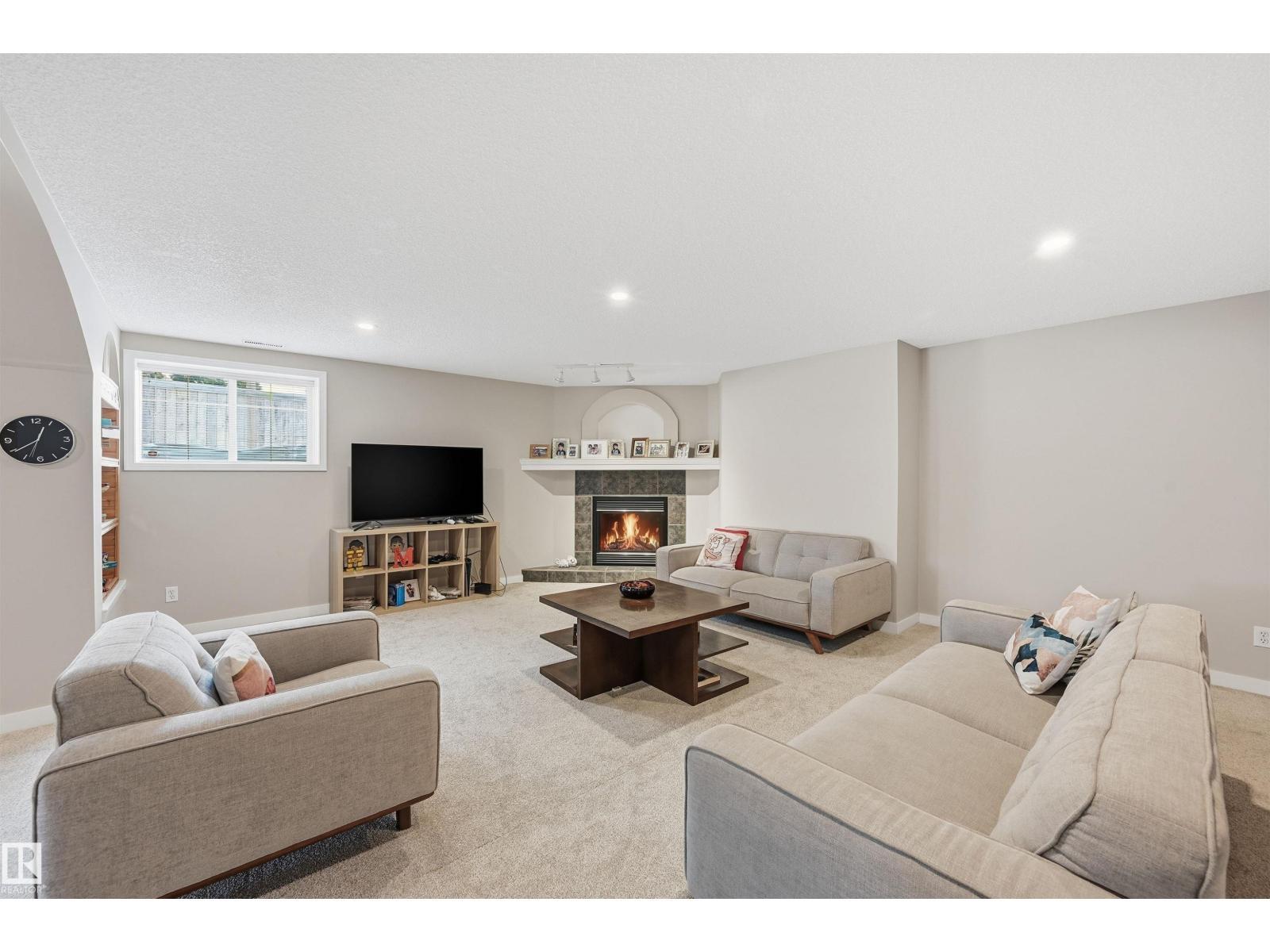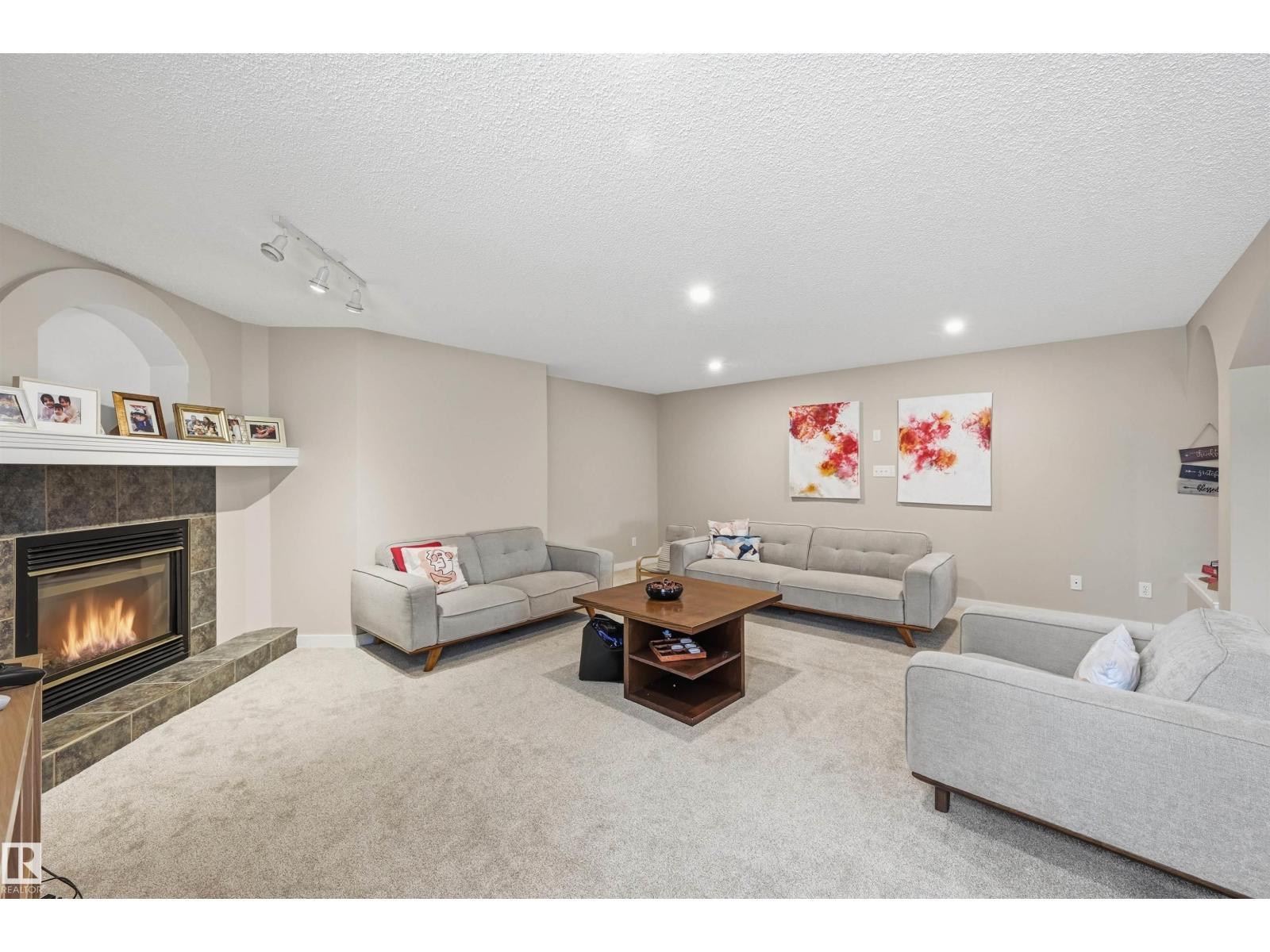 SOUGHT-AFTER, QUIET TWIN BROOKS LOCATION! This raised bungalow is perfectly situated on a massive PIE LOT (8,075sf) w/ SOUTH REAR EXPOSURE & a quiet front facade. Soaring ceilings upon entry in the spacious formal living & dining rooms. Heart of the home is well-lit w/ lrg south windows & boasts a family rm w/ gas fireplace, breakfast nook & kitchen w/ ample counter space/cupboards, coffee station & pantry. Main flr has 3 BEDROOMS: lrg primary w/ walk-in closet/ensuite & 2 addtl bdrms (or use as office space). 4pc bthrm & laundry complete this level. Downstairs find 2 SIZEABLE LIVING AREAS (one w/ wet bar & other w/ gas fireplace), 4TH & 5TH BDRMS, 3pc bthrm & flex space/storage. Backyard is a true oasis: lush/mature trees & hedges border the property, garden beds & multiple seating areas! Upgrades: furnace ('21) & architectural shingles (approx '13) plus NO poly b. Oversized garage (23' wide). Convenient location w/ school in neighborhood, quick access to ravine, parks, transit & major arteries (Henday). (id:6769)