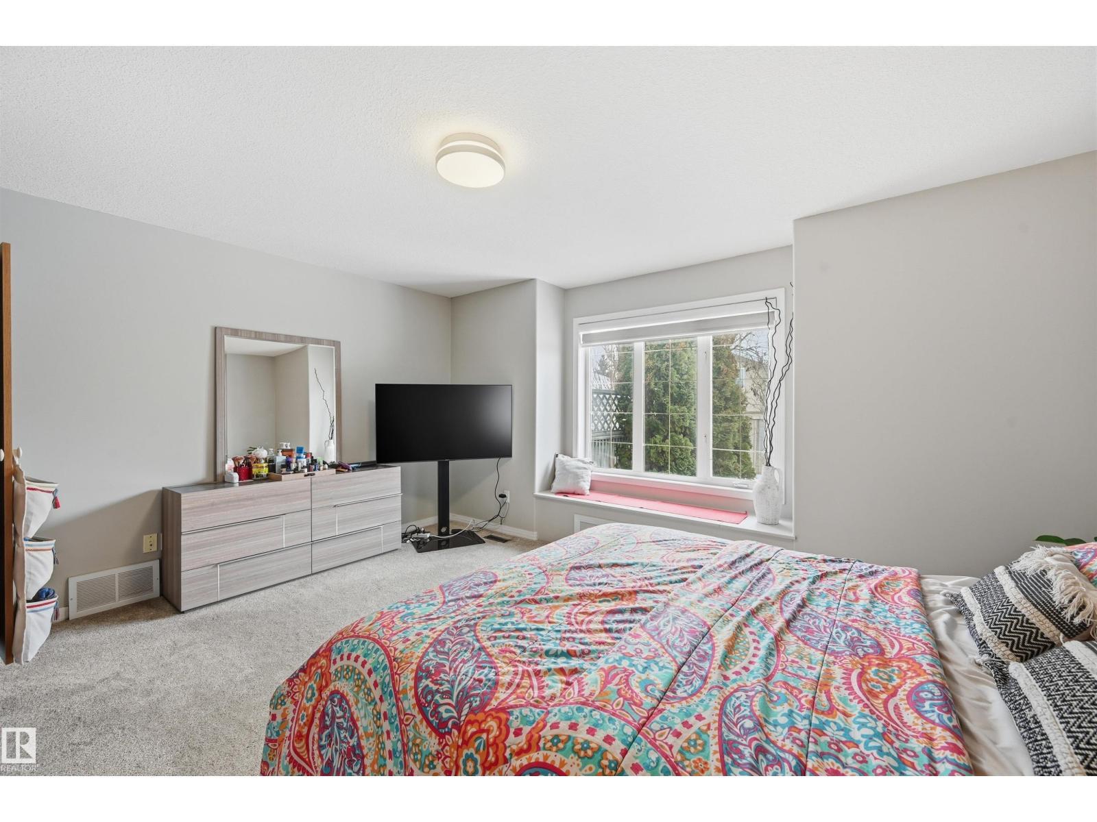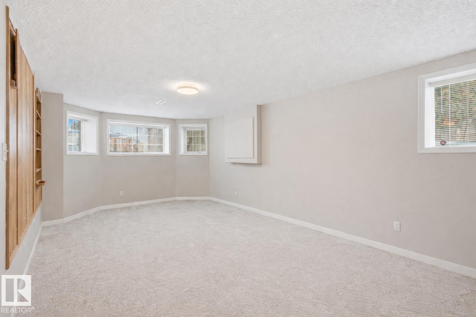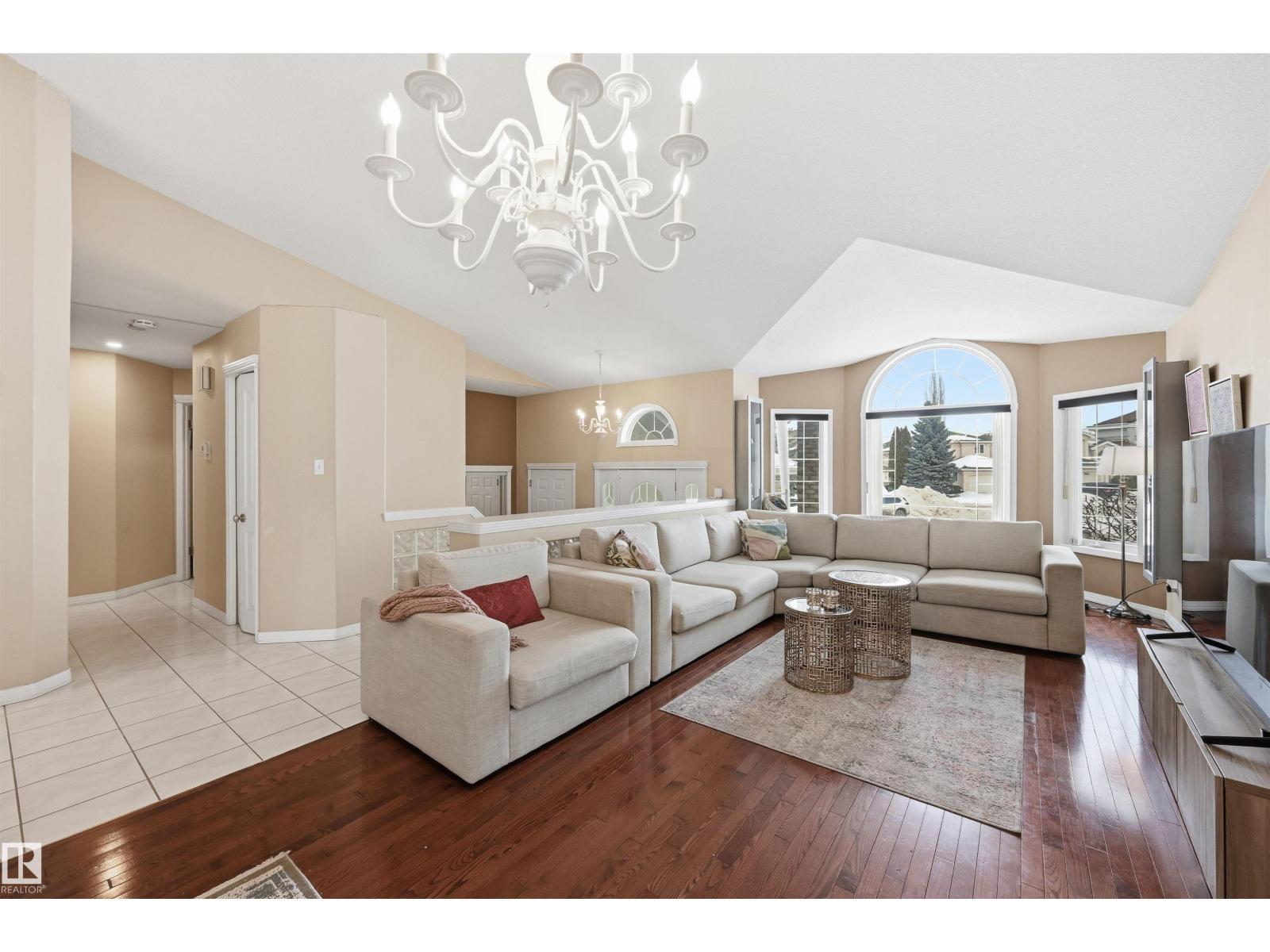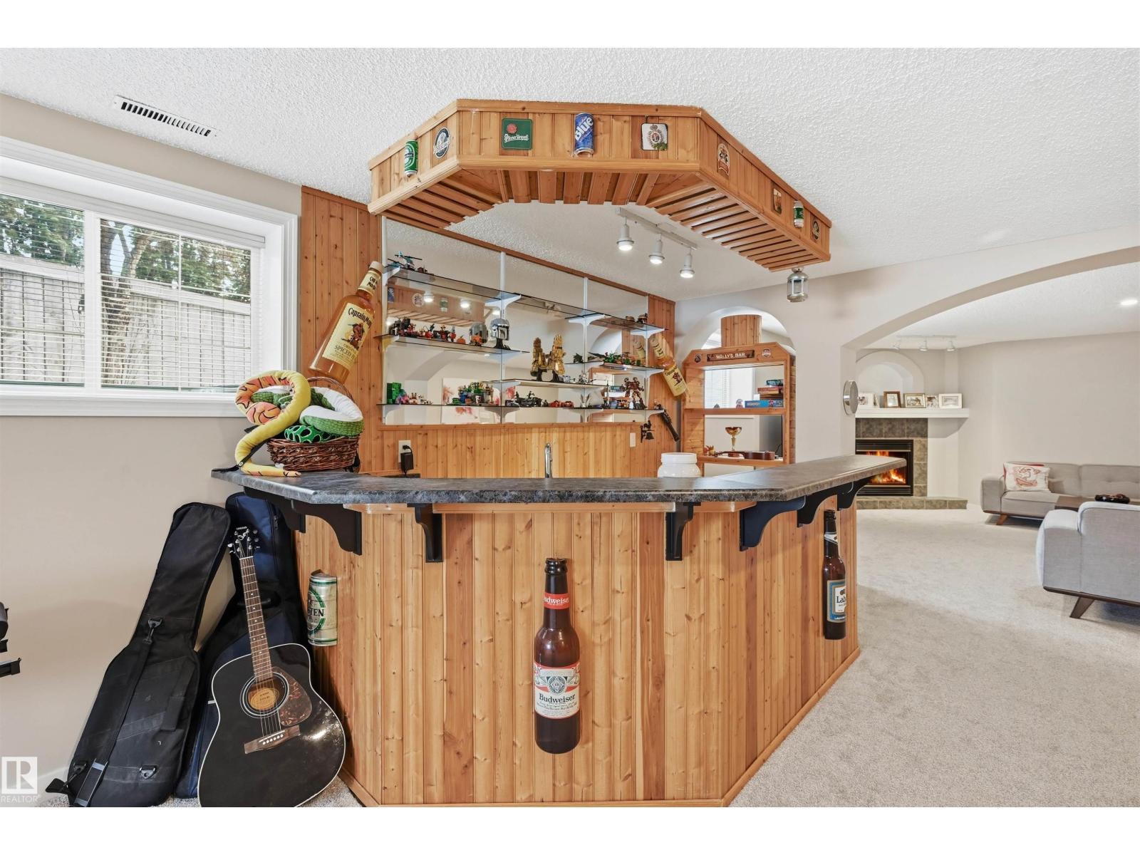 SOUGHT-AFTER, QUIET TWIN BROOKS LOCATION! This raised bungalow is perfectly situated on a massive PIE LOT (8,075sf) w/ SOUTH REAR EXPOSURE & a quiet front facade. Soaring ceilings upon entry in the spacious formal living & dining rooms. Heart of the home is well-lit w/ lrg south windows & boasts a family rm w/ gas fireplace, breakfast nook & kitchen w/ ample counter space/cupboards, coffee station & pantry. Main flr has 3 BEDROOMS: lrg primary w/ walk-in closet/ensuite & 2 addtl bdrms (or use as office space). 4pc bthrm & laundry complete this level. Downstairs find 2 SIZEABLE LIVING AREAS (one w/ wet bar & other w/ gas fireplace), 4TH & 5TH BDRMS, 3pc bthrm & flex space/storage. Backyard is a true oasis: lush/mature trees & hedges border the property, garden beds & multiple seating areas! Upgrades: furnace ('21) & architectural shingles (approx '13) plus NO poly b. Oversized garage (23' wide). Convenient location w/ school in neighborhood, quick access to ravine, parks, transit & major arteries (Henday). (id:6769)