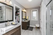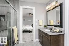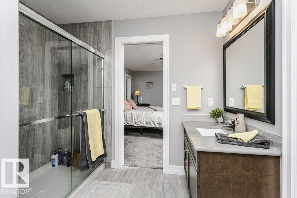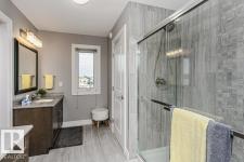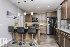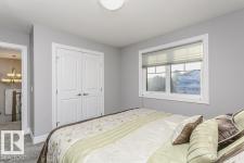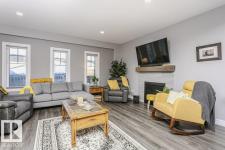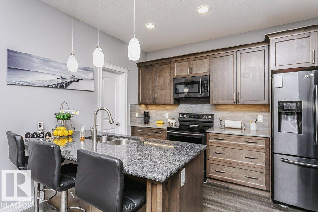 Custom-designed 2 Story home offers approx. 2,219 sq. ft. of beautifully finished living space with a rare rear lane & a 22’ x 25’ double detached garage with a 16’ x 8’ door. From the moment you enter, pride of craftsmanship is evident in the quality design and upscale finishes throughout. Enjoy 9' Ceilings on main & lower levels. The ceramic-tiled foyer opens to a bright open-concept living, kitchen & dining area complete with gas fireplace. The kitchen showcases custom hand-wiped maple cabinetry, quartz countertops, black fingerprint-resistant appliances and large pantry. Through the mud room access your 10’ x 20’ deck, landscaped & fenced yard. The main floor also includes a spacious office/den or bedroom and a 2-piece bath, vinyl plank flooring, plush upgraded carpet. An open riser staircase leads to the upper level with a generous primary bedroom, walk-in closet, 4-piece ensuite, 2 additional bedrooms & a full bath. This home also offers A/C, cul-de-sac location steps to River Valley and Parks (id:6769)