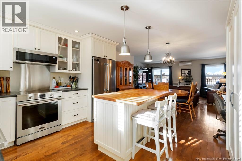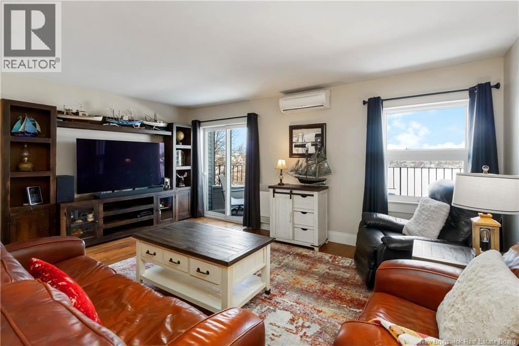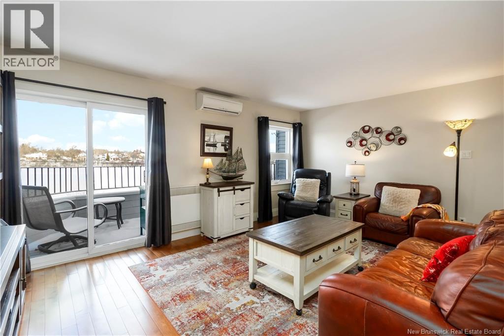 Beautifully updated top-floor condo overlooking Jones Lake, ideally located steps from walking trails and minutes to downtown. This well-maintained unit offers a rare blend of privacy, space, and functionality seldom found in condo living. Primarily brick construction with wood siding facing the lake provides durability, energy efficiency, and timeless curb appeal. Bright open-concept living and dining area is filled with natural light and features hardwood floors throughout, complemented by ceramic tile in the bathrooms. The updated kitchen offers stylish cabinetry, quality finishes, and a practical layout ideal for everyday living and entertaining. The spacious primary bedroom includes a walk-in closet and a private two-piece ensuite, while the second bedroom is generously sized and located near the full bathroom. Separate laundry room adds convenience, and storage is exceptional for a condo. The oversized attached garage includes an extra-large storage area; perfect for bikes, seasonal items, or hobby gear; an outstanding and rarely available feature. Additional highlights include energy-efficient upgrades, a ductless mini-split heat pump, and a quiet owner-occupied setting. A rare opportunity to enjoy lake views, trails, and downtown amenities while benefiting from space, storage, and efficiency in central Moncton. (id:6769)