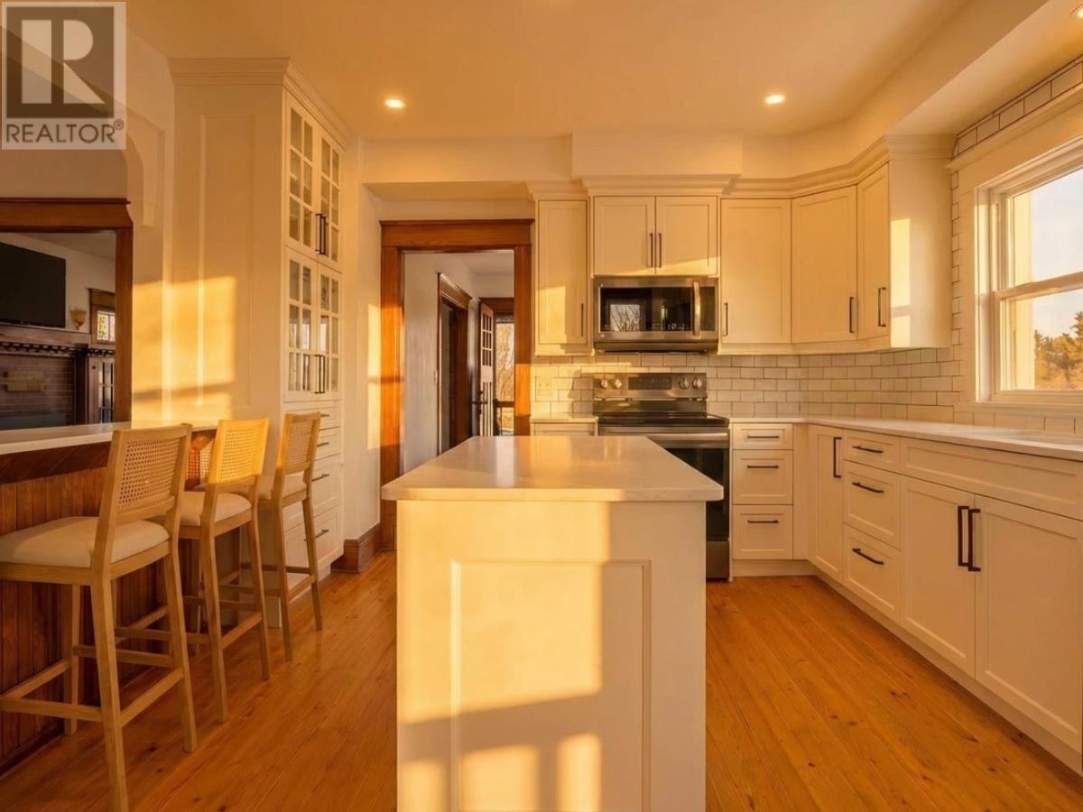 Set on 1.25 acres along the banks of the Vernon River, this restored historic American Foursquare is a rare waterfront residence in the heart of Eastern Prince Edward Island, ideally positioned between Charlottetown and Montague. The setting is calm and expansive, with the river as a constant presence beyond the home. The restoration has been approached with care and restraint, preserving what gives the property its lasting character: original hardwood and pine floors, rich unpainted natural wood trim, and the timeless proportions that define this classic architectural form. A covered front entry introduces generous principal rooms, including a main-level powder room, a dedicated office or study, and elegant spaces designed for both gathering and quiet everyday living. At the centre, a beautifully appointed kitchen opens to a waterview deck where mornings begin over the river and evenings settle into stillness. The second level offers four bedrooms, including a serene primary suite overlooking the water, complete with a freestanding tub and separate shower, as well as a full guest bathroom. Above, the finished attic provides an inspired bonus level, a light-filled retreat for creative work, reading, studio space, or play. The finished lower level expands the home dramatically with a huge living room, two additional bedrooms, a versatile flex room ideal for a gym or storage, a full bathroom, and a designated laundry room. With extensive mechanical improvements, including multiple heat pumps, updated services, and a fully finished concrete foundation, this waterfront home is a rare example of completeness, where heritage craftsmanship and modern comfort meet in exceptional balance. (id:6769)