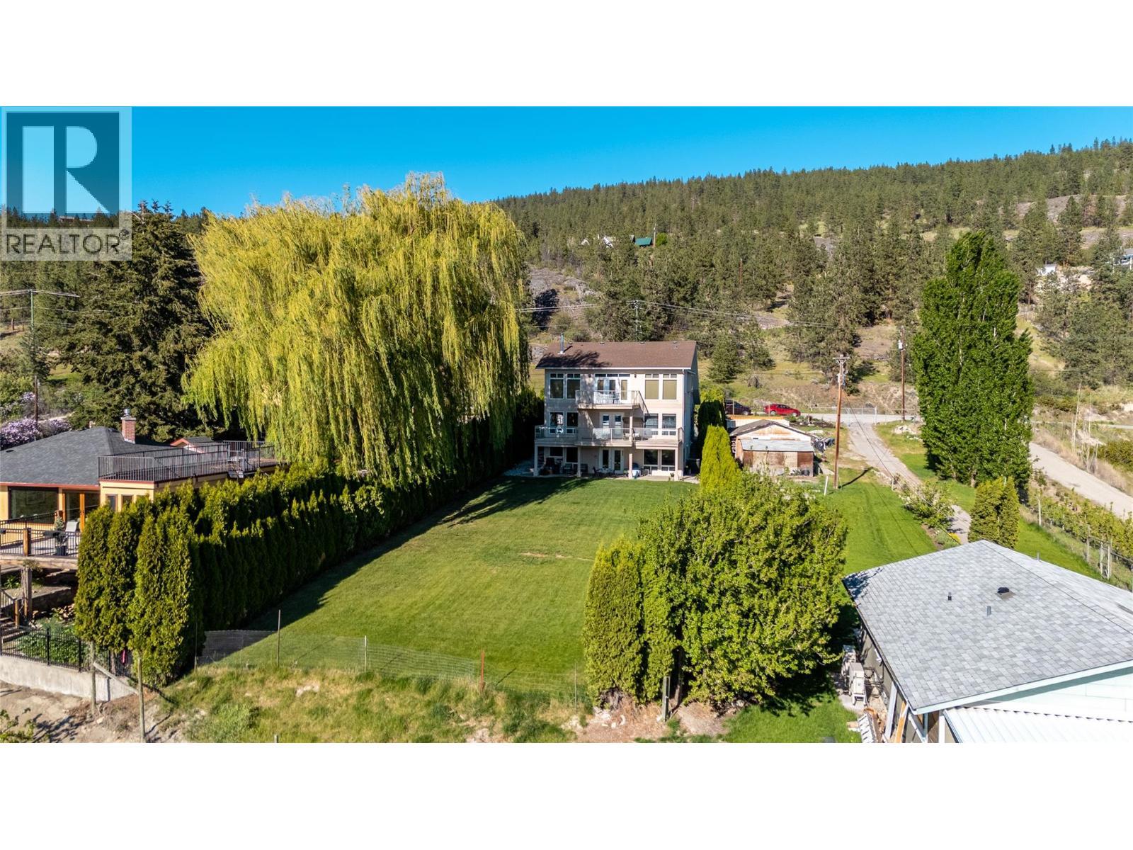 OPEN HOUSE SAT FEB 7 from 2:00 - 3:30. Gorgeous Lake Views | Flexible Living in Naramata | 15 Min to Penticton. Set above Okanagan Lake with sweeping 180-degree views of water and vineyards, this solidly built 2004 custom home offers nearly 3,500 sq ft of flexible living space just minutes from Naramata Village. The home’s unique, view-oriented layout is designed to take full advantage of its setting. The entry level features three bright bedrooms, two full bathrooms, and laundry, creating a quiet and practical bedroom level separate from the upper level living spaces. Up the curved staircase is the heart of the home, where cherrywood floors, a cozy standalone fireplace, and two living areas frame stunning lake views. The kitchen, dining area, and entertaining deck are perfectly positioned for gatherings, while two additional flex rooms provide space for home offices, hobbies, or storage. The walkout lower level includes a private two-bedroom, one-bath suite with its own entrance, laundry and patio—ideal for extended family, guests, or added flexibility over time. A low-maintenance, tree-lined backyard offers privacy without the upkeep. Minutes to wineries, beaches, the KVR Trail, and all that Naramata has to offer, this is a well-constructed home with exceptional views, adaptable space, and the freedom to enjoy now and personalize over time. 24 hours’ notice required for showings. (id:6769)