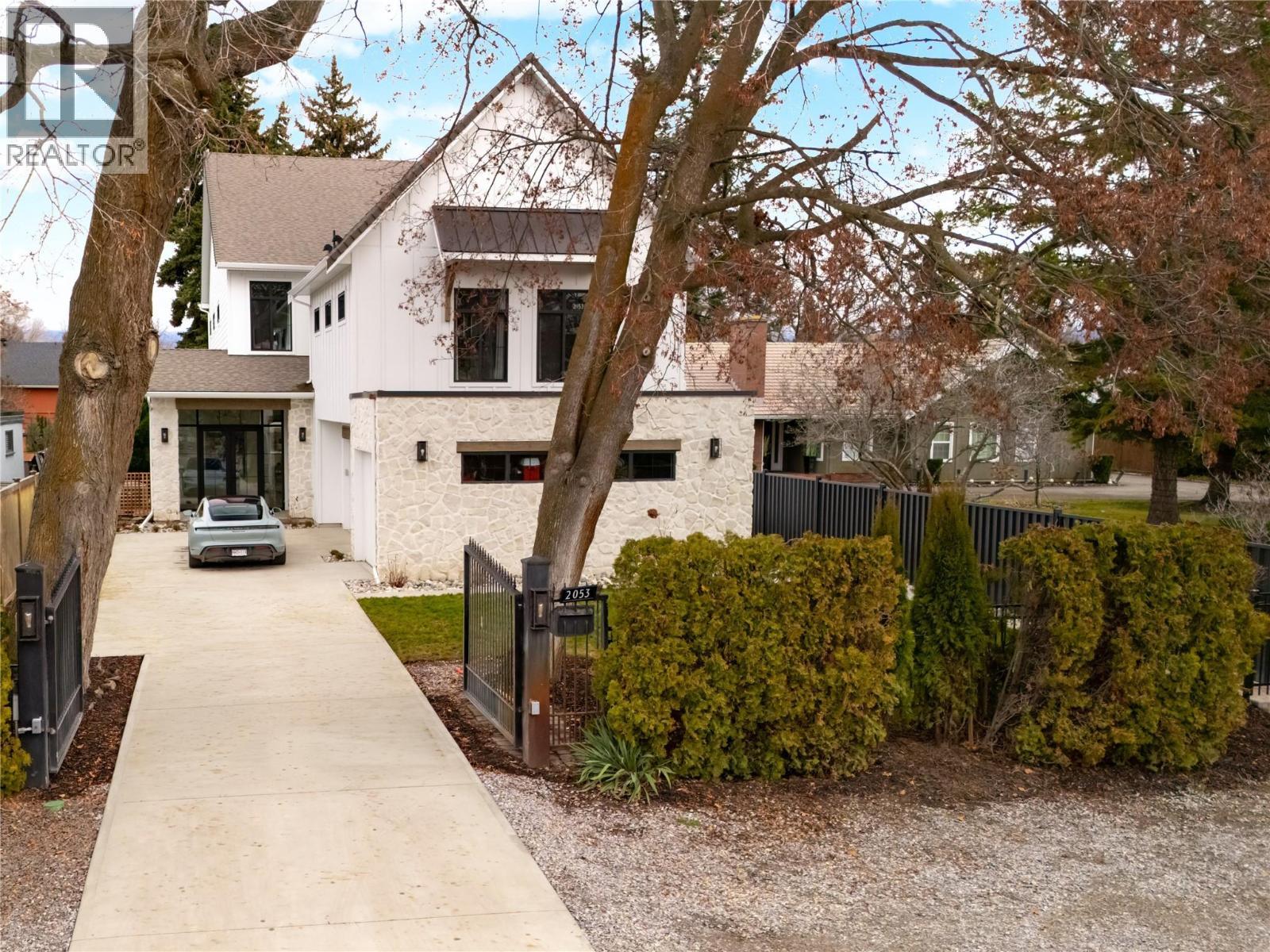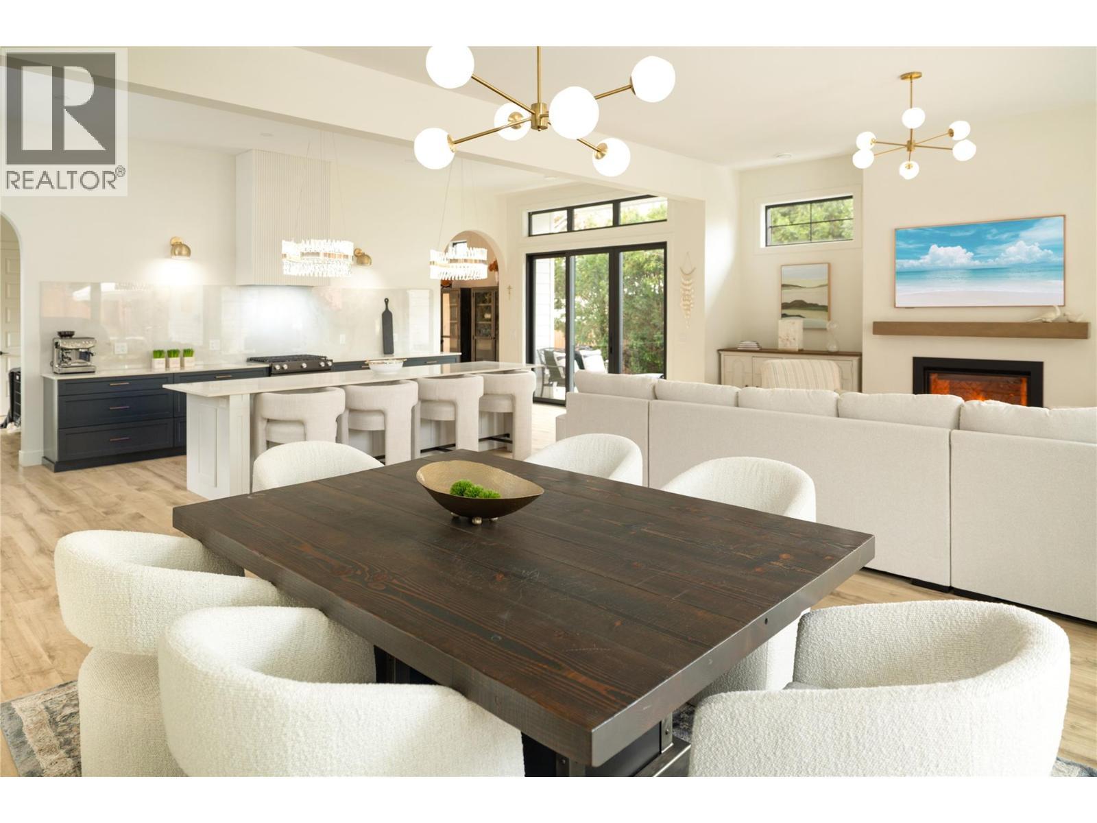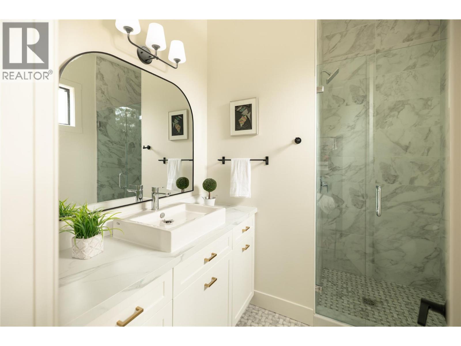 A meticulously crafted, custom-built residence where timeless West Coast inspiration meets the relaxed elegance of the Okanagan—just steps from the beach and surrounded by mature greenery in one of the area’s most coveted walkable neighbourhoods. Influenced by classic Kitsilano architecture, the exterior blends natural stone and wood, creating enduring curb appeal. Inside, soaring 12-foot ceilings and luxurious wide-plank hardwood flooring establish a calm, architectural presence throughout. The main level unfolds into an impeccably designed open-concept living space, created for both everyday ease and elevated entertaining. A striking 11.5-foot island anchors the kitchen, complemented by premium appliances, Dekton countertops, and a generous walk-in pantry. Dining and living areas are thoughtfully centred around a custom fireplace, while softly rounded doorways and refined detailing add warmth and continuity. Glass doors extend the living space outdoors to a private backyard sanctuary featuring a heated, saltwater in-ground pool, expansive patio areas for gathering, and dedicated she shed and he shed spaces—ideal for work, wellness, or creative pursuits. Upstairs, a wide staircase with integrated lighting leads to a serene primary retreat designed for privacy and restoration. The ensuite is beautifully finished with Bianca Carrara marble countertops, a sculptural soaker tub, dual vanities, a seamless glass shower, and heated flooring. Three additional bedrooms and two thoughtfully finished bathrooms complete the upper level. A fully self-contained, legal two-bedroom suite with private entrance, its own laundry, and a bright living space adds flexibility while maintaining separation and discretion. Just minutes from beaches, parks, shops, cafes, and the lake—this home offers a rare balance of refined living and daily convenience in one of the Okanagan’s most desirable settings. (id:6769)