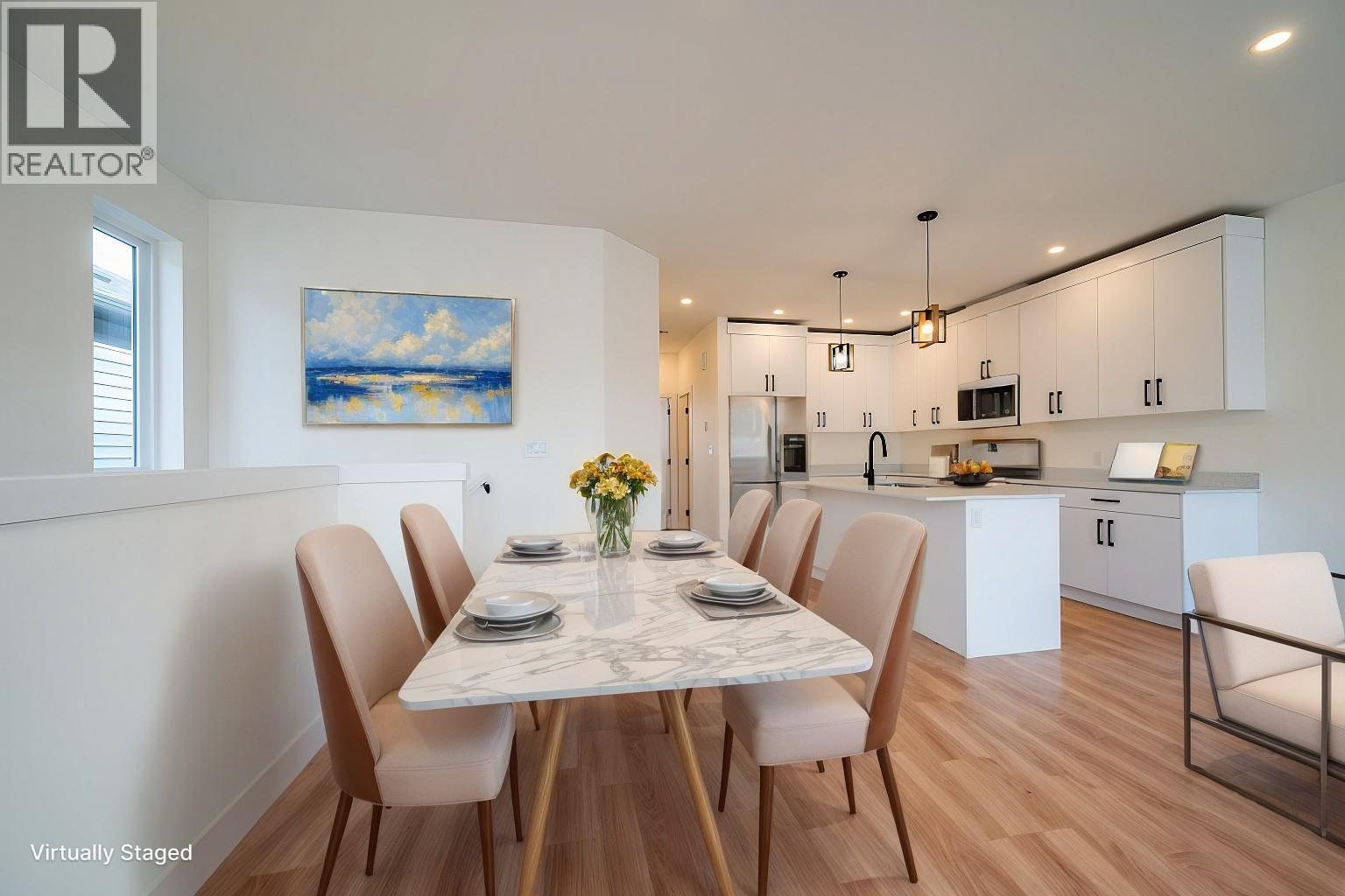 Welcome to this brand new basement entry home offering a bright, modern design with 2 bedrooms on the main floor and a finished daylight basement. The open concept main level is filled with natural light, showcasing a stylish kitchen with stone countertops, abundant cabinetry, and access to a front patio with hillside views. The spacious primary suite features a walk-in closet and a 4-piece ensuite, while a second bedroom and another 4-piece bathroom complete the main floor. The entryway is warm and inviting, with a mudroom that connects to the garage and includes laundry hookups. The lower level offers excellent flexibility with a large family room, third bedroom, and full 4-piece bathroom. A separate side entry and rough-ins for a wet bar provide great potential for a private suite, teen space, or extended family living. There’s also a private patio facing east to enjoy the morning sun, plus plenty of storage for your belongings. This home is finished with modern touches including stone counters, laminate flooring, and neutral Colors. Located in a bare land strata of 20 duplex-style homes, fees are just $150/month and include water, sewer, garbage, and road maintenance. Steps away you’ll find the Rivers Trail along Aviation Way, river access, and a fenced dog park. Shopping, schools, and transit are minutes from your door. Quick possession available. (id:6769)