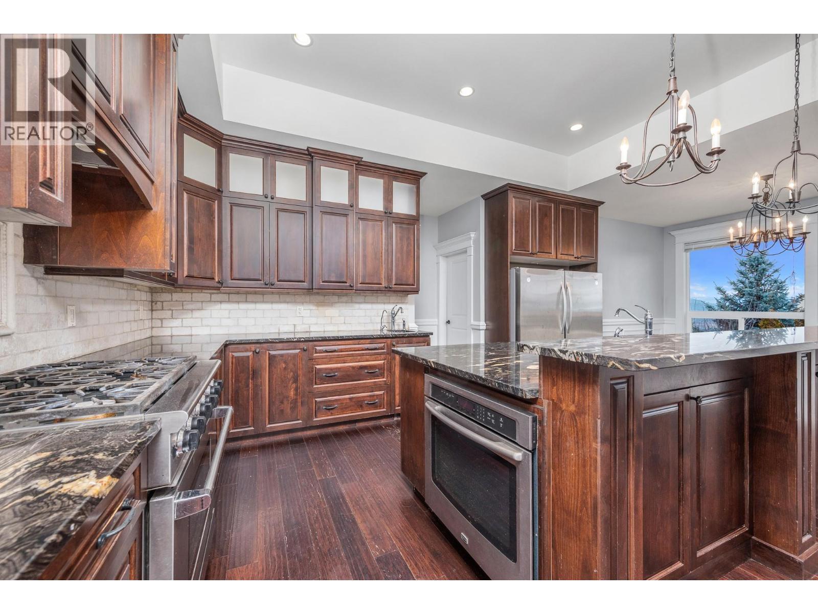 Take in the lake and city views from this thoughtfully designed Foothills rancher with walk-out basement, offering high-quality living space on a beautifully maintained 0.3-acre property. The main level features open-concept living anchored by a well-appointed chef’s kitchen with stone countertops, gas range, second prep sink, generous pantry, and separate fridge and freezer—ideal for entertaining or hosting family gatherings. The covered deck extend the living space outdoors, with views that stretch across the city and toward Kalamalka Lake. The primary bedroom is a private retreat, complete with a spacious walk-in closet and a spa-inspired ensuite featuring a soaker tub, glass shower, and double sinks. Downstairs, the walk-out level offers a large family room with wet bar, perfect for casual entertaining and movie nights. A fully self-contained one-bedroom suite with private entrance provides excellent Airbnb potential or comfortable accommodation for extended family, while an additional 400 sq ft of unfinished space offers endless options for a media room or hobby space. Outdoors, the property includes a garden area, hot tub, ample additional parking for an RV or boat, and a 3-car garage equipped with both 110 and 220 power. Located close to BX School, BX Falls, and just 15 minutes to Silver Star, this home delivers a rare combination of views, space, and versatility in one of Vernon’s most desirable neighbourhoods. (id:6769)
