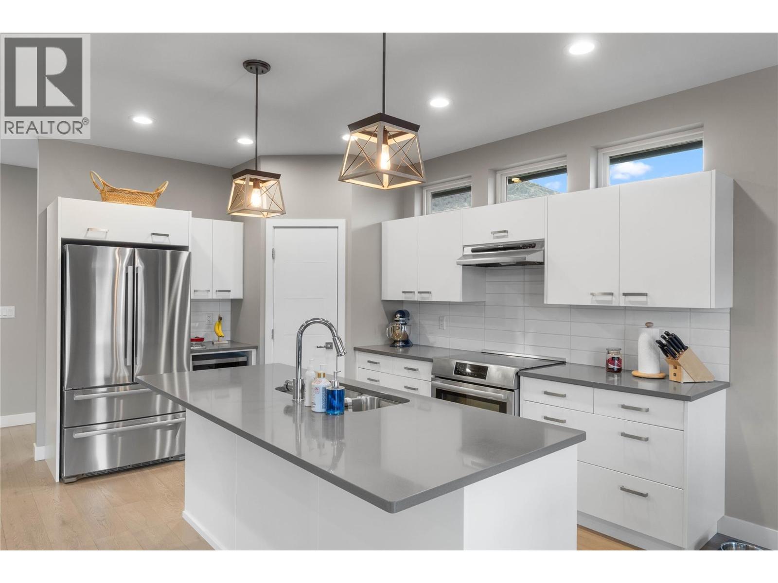 This true rancher home, built in 2017 and impeccably maintained, shows like new with breathtaking mountain and river views. Located in the highly desirable Batchelor Heights neighbourhood, this 4-bedroom, 3-bathroom home blends modern design with everyday functionality. A few steps from the front door you walk into a bright open-concept design that showcases the view and offers effortless one level living on the main floor. Whether you are relaxing in the living room or sipping your morning coffee on the back deck, the scenery is always front and centre. The spacious kitchen features quartz countertops, a large island with bar seating, and a full pantry, making it both stylish and practical for daily living and entertaining. Cozy up in the living room with the gas fireplace during cooler months. Downstairs includes a generous rec room plus a separate area with 2 bedroom suite potential. Electrical, plugs, laundry wiring, venting, and soundproofing are already in place. Simply add a kitchen and water hookups in the utility room with City of Kamloops approval required. The layout also works beautifully as a family home, providing a second living space without sacrificing functionality. Additional features include underground irrigation, a Waterdrop filtration system, and energy-efficient LED lighting throughout. Meticulously cared for and thoughtfully designed, this home offers incredible value, versatility, and lifestyle in one of Kamloops’ most sought-after locations. (id:6769)