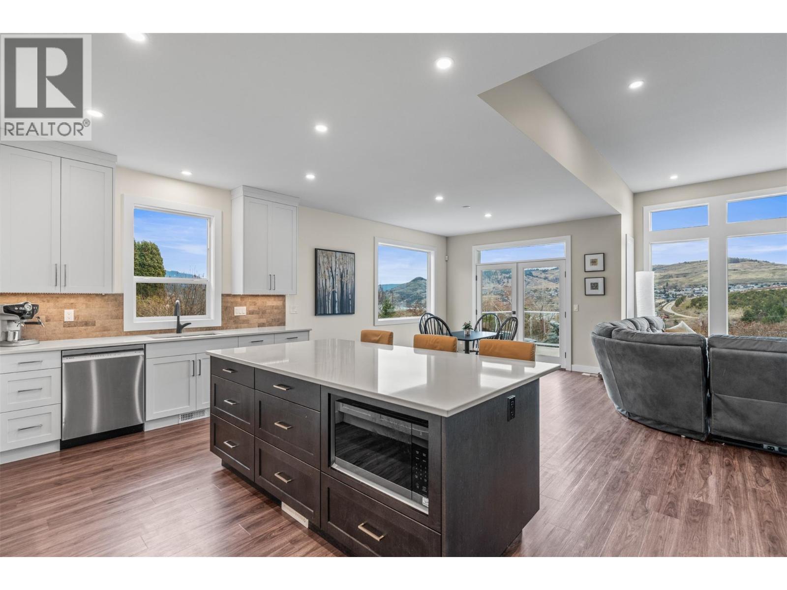 Custom-built in 2024, this modern home offers Kalamalka Lake views and comfortable living in the prestigious Coldstream. Set on a 0.289-acre lot, the 2,780 sq.ft. residence features elevated open-concept design, with high ceilings and large windows that bring natural light and capture the surrounding scenery. The chef-inspired kitchen with statement island flows seamlessly into the main living area and west-facing deck—ideal for evening sunsets. The primary suite enjoys great views, a spa-inspired ensuite, and a generous walk-in closet. The entry level offers a fully self-contained 1-bedroom legal suite with separate entrance. Additional features include an oversized double garage with 3-piece bath, RV parking with plug-in, a tiered backyard that is ready for your ideas with pool potential, a large covered patio pre-wired for a hot tub, and a natural gas BBQ hookup. Walk to the Rail Trail, Kalamalka Lake beaches, and local amenities. Come see what this rare blend of a modern home design located in a mature neighbourhood setting can offer you today! (id:6769)