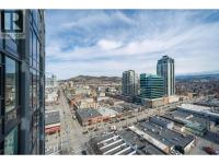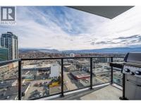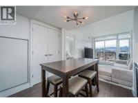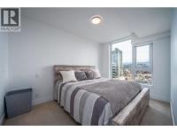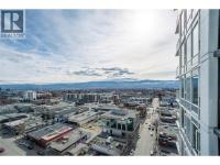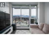 Contemporary 1 bedroom + large den condo on the 17th floor of ELLA! This stunning east-facing home offers beautiful sunrise exposure and expansive city and mountain views. ELLA is a high-quality concrete building, providing superior durability, privacy, and soundproofing in the heart of downtown Kelowna. The modern kitchen features stainless steel appliances including a gas stove, quartz countertops, under-cabinet lighting, sleek cabinetry, and a movable island with seating. The bright, spacious living area is filled with natural light and opens to the balcony—perfect for taking in the views or enjoying evening BBQs. The generous primary bedroom easily fits a king-size bed with room for additional furniture, while a large mirrored closet leads to the elegant 4-piece bathroom with quartz vanity and tub/shower combo. The sizable den with closet is a fantastic bonus space, ideal for a home office or guest room. Additional storage includes a side-by-side washer and dryer with folding counter, shelving, and hanging space, plus a versatile coat closet that could double as a pantry. One secure underground parking stall included, along with secured visitor parking. Two pets allowed with no height restrictions. With a Walk Score of 97, enjoy all the best of vibrant downtown Kelowna. Mid-March possession possible. (id:6769)