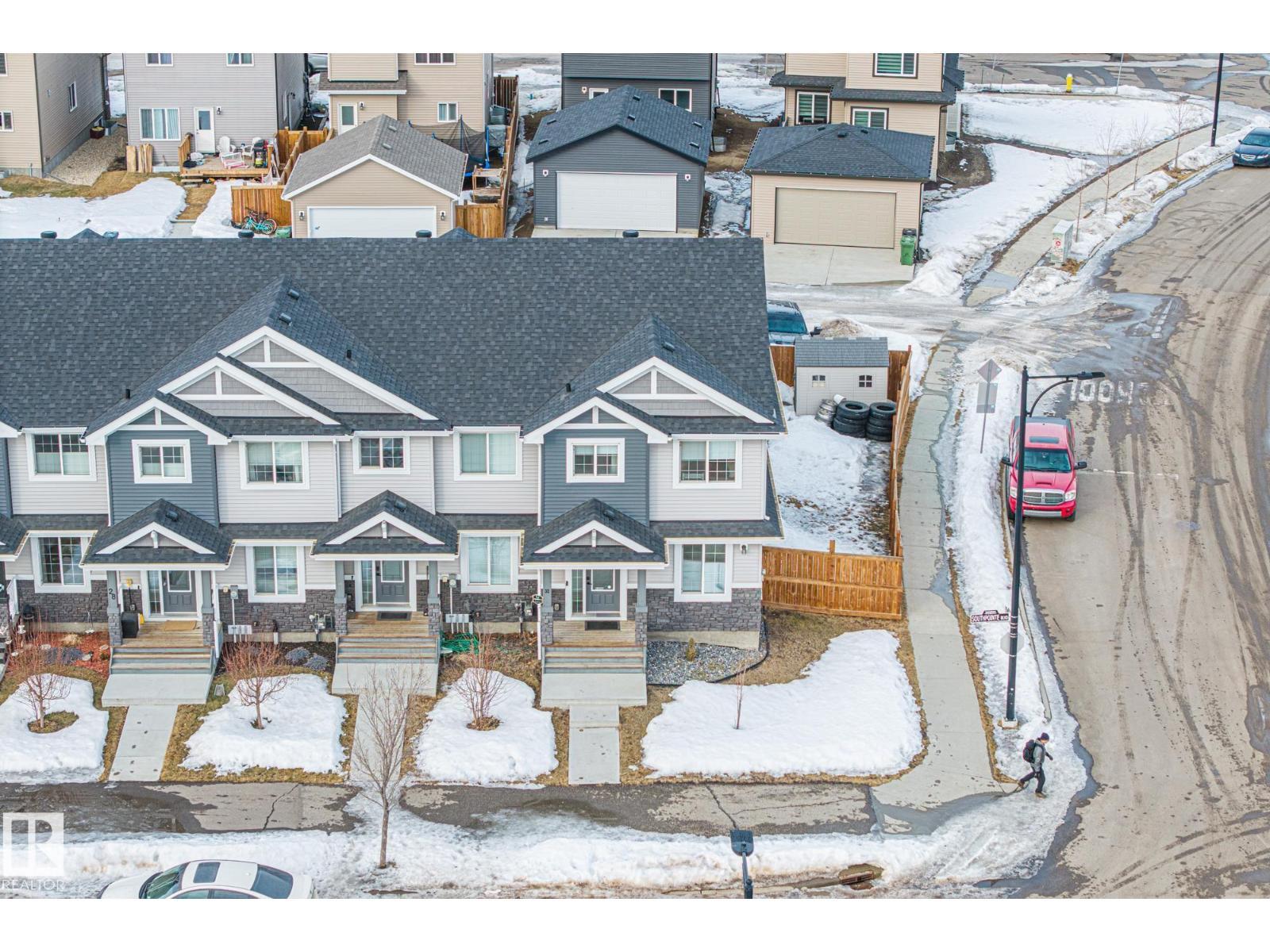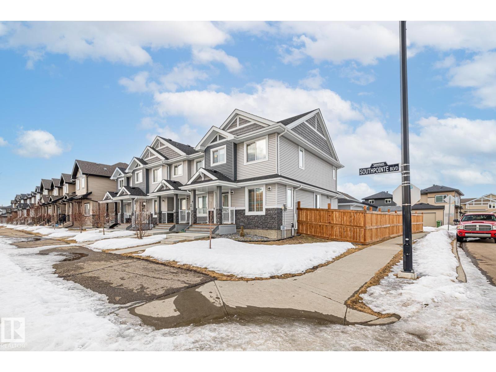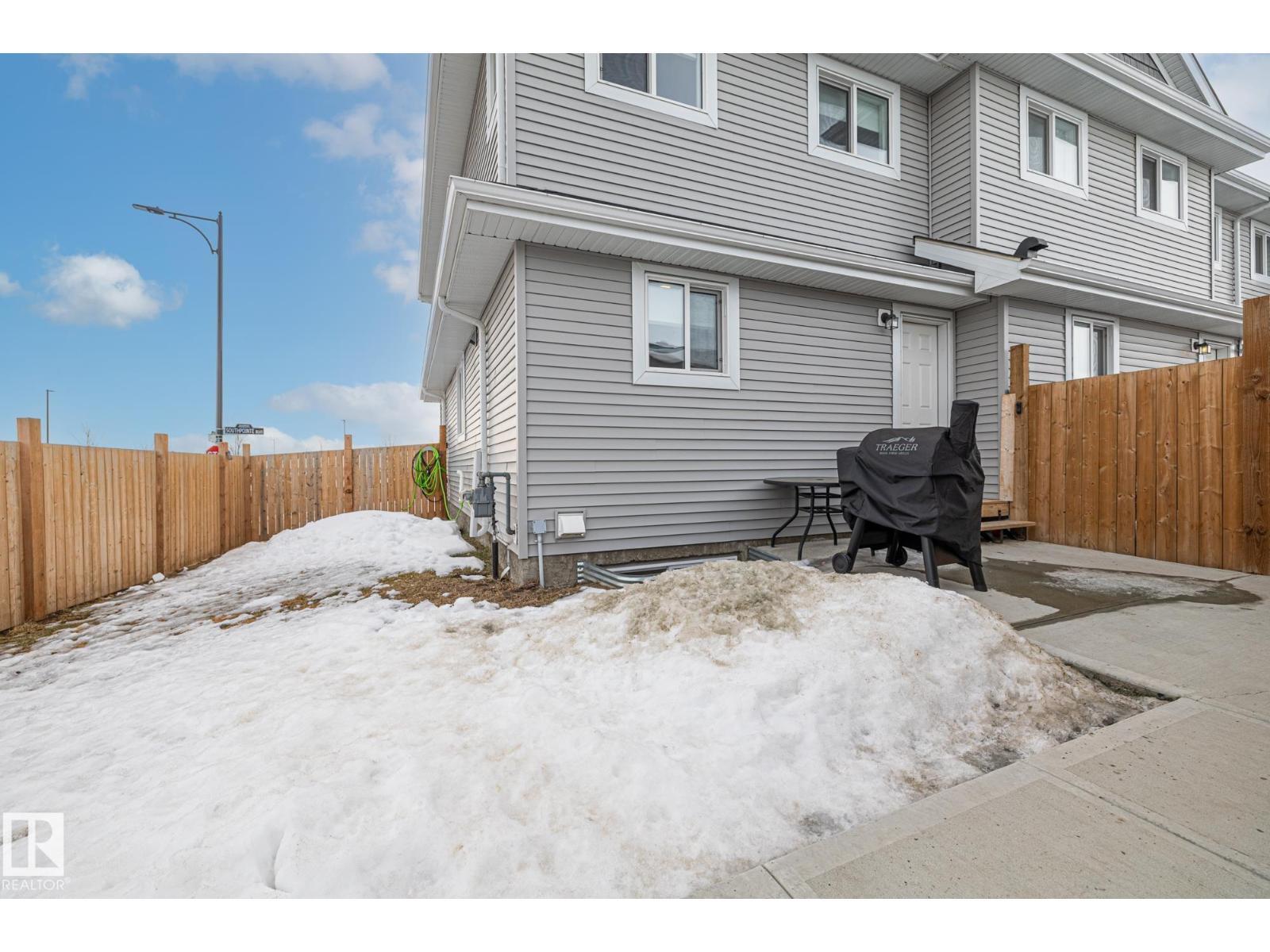 Beautifully maintained, fully finished end-unit townhouse in the family friendly community of Southpointe, ideally located directly across from the K–9 school. This bright home offers extra windows for added natural light and an open, welcoming feel throughout. The main floor features an open-concept living room, dining area, and kitchen with quartz countertops, plus a convenient 2-piece bathroom and laundry at the back entrance. Upstairs, you’ll find three spacious bedrooms, including a large primary with walk-in closet and 4-piece ensuite, along with an additional 4-piece bathroom. The fully finished basement includes a comfortable living room, bedroom, 4-piece bathroom, and plenty of storage. Outside, enjoy a poured concrete patio and exceptional parking with a detached double garage, extended parking pad, and two additional parking stalls behind the garage. Close to shopping, amenities, walking trails, and parks—this move-in-ready home offers outstanding value, space, and location. (id:6769)