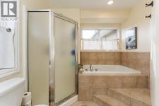 Located in the desirable Westgate subdivision and backing onto a greenbelt, this Craftsman-inspired two-storey home with basement offers nearly 3,000 sq ft of well-designed living space on a quarter-acre lot. The main floor features large windows, an updated kitchen with custom quartz island, pullouts in every cupboard, stainless steel appliances, and a dining area with garden doors. The great room and living room provide welcoming spaces for everyday living and entertaining. Upstairs offers four bedrooms on one level, including a Primary suite with walk-in closet and full four-piece ensuite with soaker tub. An east-facing balcony off the Primary overlooks the backyard and greenbelt, while a covered front balcony captures the evening sun. The fully finished basement includes a large family/rec room, office, and hobby room. The fenced yard features a deck, fixed gazebo, hot tub wiring, double garage, oversized driveway, and backyard access for RV or boat parking. Close to parks, trails, schools, and shopping. (id:6769)