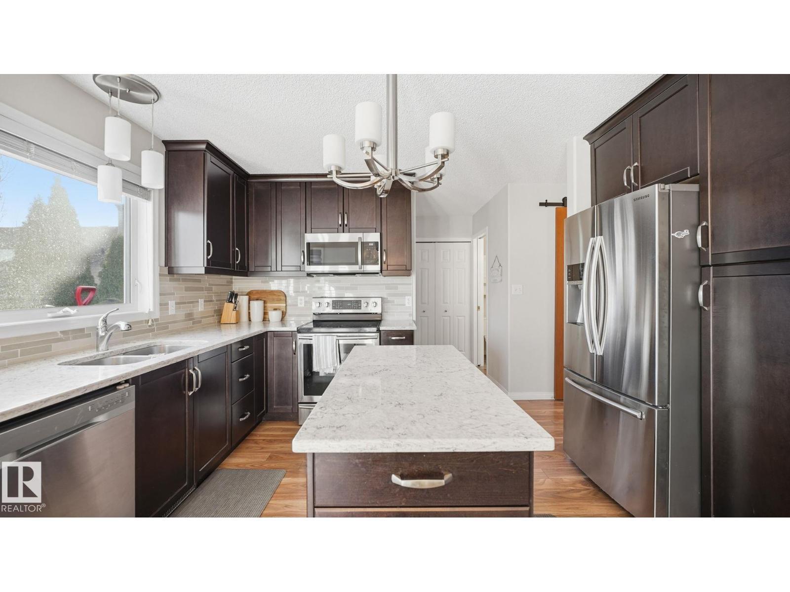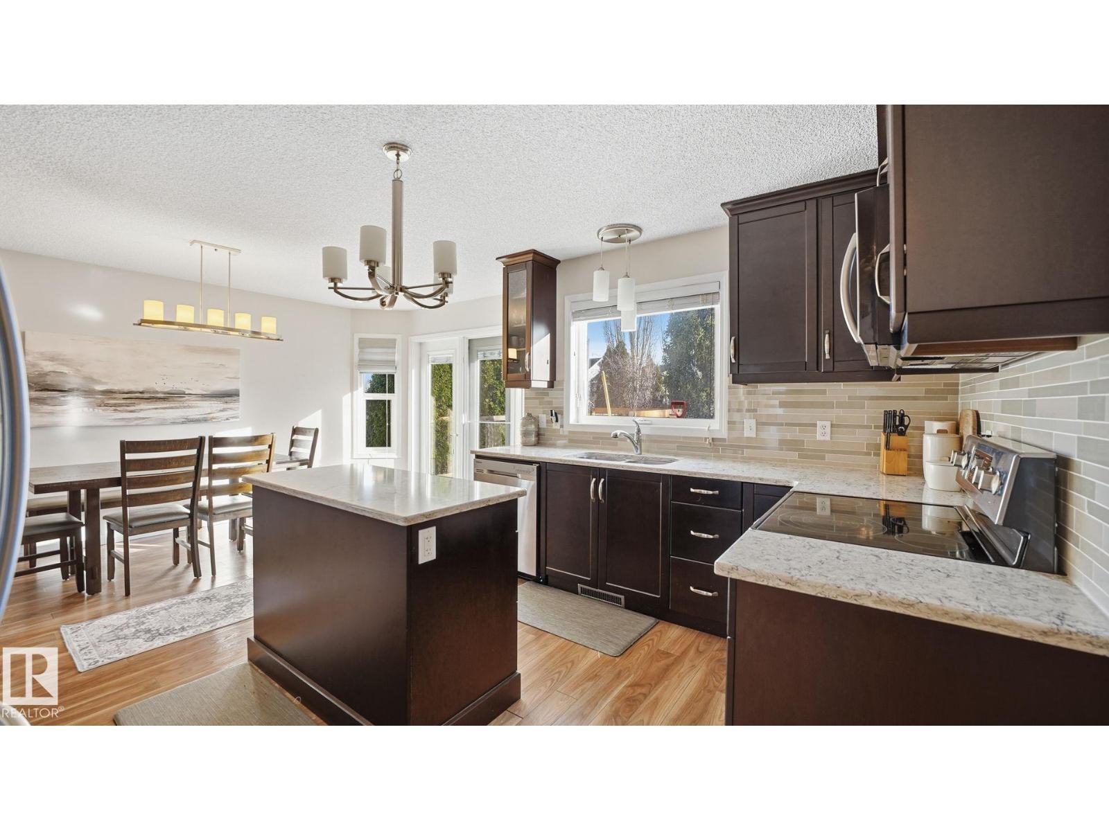 Beautifully maintained in the heart of family-friendly Lakewood! A welcoming foyer w/towering ceilings & soaring vaults sets the tone for this bright, inviting home flooded w/natural light from windows on all sides. The main floor, perfect for everyday living has a spacious living room w/wood-burning fireplace, plus a fully renovated kitchen w/real wood floor/ceiling cabinetry, quartz countertops, undermount sink, SS appliances, center island & a picture window overlooking the backyard. A cozy dinette w/garden doors leads to the cedar deck, ideal for family BBQs. Main level also has durable laminate flring, a 2pc bath & laundry. Upstairs features spacious bedrooms w/no carpet, a 4pc bath & a king-sized primary suite w/4pc ensuite. The fully finished basement adds even more space w/brand new carpet, fresh paint, a rec room, 3pc bath & 4th bedroom. Enjoy the oversized garage, newer shingles, hot water tank (2024), mature trees, hot tub & private yard w/playground, trail system & shopping all nearby (id:6769)