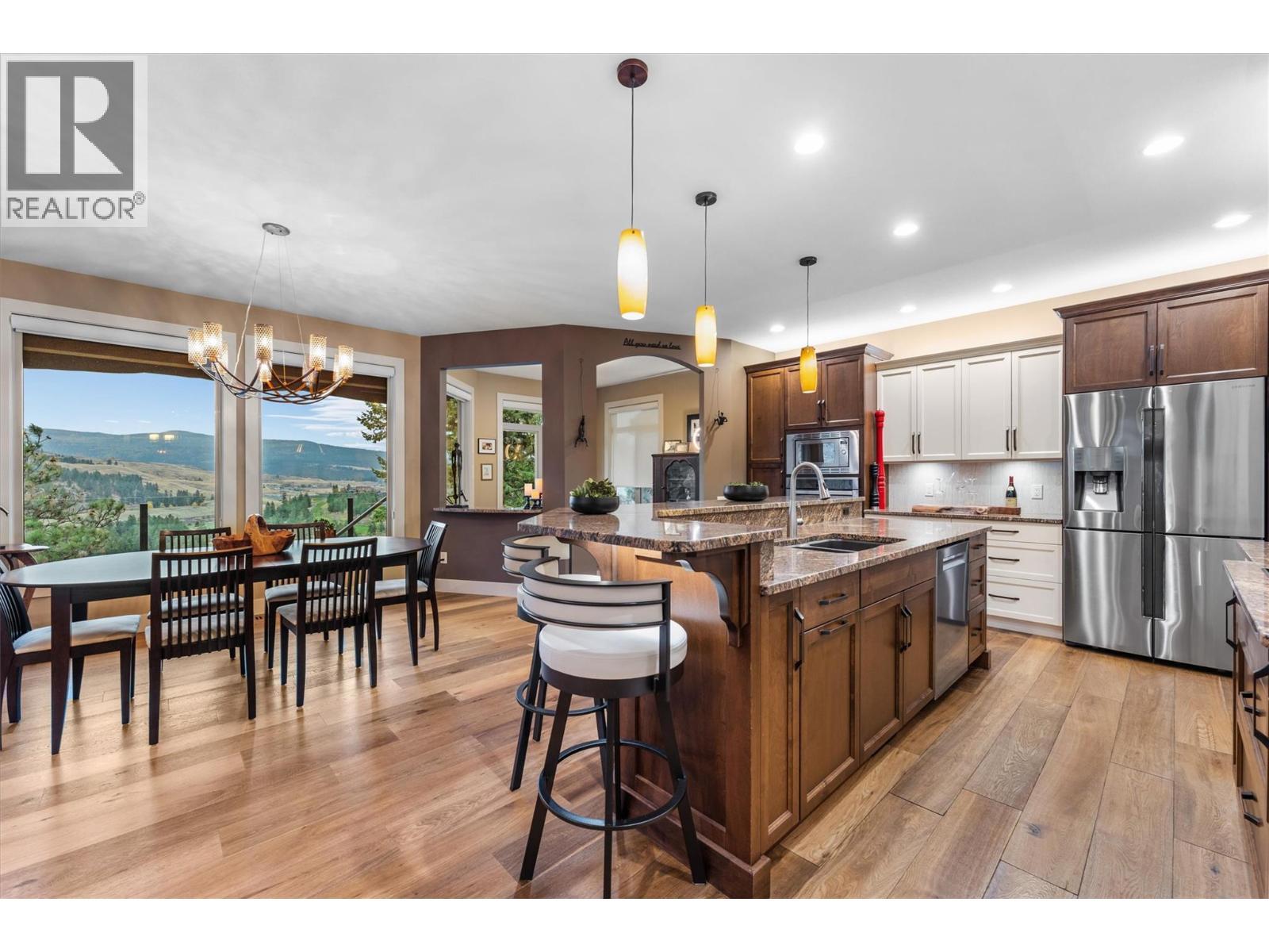 Set in the picturesque golf course community of Black Mountain, this custom residence blends craftsmanship with functionality. The main level features a seamless open-concept layout framed by panoramic views of the valley & the 18th hole. The kitchen offers shaker cabinetry, granite countertops & a large island. A stone-clad fireplace anchors the living area, while the dining space opens to an expansive covered deck complete with an outdoor kitchen, built-in pellet smoker, cooktop, gas heater and granite bar—ideal for year-round entertaining. The primary suite captures tranquil views & includes deck access, a walk-in closet with custom built-ins & a spa-inspired ensuite with heated floors & a freestanding tub. The lower level continues to impress with a recreation room featuring a full wet bar & two guest suites with ensuite access and a flexible third bedroom/office. A stunning 627 sq ft four-season bonus room completes the lower level with retractable glass doors connecting to the outdoors serving as a seamless space for hosting, entertaining & relaxing. Just steps away, a private hot tub beneath a custom wood gazebo with windows creates a relaxing retreat. Additional highlights include an office, a heated oversized garage, low-maintenance landscaping & RV parking with power & water hookups. Set on a premier lot offering exceptional privacy, this distinctive home stands out in Black Mountain, combining spectacular views, thoughtful design & effortless comfort. (id:6769)