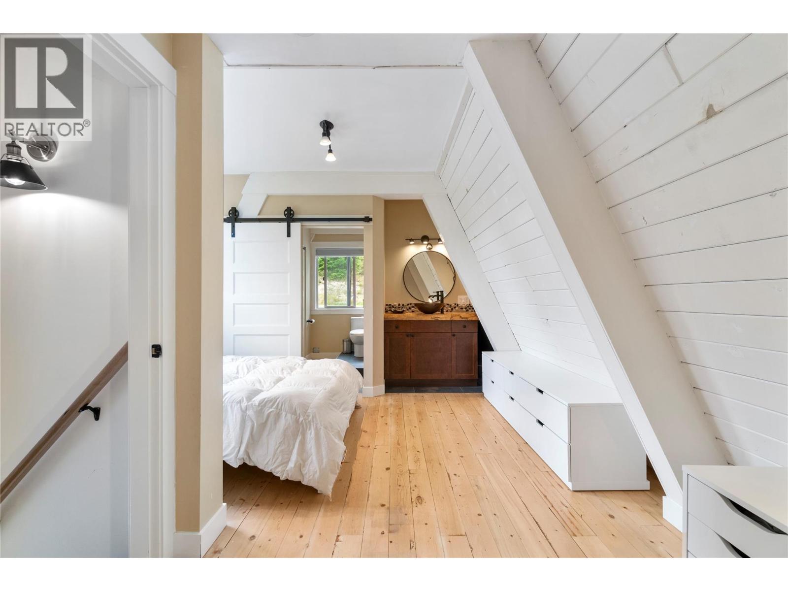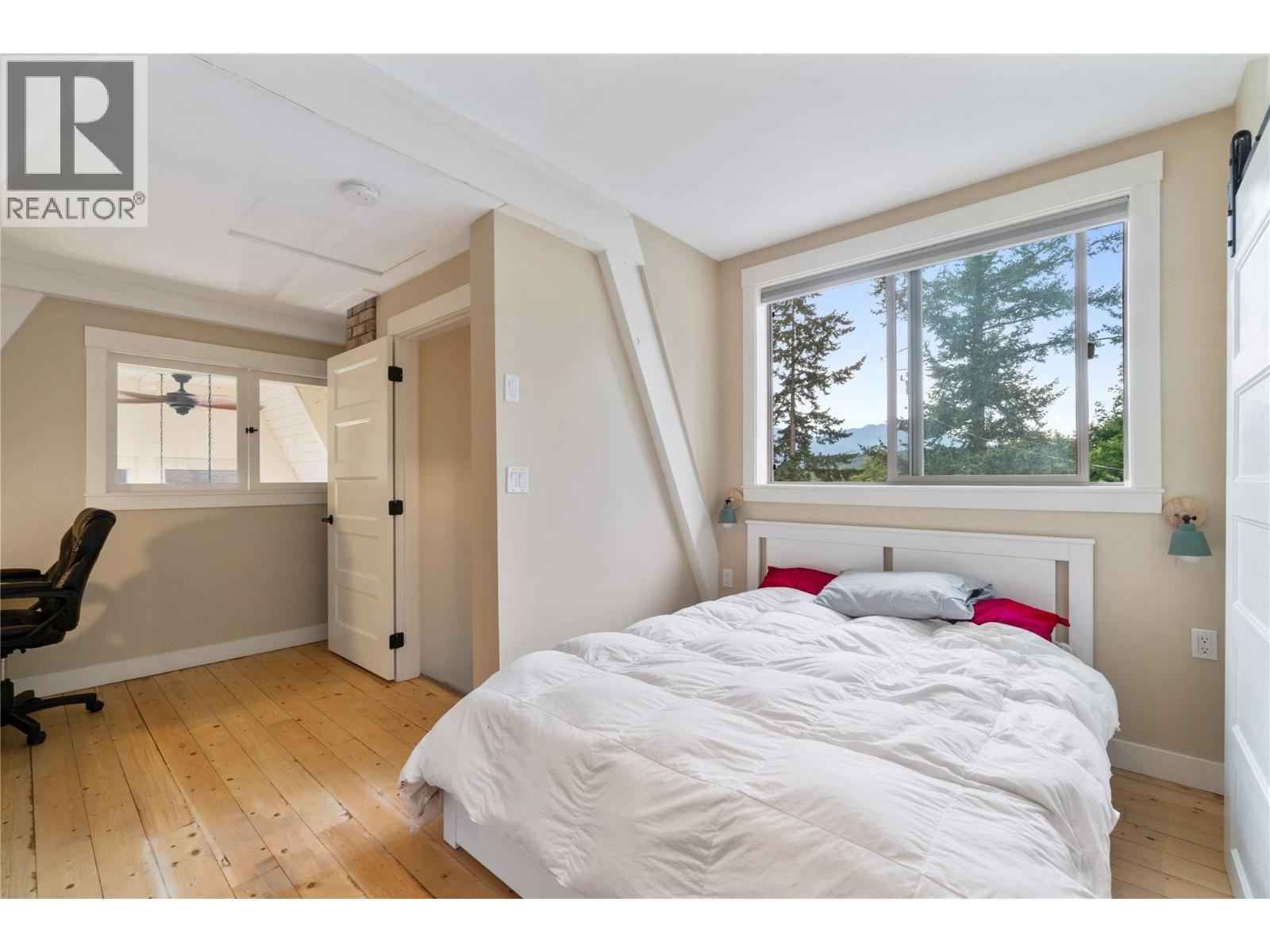 MODERN COMFORT MEETS RUSTIC CHARM – This 4-bedroom A-frame style home sits on nearly 8 acres offering the perfect blend of comfort, space, and views. Enter through a spacious foyer into a beautifully designed kitchen with quartz island, gas stove, two pantries, and a generous dining area ideal for gatherings. The open-concept design flows into a living room with a soaring vaulted ceiling and a wall of windows framing city, lake, and mountain views. A cozy wood stove warms cooler evenings, while sliding doors open to an expansive deck finished with sleek metal railings and steel strands—perfect for entertaining or soaking in the scenery. A 2016 addition added three bedrooms, a large family room, full bath, and a well-appointed laundry with sink and built-ins. Upstairs, the primary suite includes a 3-piece en-suite, while the unfinished partial basement provides ample storage and access to outside. OUTDOORS - unique acreage is ready for “those ponies you’ve been promising the kids,” plus a 15' x 15' guesthouse/studio with loft and bath offers flexible space for a home office, guests or creative pursuits. The older 15' x 22' workshop provides dry storage or a place for projects. A stamped concrete patio with firepit and a generous garden complete the setting. This is a unique opportunity to enjoy modern comfort, rustic charm, and acreage living—all in one. (id:6769)