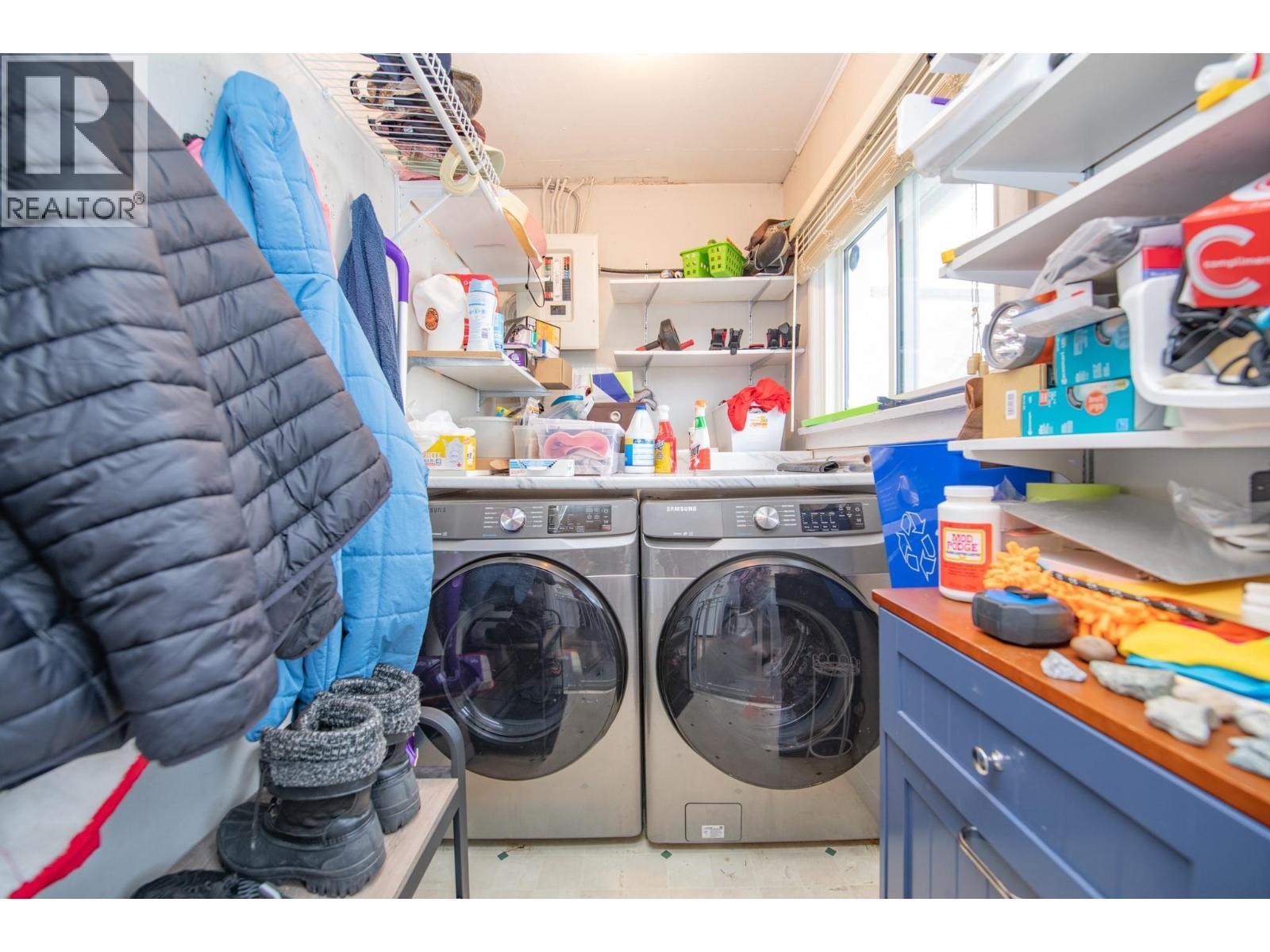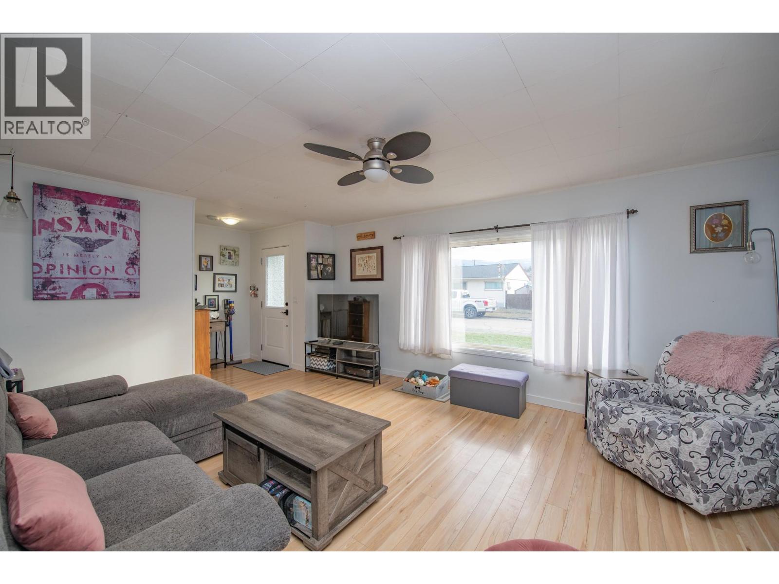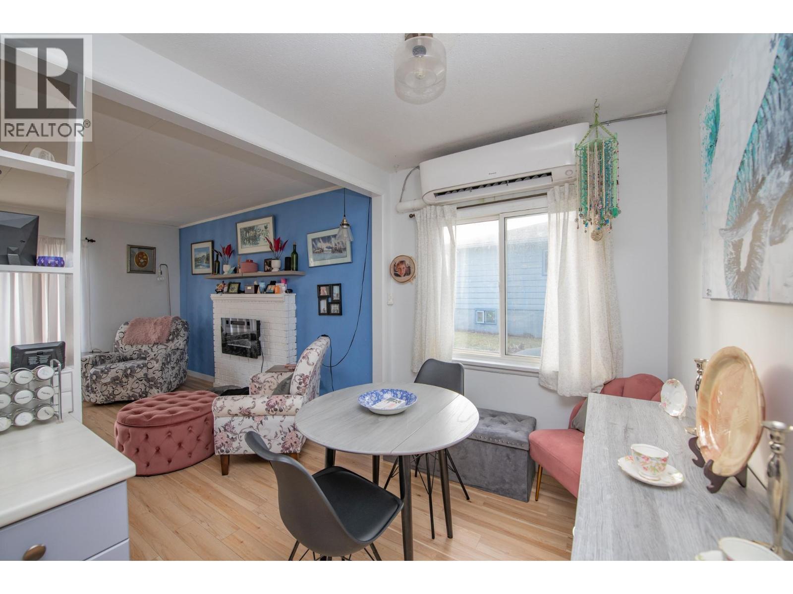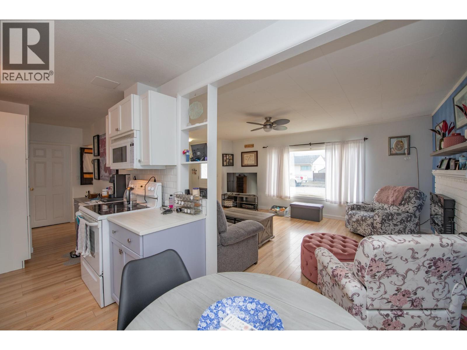 Charming, move-in ready home on a large, private lot — perfect for first-time buyers, downsizers, or investors. A welcoming entry that leads into a cozy living room featuring a large picture window and inviting electric fireplace. The bright kitchen nook flows seamlessly into a stylishly updated kitchen complete with refreshed cabinetry, modern countertops, and a crisp white tile backsplash that adds a fresh, contemporary touch. The functional layout includes a spacious laundry room with side-by-side washer and dryer plus additional pantry storage. The primary bedroom offers ample closet space, while a second bedroom provides flexibility for guests, family, or a home office. A full bathroom with tub/shower completes the interior. Outside, escape to your fully enclosed and private backyard — a rare find with a large, flat lot that has been thoughtfully landscaped for low-maintenance living with artificial turf and rock. The generous patio area is ideal for entertaining, relaxing, or enjoying summer evenings. A detached wired shop provides excellent storage or workspace options, and with lane access behind a secure fence, there’s plenty of room to park your RV, boat, or recreational toys. Extensive updates mean you can simply move in and enjoy, including Hardy board siding, a 2022 roof, new hot water tank, updated laminate flooring, refreshed kitchen, and backyard improvements. A fantastic opportunity offering privacy, functionality, and value — all in one charming package. (id:6769)