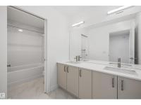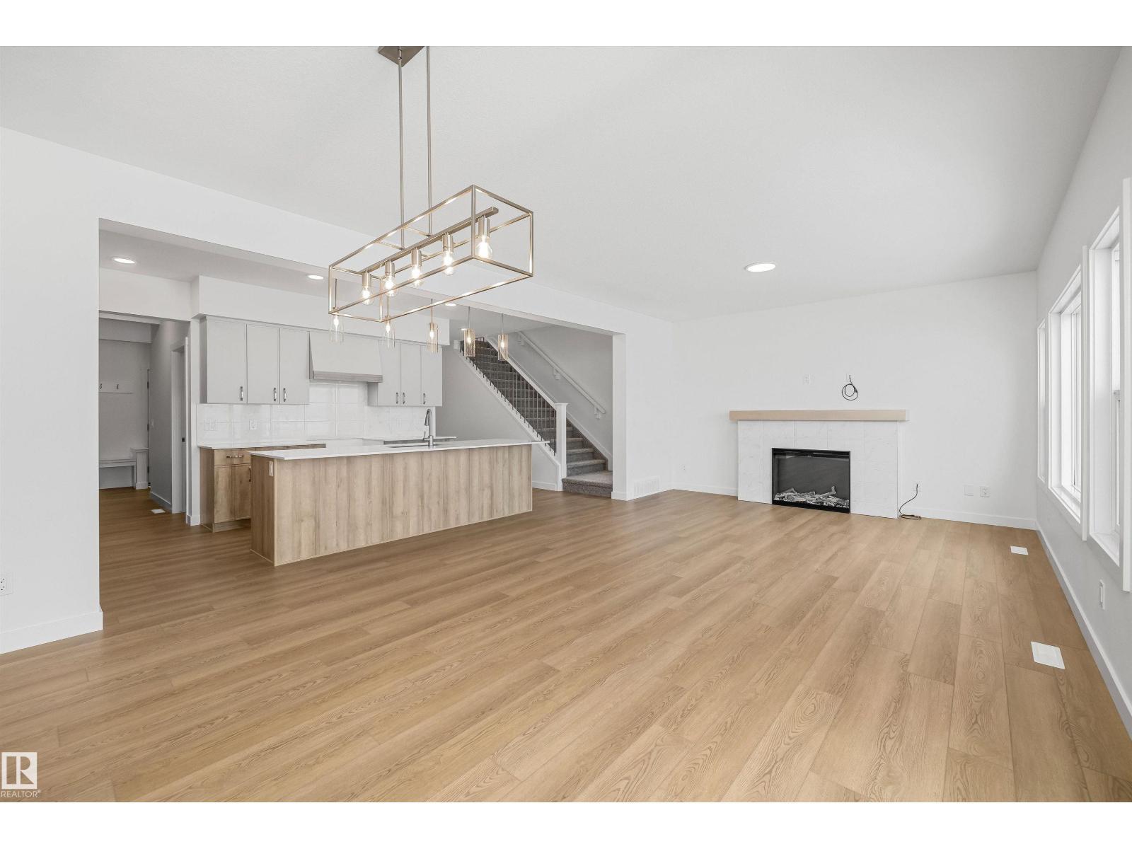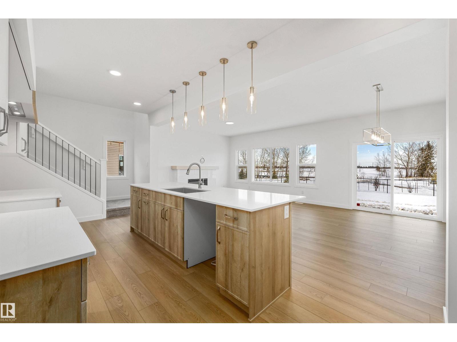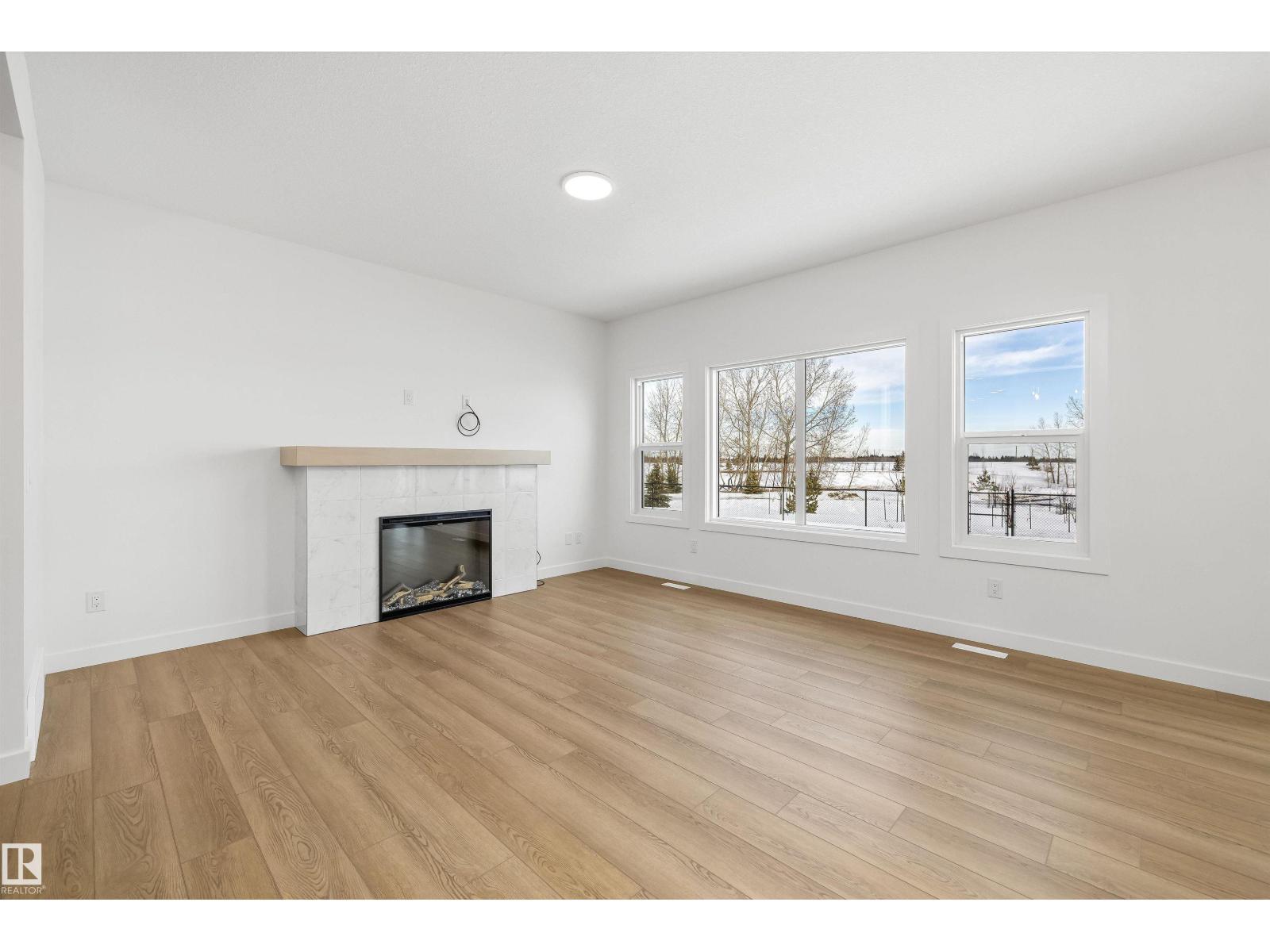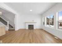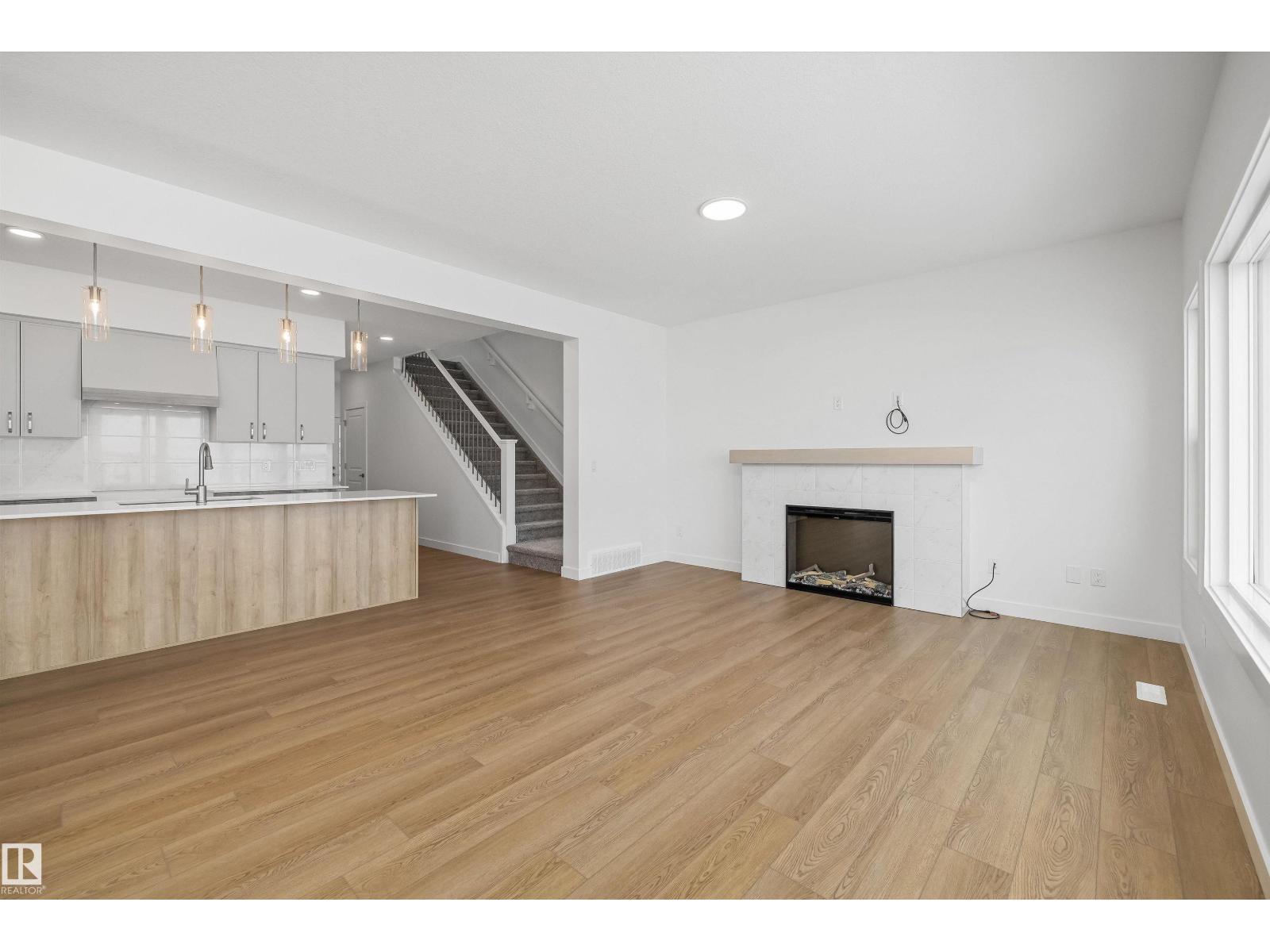 Built by Sterling Homes, this beautifully finished home in Sienna blends style and thoughtful design in a welcoming Fort Saskatchewan community. Triple pane windows and 9 ft ceilings brighten the main floor. The kitchen shines with quartz countertops, a large island, upgraded cabinetry with deep drawers and pull outs, custom hood fan, and a walk in butler’s pantry with sink and bar fridge space. The open layout features a tiled fireplace and oversized windows overlooking the yard. Upstairs offers a bonus room, 5 piece ensuite with freestanding tub, glass shower, walk in closet with laundry access, two bedrooms, double attached garage with drain, side entrance, LVP flooring, and basement rough ins. (id:6769)