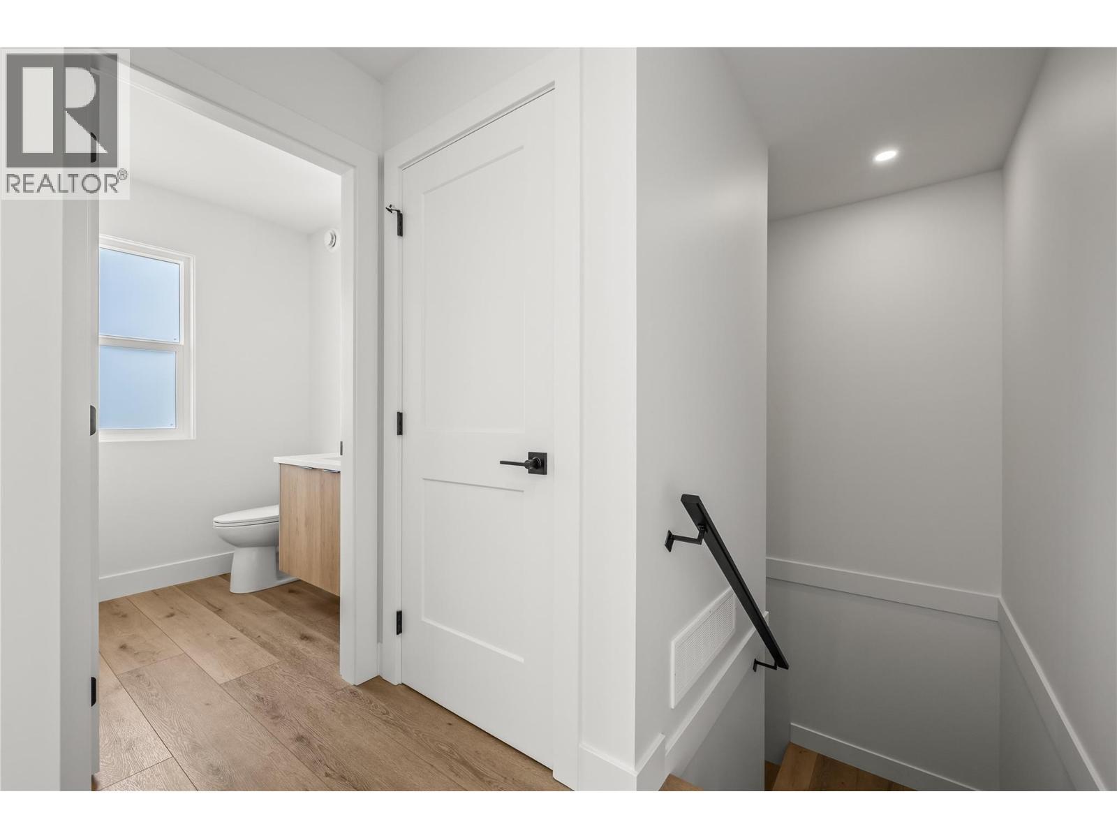 LUXURY LIVING IN THE HEART OF KELOWNA! This beautifully appointed 3-bedroom, 4-bathroom townhouse showcases refined finishes, smart design, and unbeatable walkability. The bright, open-concept main floor is anchored by a chef-inspired kitchen featuring an oversized island with seating, a generous corner pantry, and effortless flow into the dining area and welcoming great room, complete with a cozy natural gas fireplace. Upstairs, the serene primary retreat offers a walk-in closet and a spa-calibre ensuite with a double vanity, freestanding soaker tub, and glass-enclosed walk-in shower. Two additional bedrooms, a full bathroom with dual sinks, and a thoughtfully designed laundry room — equipped with a brand-new LG washer and dryer, folding counter, utility sink, and ample linen storage — provide both comfort and practicality. At the top, a showstopping loft-style recreation room awaits, highlighted by soaring vaulted ceilings, a sleek wet bar, and sliding doors leading to an expansive rooftop patio — the ultimate space for entertaining, relaxing in the sun, or designing your own private hot tub retreat. Located just two blocks from Kinsmen Beach and mere steps to the boutiques, cafes, and amenities of Pandosy Village — with Kelowna General Hospital, parks, and schools nearby — this home delivers modern sophistication in one of the city’s most desirable neighbourhoods. Experience Okanagan living at its best. (id:6769)