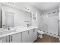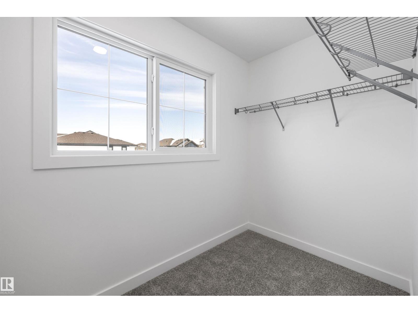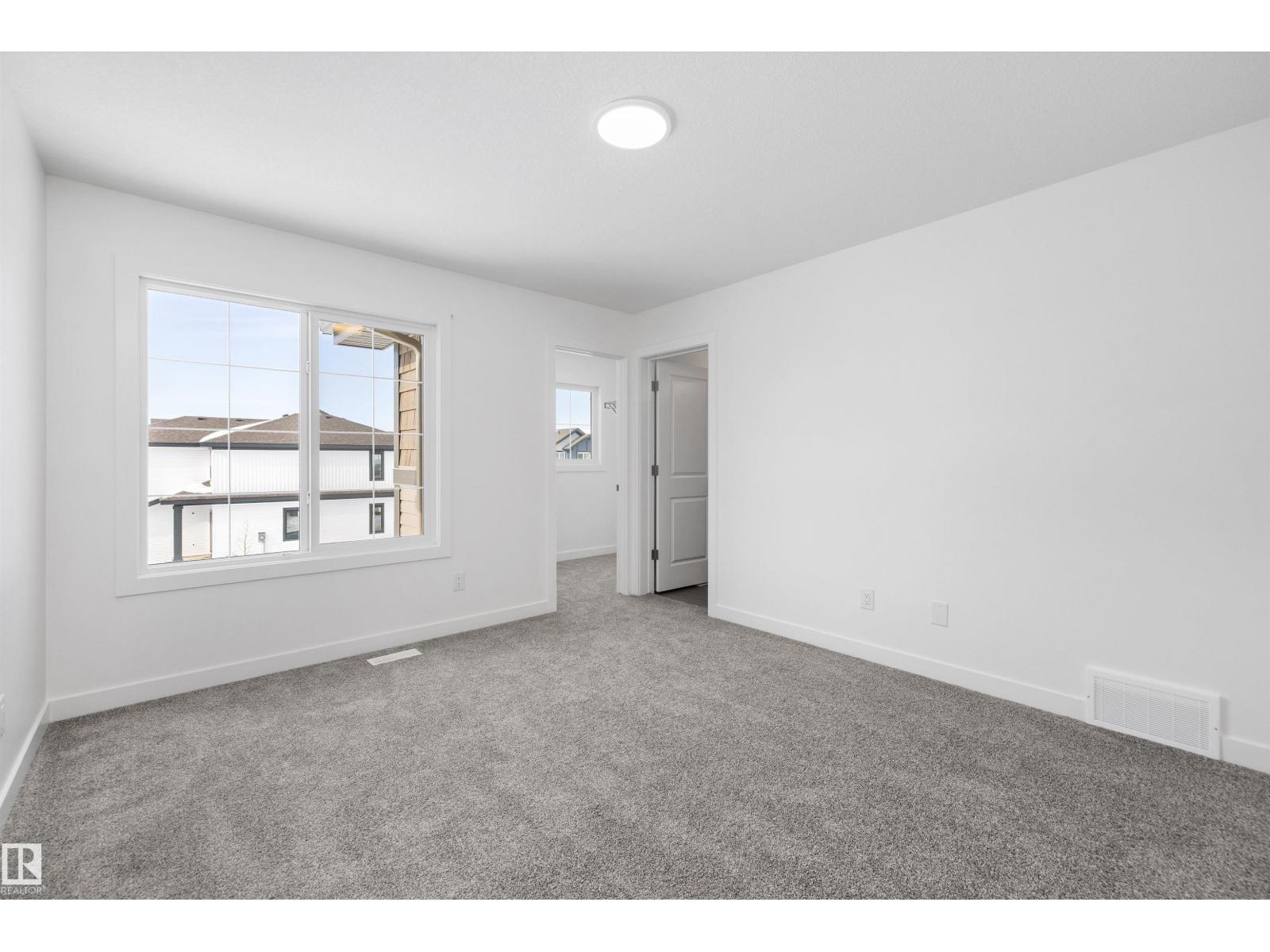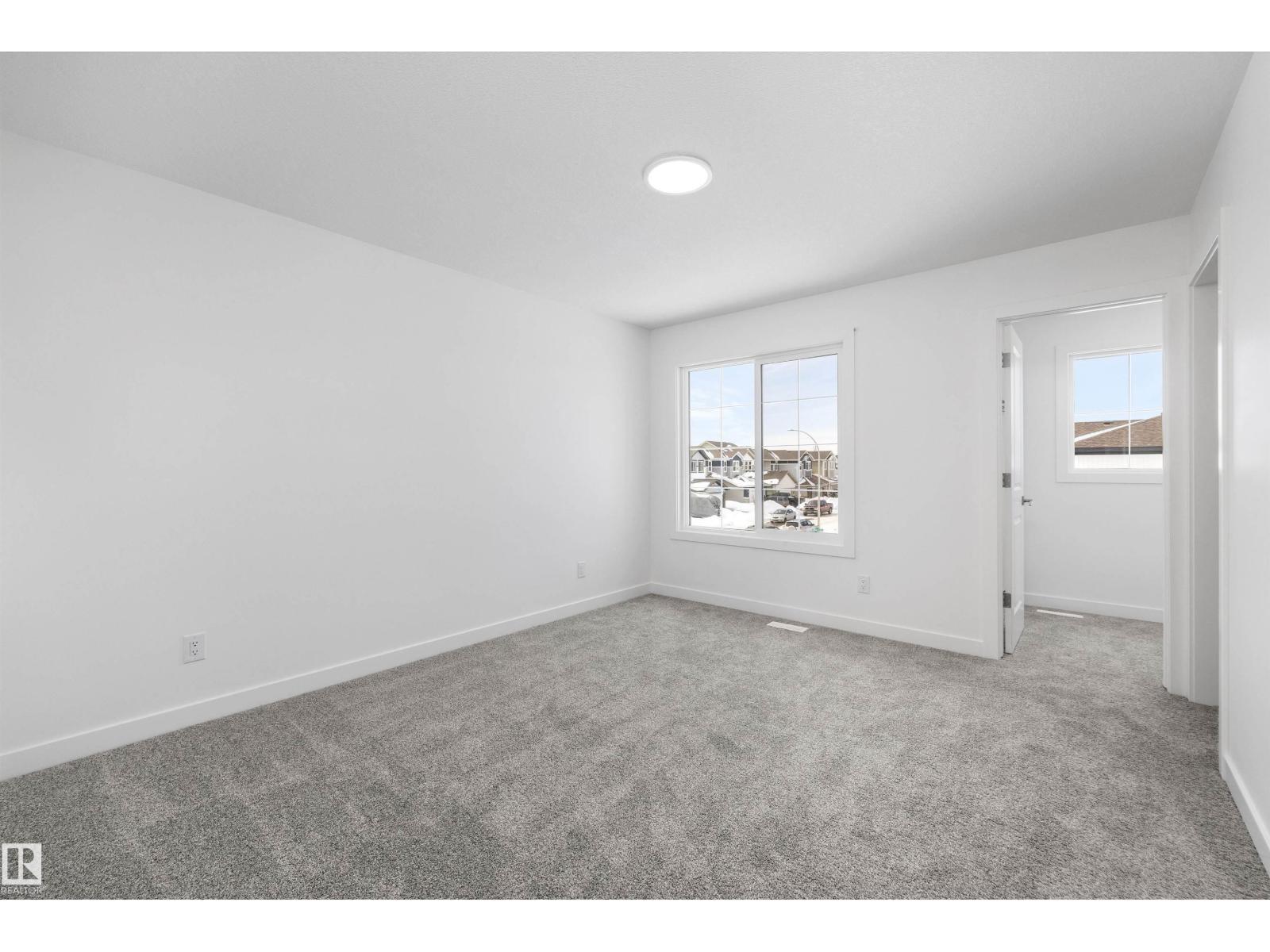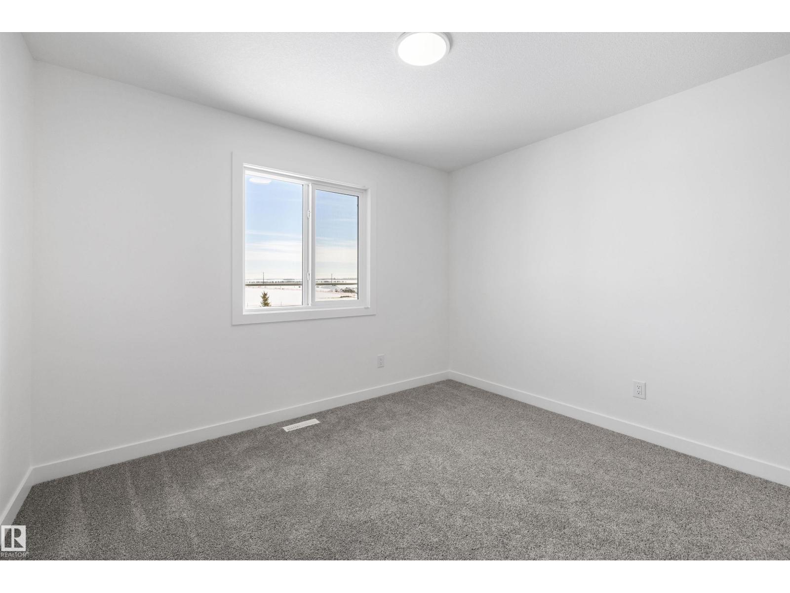 Built by Sterling Homes, this front-attached home in Sienna offers bright, modern living in a family-focused community with parks, walking paths, and nearby amenities. Triple pane windows and 9’ ceilings create an open feel on the main floor, where a welcoming foyer leads to a spacious great room with an electric fireplace. The kitchen features quartz countertops, a large island with seating, upgraded cabinetry, chimney-style hood fan, built-in microwave, and a corner pantry. Large rear windows and a garden door bring in natural light, and a half bath completes the level. Upstairs, the primary suite includes a walk-in closet with a window and a 4-piece ensuite with double sinks and glass-door shower. A central bonus room, two bedrooms, full bath, and upper-floor laundry add everyday comfort. Luxury vinyl plank flooring, upgraded railings, side entrance, oversized double attached garage with floor drain, and basement rough-ins complete this Fort Saskatchewan home. (id:6769)