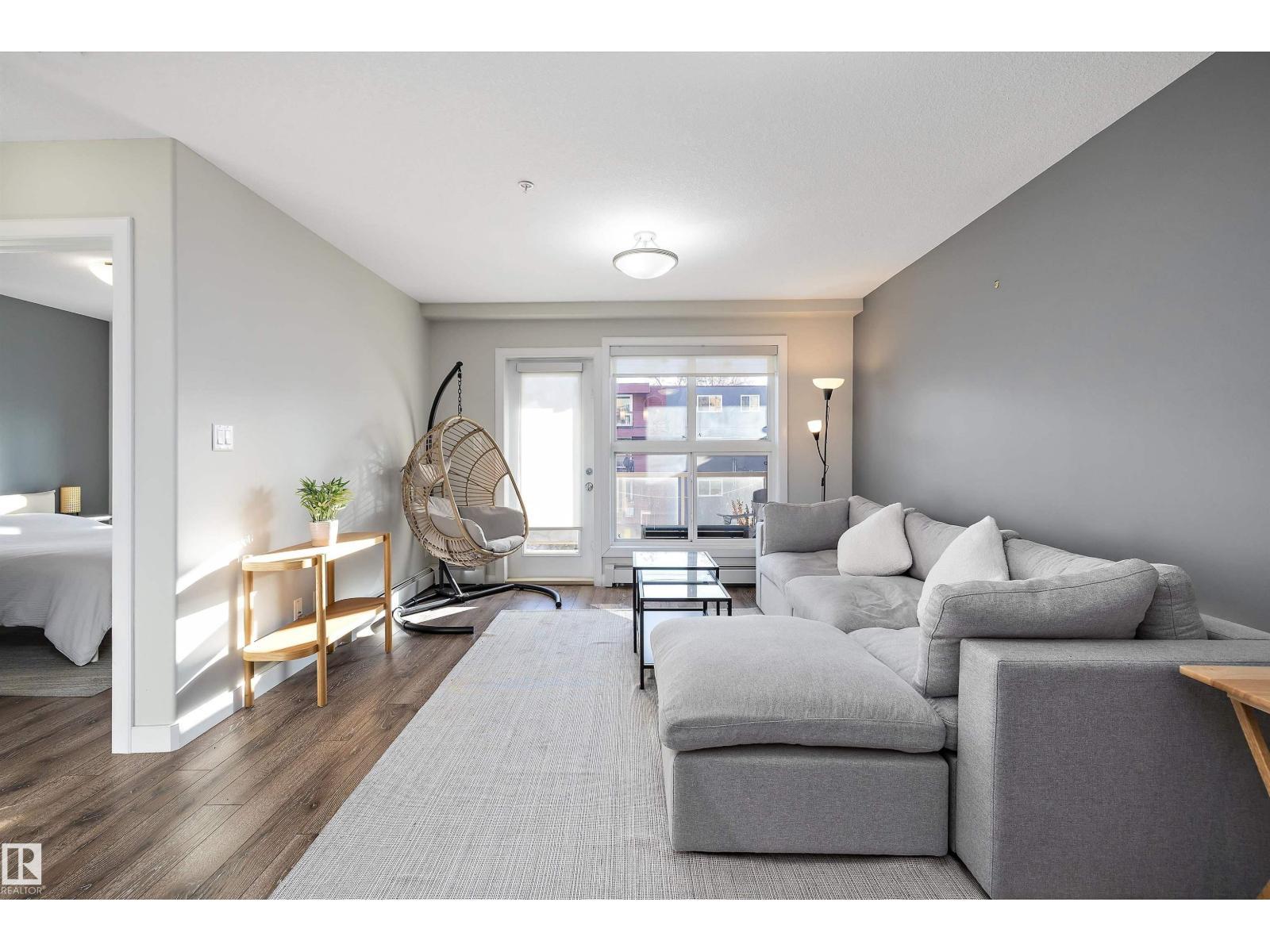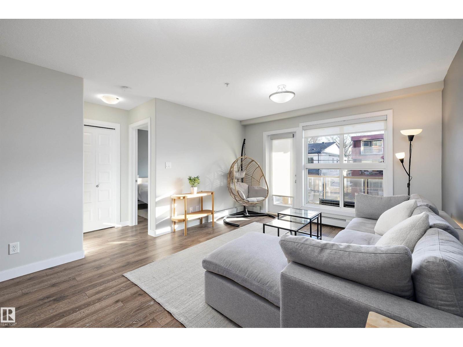 Immaculate 1 bedroom, 1 bathroom second-floor condo in a well-maintained low-rise building, offering upscale finishes and exceptional natural light throughout. This south-facing unit features a bright open-concept layout, large windows, and a private balcony ideal for enjoying sunny afternoons. The spacious primary bedroom also enjoys full south exposure and generous closet space. Modern finishes include a sleek kitchen with stainless steel appliances, quartz countertops, in-suite laundry, and a well-appointed 4-piece bathroom. Included is a titled, heated underground parking stall with storage cage, along with access to a car wash bay and rooftop patio. Ideally located near public transit, Whyte Avenue, cafes, shopping, and with direct access to Downtown and the University of Alberta; an excellent opportunity for professionals, students, or investors seeking quality and convenience. (id:6769)
