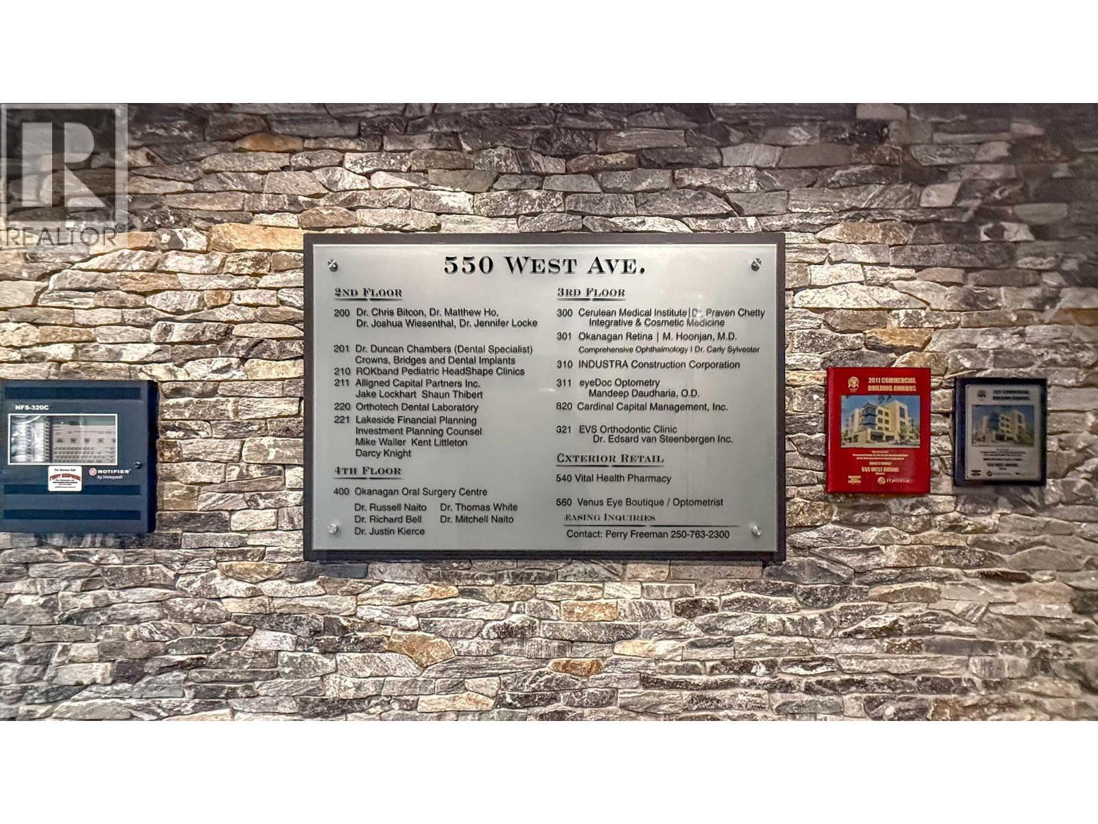 Outstanding opportunity to lease +/- 600 SF of professional office space in the heart of the South Pandosy corridor. Turn-key, 2nd floor office space with modern improvements. Ideal smaller office space features reception/office area, open work area, boardroom, and a private office. Twin elevator access, wide hallways, and common washrooms located close by. 550 West is a meticulously clean building shared by a variety of professions such as doctors, dentists, financial planners & more. One unreserved parking stall available with unit. Highly desirable location near abundant amenities and walking distance to Kelowna General Hospital and Mission Park Shopping Centre. Available for immediate occupancy. (id:6769)