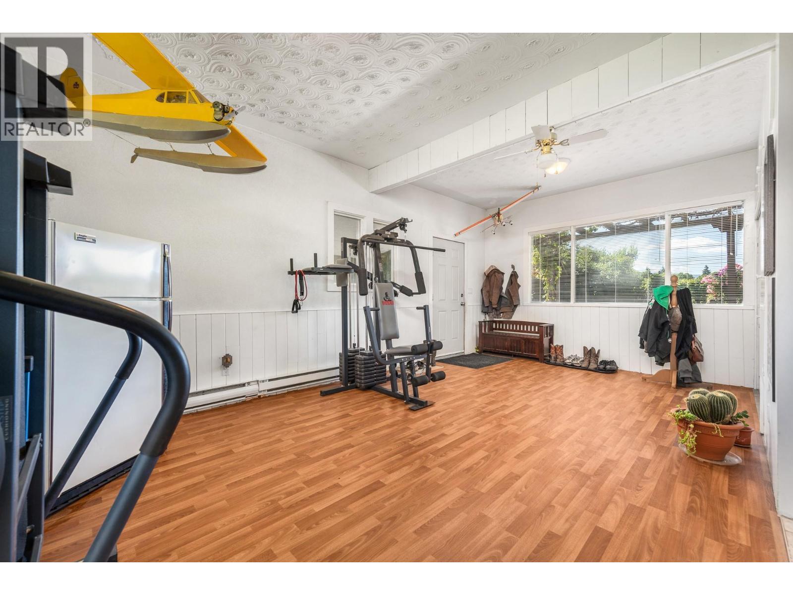 This 3.77-acre property is a dream for hobbyists, entrepreneurs, and those seeking a blend of business potential and country living. The 34’ x31’ heated shop is fully equipped with natural gas heating, 14-ft ceilings, dual 12-ft doors, 220-amp service, a concrete floor with a drain, and a built-in air compressor, plus a separate entrance and ample level parking, making it ideal for a workshop, storage, or small business. The land has also supported a successful farm gate sales business with large, irrigated gardens. Fully fenced and cross-fenced, it’s ready for livestock with a two-stall barn, automatic waterer, riding arena, and multiple paddocks. Property backs directly onto the Grey Canal Trail which opens the opportunity to walk your dog, ride your bike or trail ride your horse right from your home! The charming country home is bright and welcoming, featuring a cozy living room with a floor-to-ceiling wood-burning fireplace, a formal dining room, and a country kitchen, with two bedrooms on the main floor and a private primary upstairs. Enjoy outdoor living with a spacious patio, hot tub, and firepit area, perfect for relaxing after a productive day. Located just minutes from Vernon, this property is packed with possibilities—whether for work, play, or both! (id:6769)
