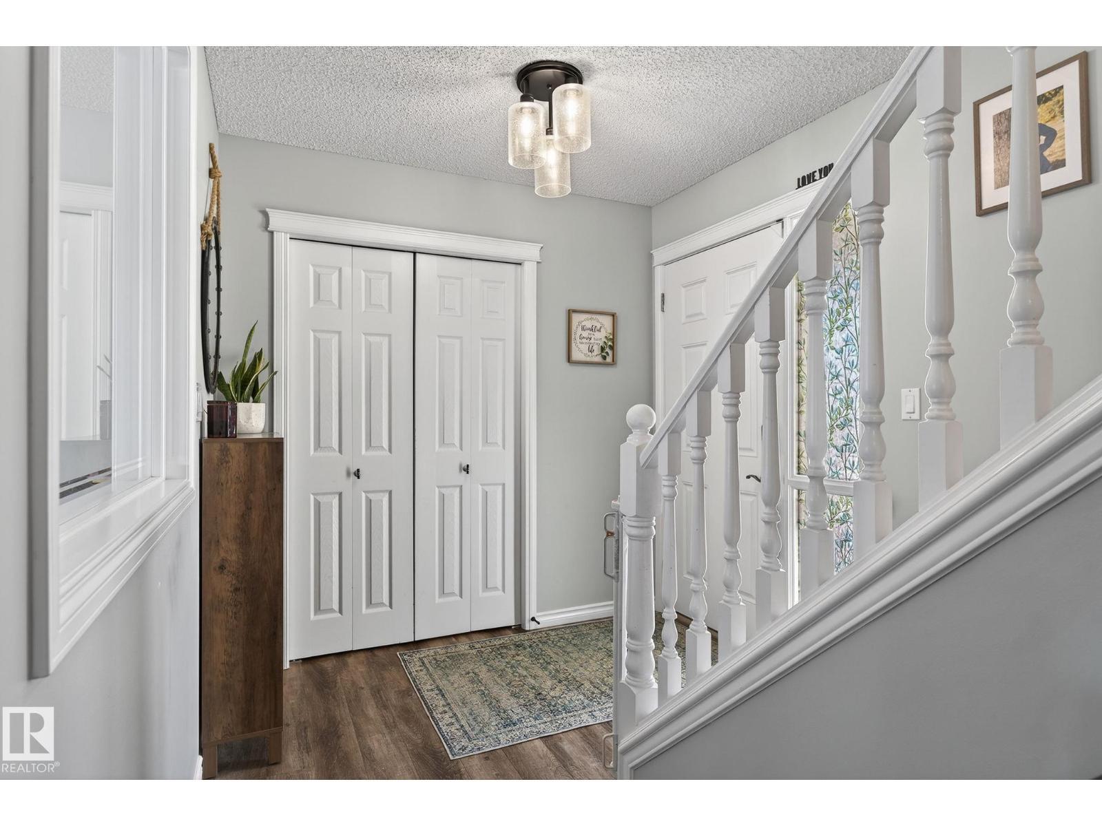 Amazing value in an unbeatable location! Tucked away on a quiet crescent with beautiful views of Pryce Alderson Park, this fully renovated home shines from top to bottom. Recent upgrades include a stunning new kitchen, updated bathrooms, vinyl plank flooring, fresh paint, automated blinds, outdoor LED lighting, mudroom, sleek black stainless appliances and more. The main floor offers a bright open-concept layout perfect for family living, while upstairs features a spacious bonus room with vaulted ceilings, 3 bedrooms including a large primary with spacious ensuite and the comfort of A/C throughout. This prime Fort Saskatchewan location is hard to beat — walk to schools, trails, and the spray park just across the greenspace. Spend summer evenings relaxing on your deck overlooking the park and enjoying the peaceful surroundings. (id:6769)