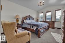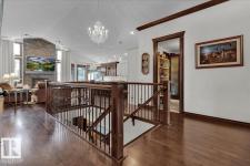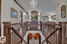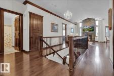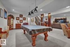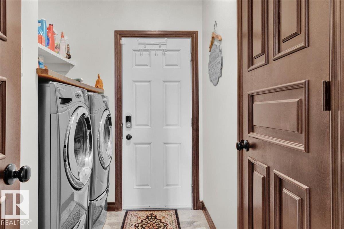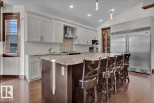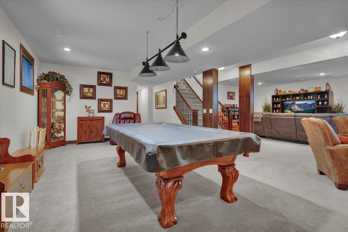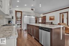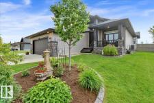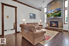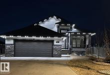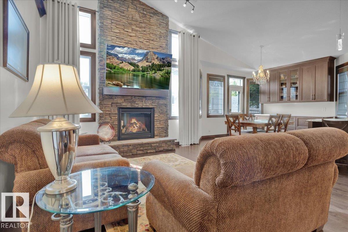 Bungalow in prestigious Southfort Estates with over 3,500 sq ft of beautifully finished living space on a fully landscaped estate lot. You’re welcomed by soaring 13' vaulted ceilings, 8’ solid doors, rich dark maple hardwood, and a stunning floor-to-ceiling stone fireplace. The chef-inspired kitchen features granite countertops, expanded custom cabinetry, Frigidaire fridge/freezer, gas stove, oversized island, and a spacious walk-through pantry. The main level includes two generous bedrooms (primary with a luxurious 5pc ensuite and walk-in closet), front den, main floor laundry, and a 4pc bath. The fully finished basement offers a large rec/family room, custom built-in dry bar, two additional bedrooms, and a 3pc bath. Exterior highlights include a double attached AND a double detached garage, composite deck, flagstone patio, new exterior doors, LeafFilter gutters, permanent gemstone LED lighting, and concrete side drive. (id:6769)