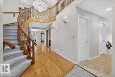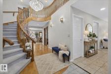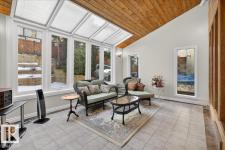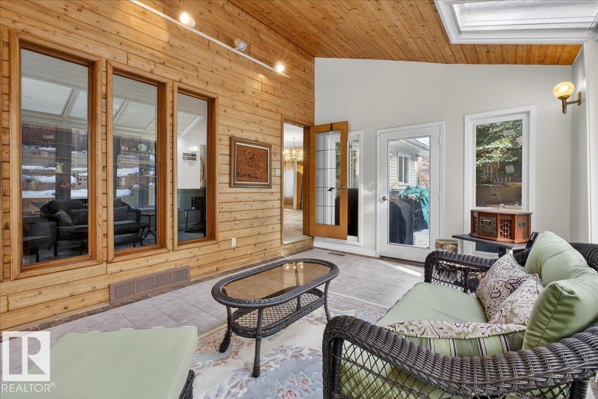 Experience refined living in Rhatigan Ridge, one of Edmonton’s safest and most established communities. This solid 3,638 sq. ft. home sits on a massive lot with a south-facing backyard backing directly onto the ravine, offering sun-drenched privacy and immediate access to scenic walking trails. Located on a quiet street with local traffic only, it provides an exceptional and secure setting for families. The main floor is designed for grand-scale entertaining, featuring a formal living room, dining, an expansive granite kitchen, and a family room with a fireplace. The highlight is the four-season sunroom, positioned to capture southern sun and ravine views year-round. The upper level offers a rare layout featuring 4 spacious bedrooms, a large family bonus room, and a second den—which, combined with the main floor office, provides two dedicated workspaces. With top-rated schools, a triple car garage, and updates like a newer roof, windows, and furnaces, this home is a premier opportunity. (id:6769)