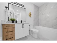 Welcome to this Brand New Single Family home located in the growing community of Crystal Creek, Leduc. This beautifully upgraded home offers 4 bedrooms and 3 full bathrooms, including a convenient MAIN FLOOR BEDROOM & BATH, perfect for guests or extended family. The main level features an impressive extended kitchen with 3 cm quartz countertops, ample MDF shelving & a full SPICE KITCHEN for added convenience. Enjoy the bright and open OPEN-TO-ABOVE living room, upgraded lighting package, spacious mudroom, and modern glass railing. Upstairs offers a comfortable bonus room, two additional bedrooms, a spacious primary suite, and upper-level laundry. Additional features include a SEPARATE SIDE ENTRANCE to the unfinished basement, 200 AMP service, EV rough-ins, MDF shelving throughout, a DOUBLE ATTACHED GARAGE, and close proximity to shopping, parks, and major amenities. Photos are for a similar property with same layout and Interior selections. Home is Under construction & Estimated completion in March end!! (id:6769)