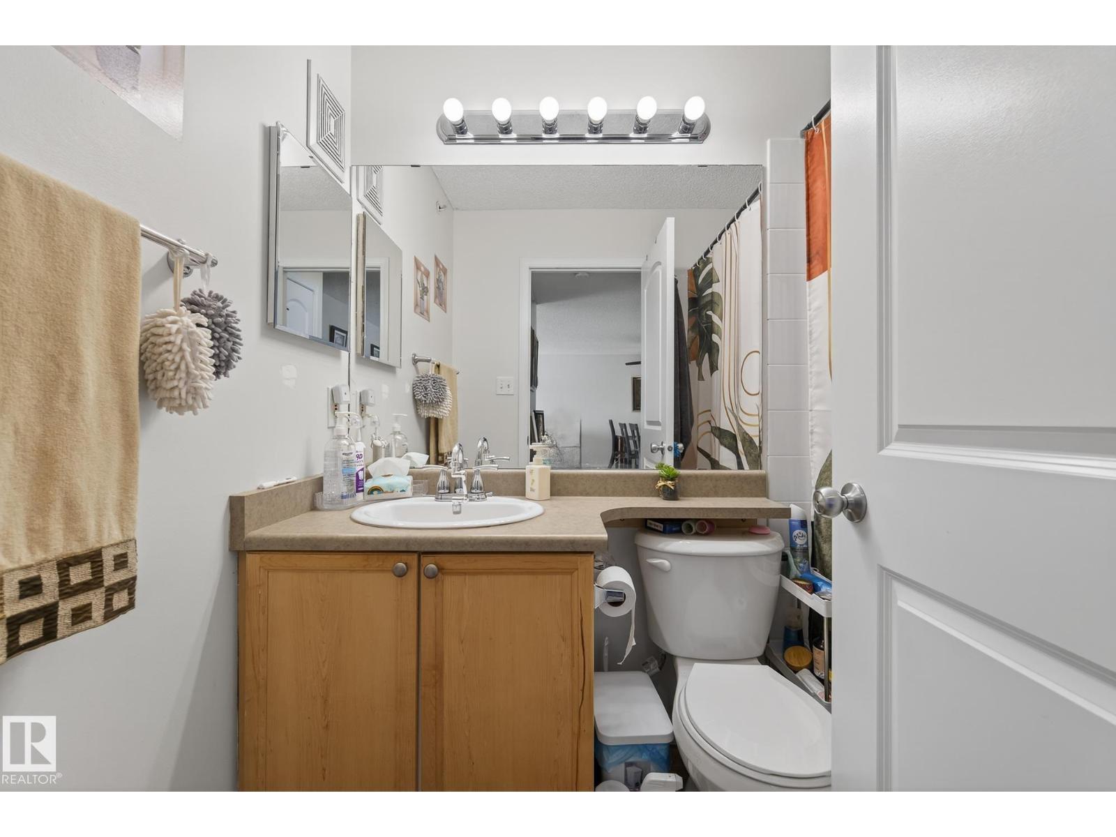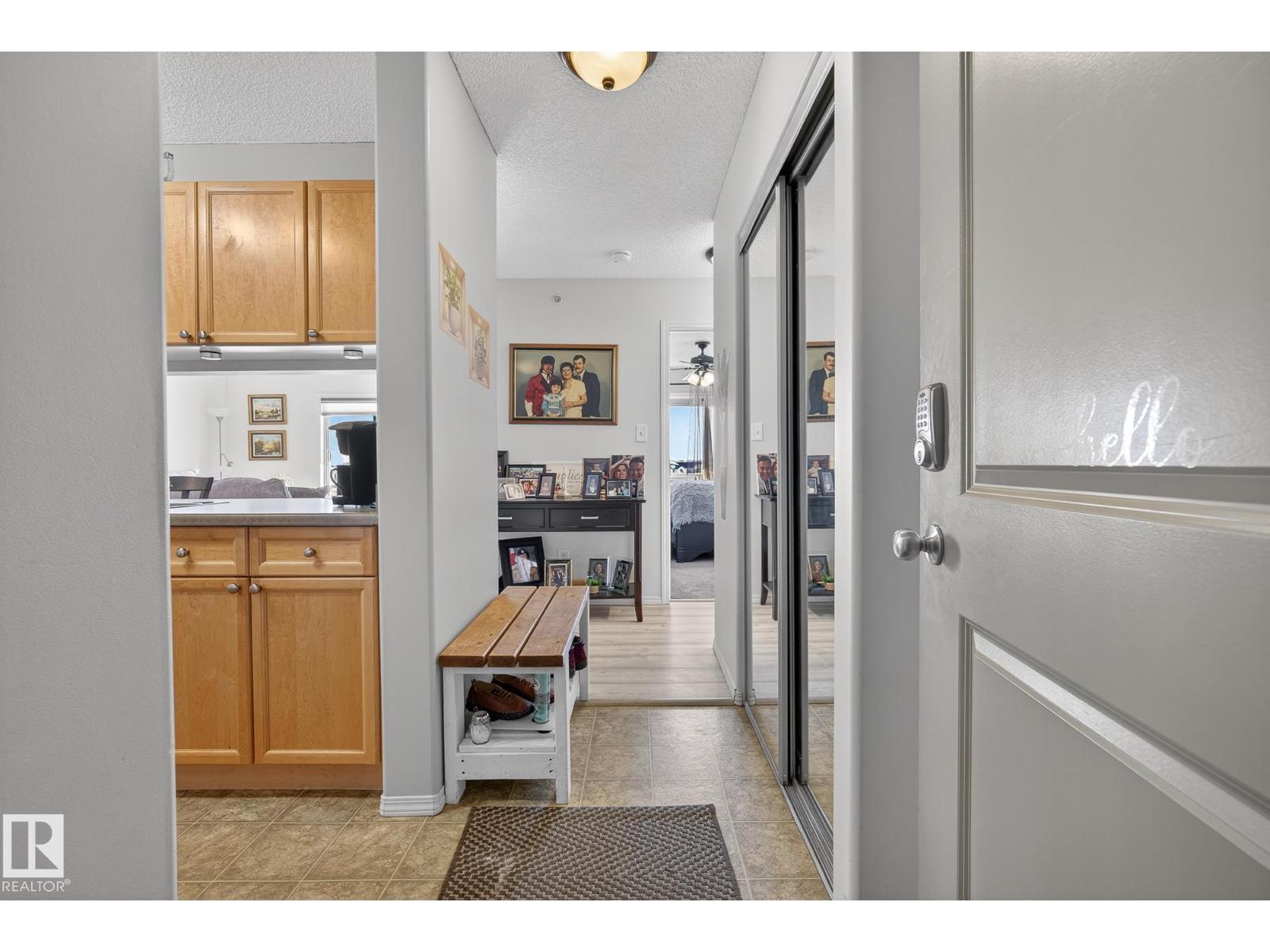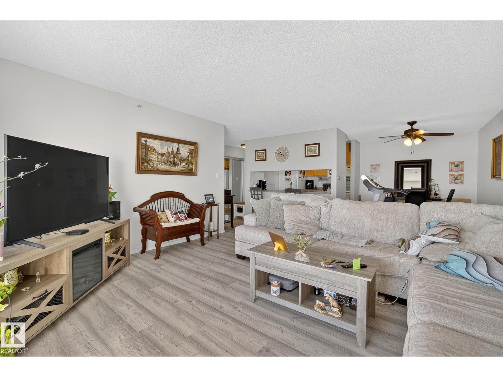 Welcome to top floor living at its best! Featuring 1 bedroom and 1 bathroom this unit is well sized at 751 sq ft. It holds a galley style kitchen with lots of cupboard space, and fills up with morning sunlight from the east facing balcony windows and patio door. With a LARGE living room and ample dedicated dining space this apartment truly feels like a home. New vinyl plank has been professionally laid down throughout. This unit features in suite laundry with a new washer and dryer that have been installed and are held in a large storage room. Included in the condo fees, is access to the fitness center across the parking lot in building 50! This property is in great proximity to Sherwood Park via highway access and has great walkability to public transportation within the city. (id:6769)