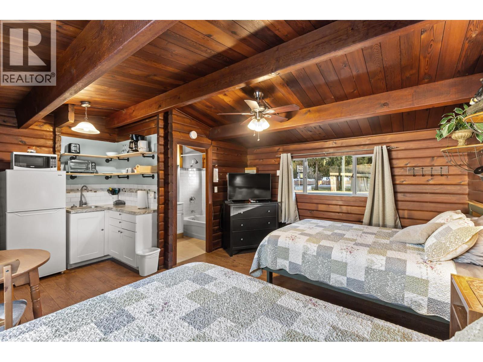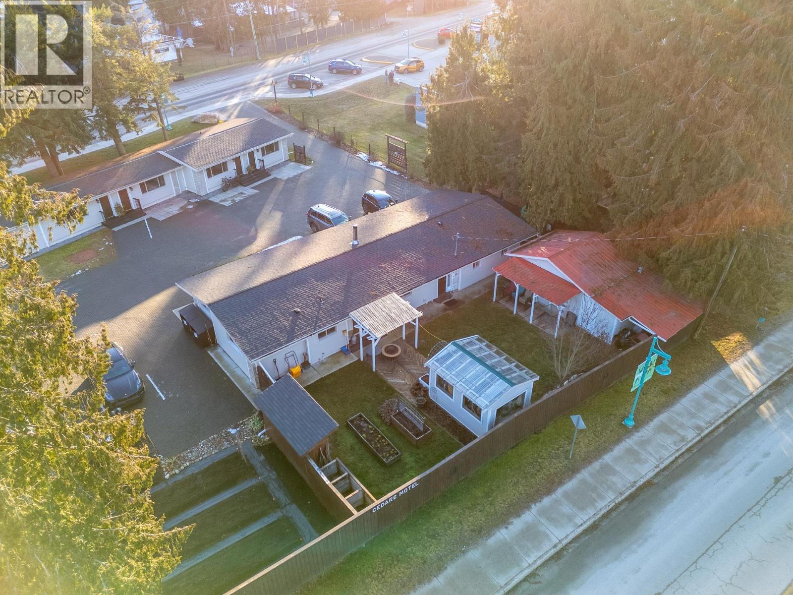 Exceptional turnkey motel investment opportunity, located in in the heart of Sicamous just two blocks from Shuswap Lake, this eight unit motel combines classic charm with modern updates and excellent rental income potential. The property features two separate buildings, including a caretaker suite, offering flexibility and convenience for both operators and guests. Units are thoughtfully designed with queen beds, pullout couches, Roku TVs, cable, window AC units, and kitchens or partial kitchens. Units 5–7 include full kitchens for guests seeking extended stays, while the caretaker suite boasts two bedrooms, a full bath with a double vanity, and a wood-burning stove for cozy comfort. Fully Renovated & Operational-Ready. Built in 1963 and upgraded extensively since 2022, the property features new wall insulation, hot water tanks servicing two units each, newer roofs (2021 & 2023), and Hardie exterior siding. Electrical and plumbing systems have been professionally reviewed and updated as needed. Guests enjoy city water and sewer service, while RV travelers have access to a connected sani-dump. Outdoor spaces include 20 uncovered parking stalls, a detached shed, and a greenhouse-like structure. Investment Highlights: The motel currently operates without a website, relying on phone bookings, creating room for growth in digital marketing and online reservations. High season runs June 15 – September 15, with a mix of short-term and a few informal long-term rentals. The business license and all operational contacts transfer with sale, making this a true turnkey opportunity. A caretaker is currently employed and would likely continue, ensuring smooth operations from day one. GST is applicable. (id:6769)