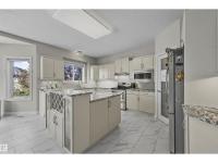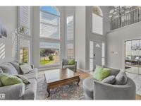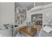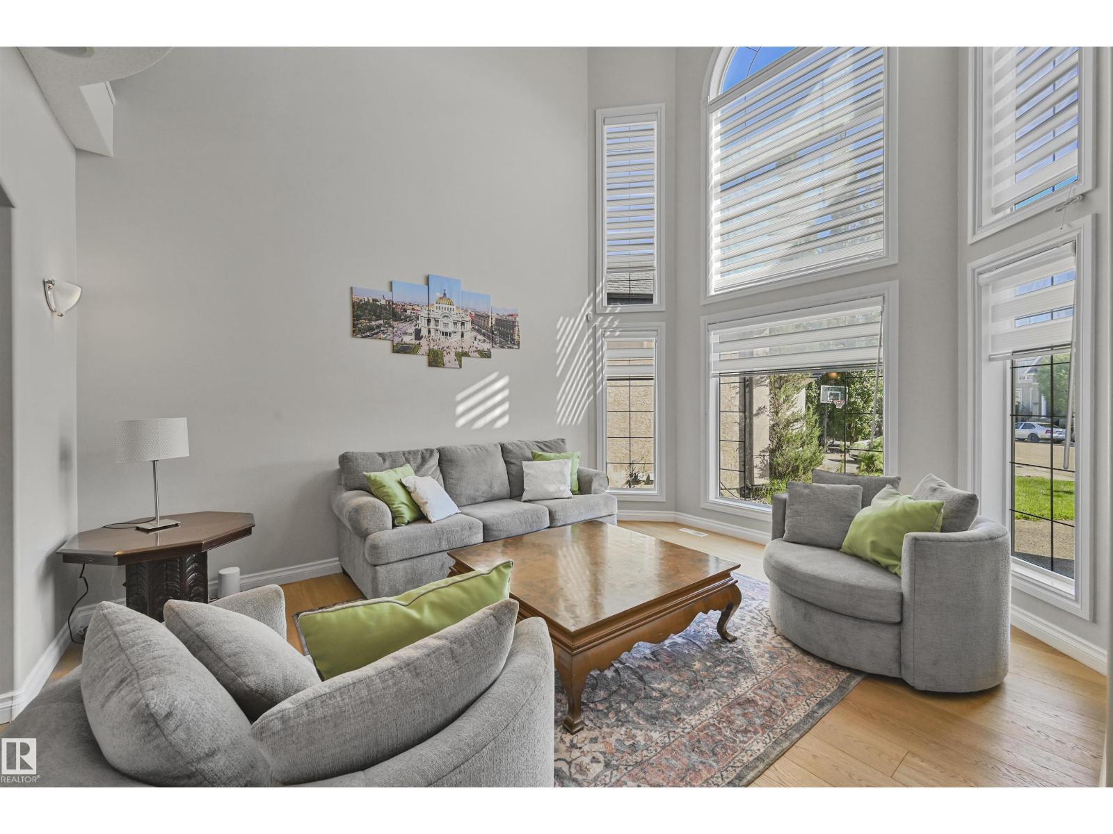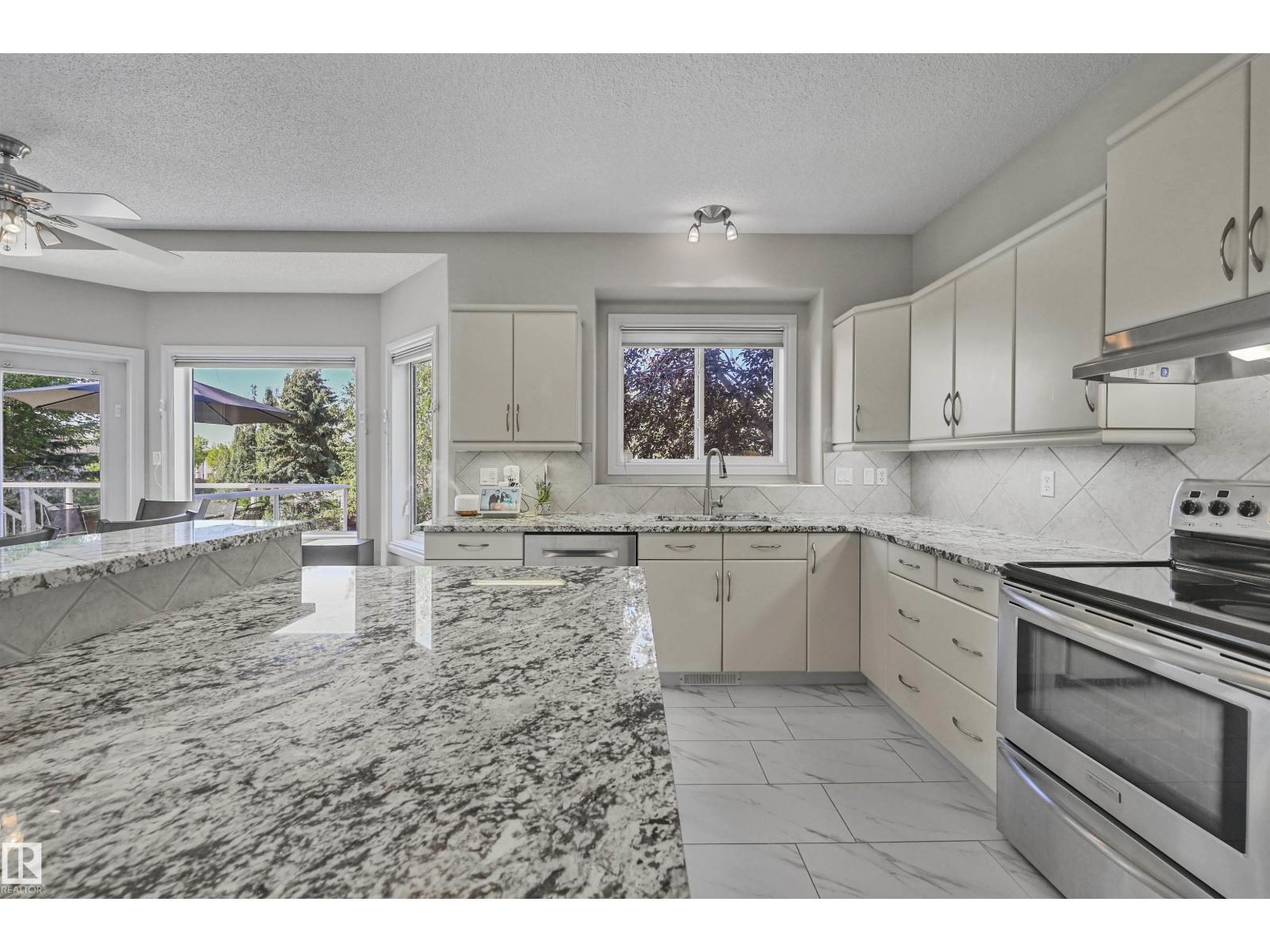WALKOUT in Terwillegar Gardens w/ 5 BEDROOMS, built by Hillview, cul-de-sac location & close to all amenities. Open concept plan has streams of natural light through the soaring, oversized windows. Enjoy a grand entry w/curved stairs & high ceilings. Neutral contemporary color tones too. MAIN FLR BDRM/DEN w/a FULL BATHRM. Sleek bone white slab cabinets & a huge island. Newer S/S fridge & D/W. Nook opens to the family rm w/wetbar & a massive upper deck w/glass railings. Formal dining & living rm. Upstairs has FIVE LARGE BDRMS. Primary suite boasts a beautiful ensuite, fireplace & W/I closet. F/Fin WALKOUT bsmt includes a Games area, rec rm w/ fireplace & full bthrm. 2 addtl rooms can be completed for a bedrm & exercise area. Massive 8900sf SW pie yard w/mature trees for privacy. Plus huge upper deck. Oversized double garage 22X26. Upgrades: AC (2024), NEW engineered hardwood & tile, NEW granite & quartz counters, 2024 Bathroom updates, new washer/dryer, irrigation system, some blinds updated & more! (id:6769)