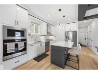 Better than NEW- turn key. Quiet street steps to the park in a mature well located neighborhood. Modern open concept plan emphasizes comfort & lifestyle. 2300 sf ttl luxury living space. Sleek Chef’s Kitchen opens to the living w/stone FP & dining area. S/S appliances incl quartz counters, gas range, wall oven & counter depth lacquer cabinetry. Quality epitomized, not your typical built 2 sty w/attention to detail & craftsmanship w/the best materials elevating this home's uniqueness. High ceilings incl 9’ upstairs. Lots of natural light w/lots of O/S windows & warm, contemporary colors. Upstairs are 3 bedrooms, 2 baths incl a luxurious ensuite. Lower level one bedroom LEGAL suite is light & bright w/a gorgeous kitchen. Perfect for students, nanny or extended family. Quality finished landscaping incl artificial turf in the front, poured sidewalks & a 23x21 drywalled/insulated garage w/full driveway. Conveniently located to WEM, Downtown & the U of A. Air conditioned. Lots of services & shopping close by (id:6769)