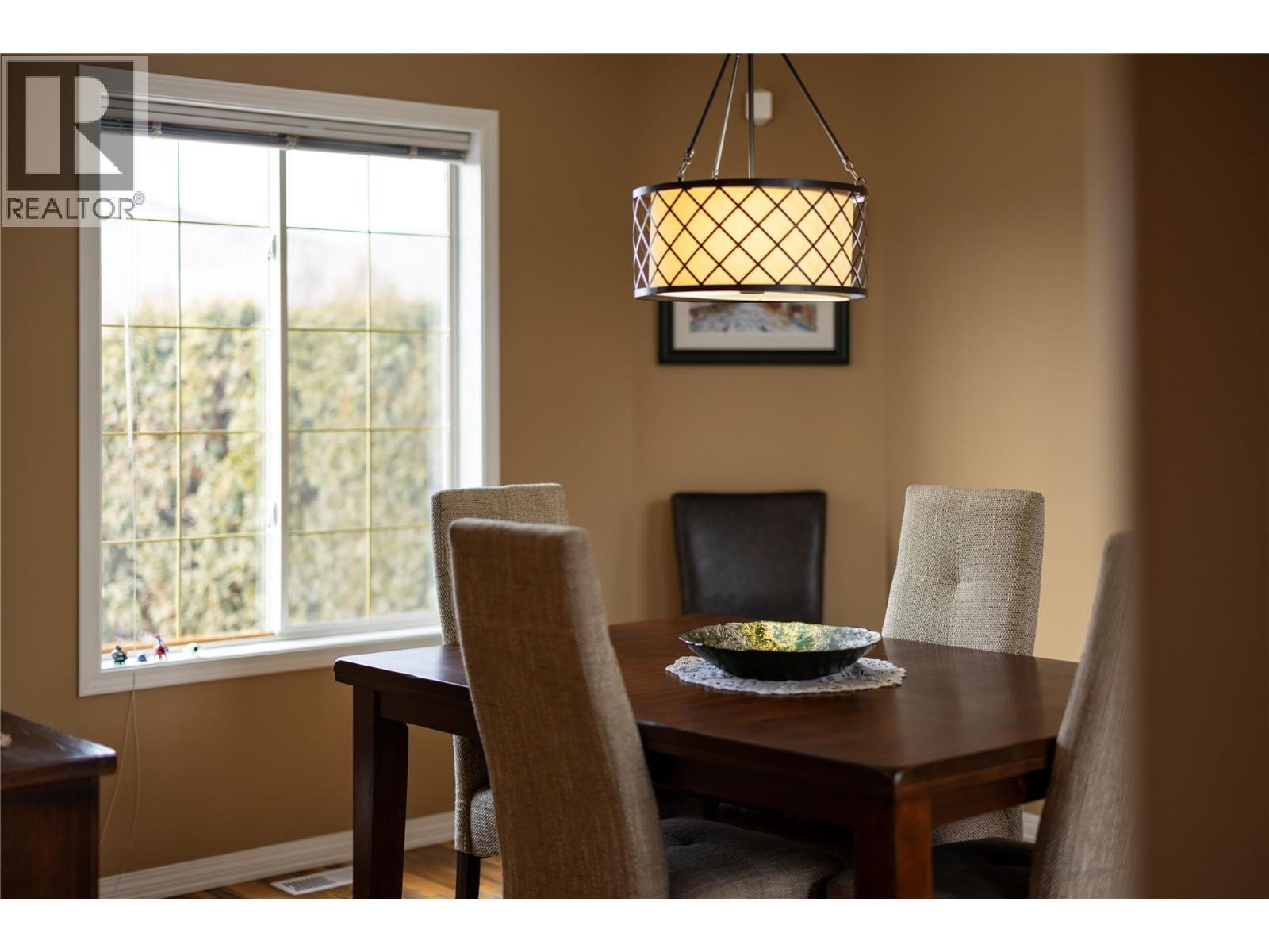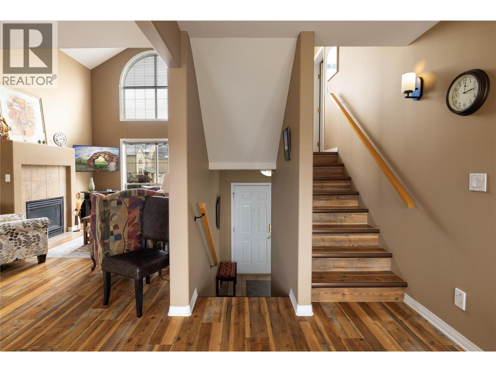 Welcome to Roxborough by the Creek — a family friendly community - where comfort, convenience, and style come together. This beautifully maintained 3-bedroom, 3-bath home is flooded with natural light thanks to its end-unit position and soaring vaulted ceilings. The open-concept main floor is ideal for both everyday living and entertaining, featuring a spacious living room with cozy gas fireplace and oversized picture windows that create an airy, inviting feel. The dining area flows seamlessly into a cheerful breakfast nook and well-appointed galley kitchen complete with shaker-style cabinetry and convenient access to the laundry and pantry. Step outside through sliding glass doors to your private deck — surrounded by greenery for added privacy and perfect for summer evenings or morning coffee. Upstairs, the generous main bedroom will easily accommodate a king-size bed and offers a walk-in closet plus full ensuite with an updated walk in shower. A second bedroom and full bath complete the upper level, while the third bedroom on the mid floor provides versatility for guests, an office, or hobby room. Many updates including the furnace, A/C, On-demand hot water, walk-in shower (ensuite), vinyl plank flooring (25-year warranty), updated lighting, custom handrails with modern metal railings, and updated plumbing fixtures — truly move-in ready. The double garage, additional driveway parking, and convenient crawl space storage add everyday practicality. Located just a short walk to Village Green Shopping Centre, Walmart, and transit, with Silver Star Mountain Resort only 25 minutes away — this location offers both urban convenience and Okanagan adventures. Don’t miss your opportunity to call this beautifully updated home yours. (id:6769)