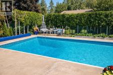 Visit REALTOR website for additional information. 4-bedroom, 2-bath home in the Columbia Elementary area of Penticton, within a short walk to school and close to transit. This property stands out among homes for sale in Penticton with its rare combination of a full lower-level kitchen and an 18 x 36 heated in-ground pool — features not commonly found together in this established neighbourhood. The main level offers open-concept living, dining, and kitchen space with bright south-facing exposure. The kitchen includes stainless appliances, a pot filler, and an instant hot water tap — practical upgrades suited to everyday use. The lower level functions as a complete secondary living space with its own full kitchen and stainless appliances, offering flexibility for extended family or multi-generational living. Heated flooring is installed in the hall, laundry area, lower bathroom and kitchen, as well as in the upstairs bathroom. A central vacuum system adds convenience. Outside, the north-facing backyard features a fully fenced yard with underground irrigation, two storage sheds, and a large heated in-ground pool. Pool equipment has been updated in the last year. The yard provides usable outdoor space suited to the South Okanagan climate. Located in an established Penticton neighbourhood close to schools, transit, parks, and daily amenities, this home offers flexible interior living paired with substantial outdoor recreation space. (id:6769)