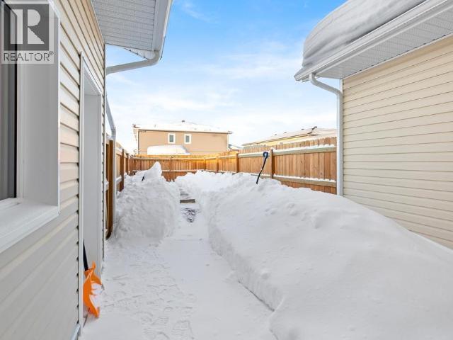End Unit Townhouse with attached single garage. Centrally located in Whistlebend and the best part is NO CONDO FEES! Offering three bedrooms, 2.5 baths and spread over 2100 sq ft of well lit, nicely finished living space. Main level features bright living area, dining area, powder room and an attractive oak kitchen with island and tile accents. Upstairs are three nice sized bedrooms - this primary includes walk-in closet and ensuite. Family room on upper level with another full bath makes it a great family home. Featuring central vac, fenced in private back patio area, plenty of potential storage in accessible crawlspace, and concrete drive with room for 'toy parking". (id:6769)